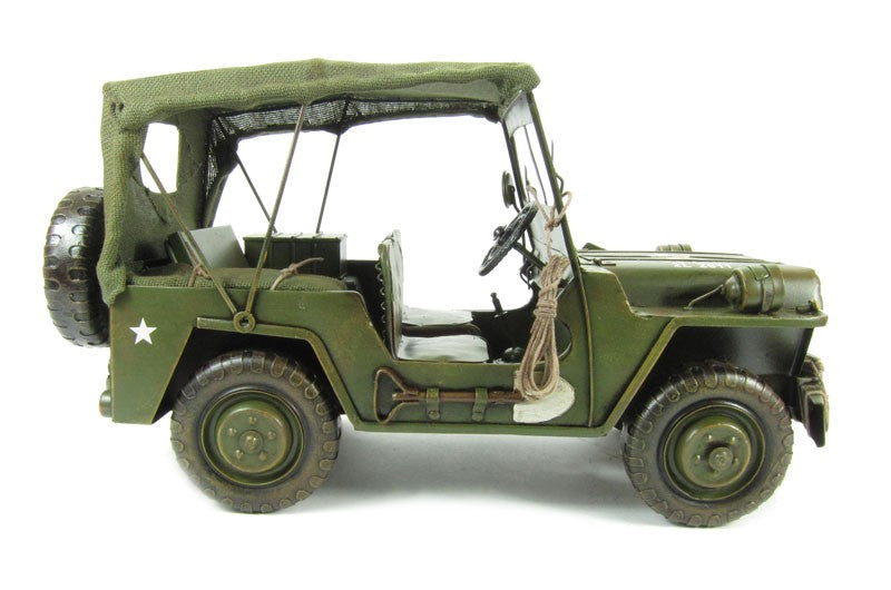 Decorate for any table, desk, or shelf in sporty fashion with Our Rustic Willy's Overland US Army Jeep . Featuring a rustic iron frame, this charming vintage Classic Car includes a fine detail's. The Green metal seat and handlebars are finished in natural colors. For more than 20 years, European Finery has been providing high quality sculpture, accessories, and decor for any room for its customers' homes. Based in New York area, We grown to become one of the largest importers and wholesalers of home decor and hand made sculptures in the country. Whether you're looking for accent Sculpture, wall decor, vintage Toys, or just about any outdoor lifestyle sculpture , We Became a proven and trustworthy name that has become synonymous with superiority.2. Overall measurement (approx. H X W) : 7 x 12 Inches