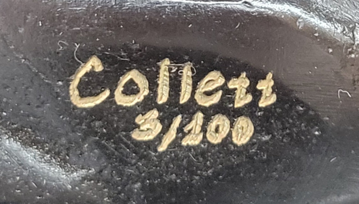 Emanating a sense of mystery and allure, this limited edition bronze sculpture serves as a testament to the enduring beauty and grace of the human form. With its carefully sculpted contours and evocative presence, this artwork transcends mere representation and becomes an embodiment of sensuality and elegance. A true masterpiece by Collett, this sculpture is bound to become the focal point of any art enthusiast's collection, captivating and enchanting viewers for generations to come.Bronze Dimensions with Marble Base: Height 8" X Width 22.5"