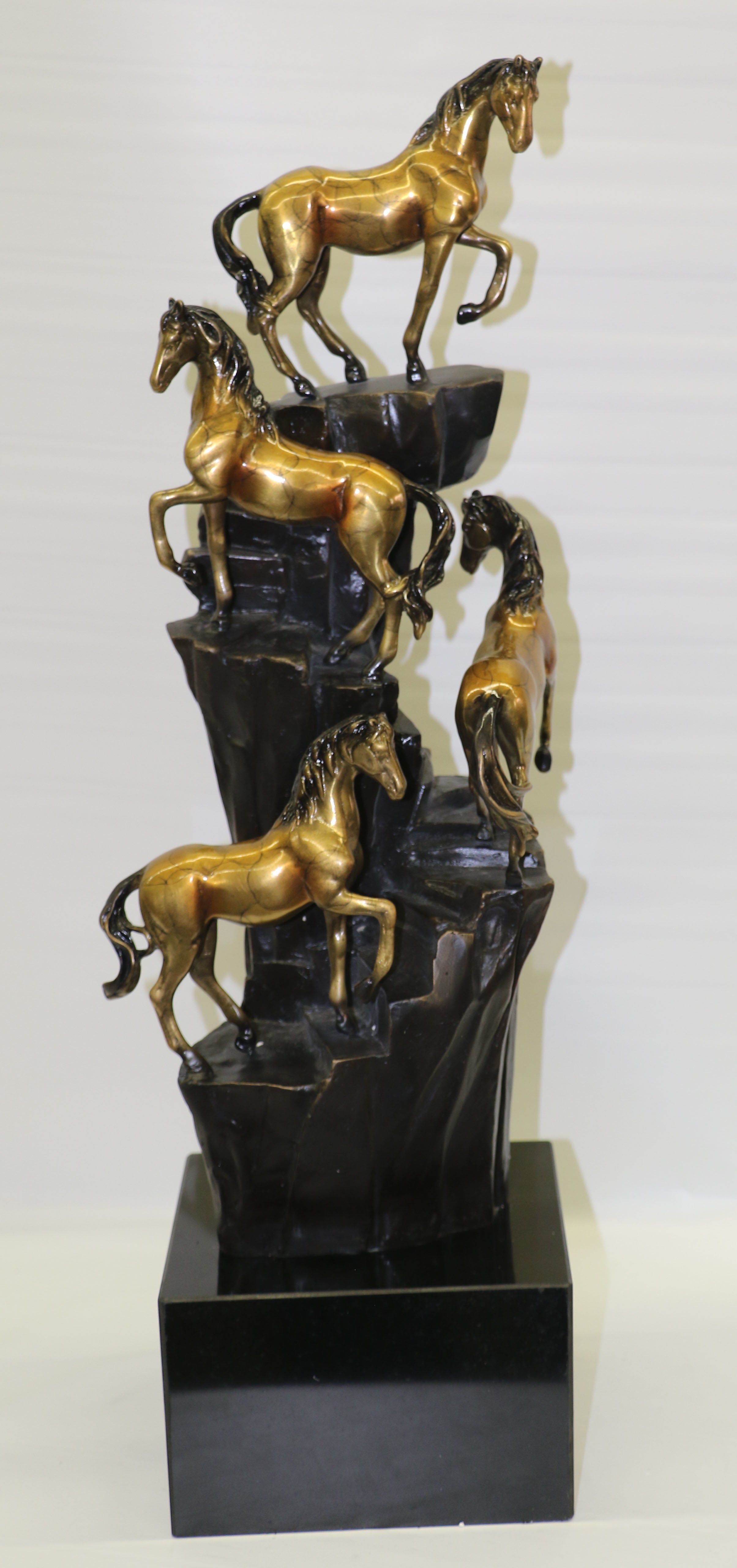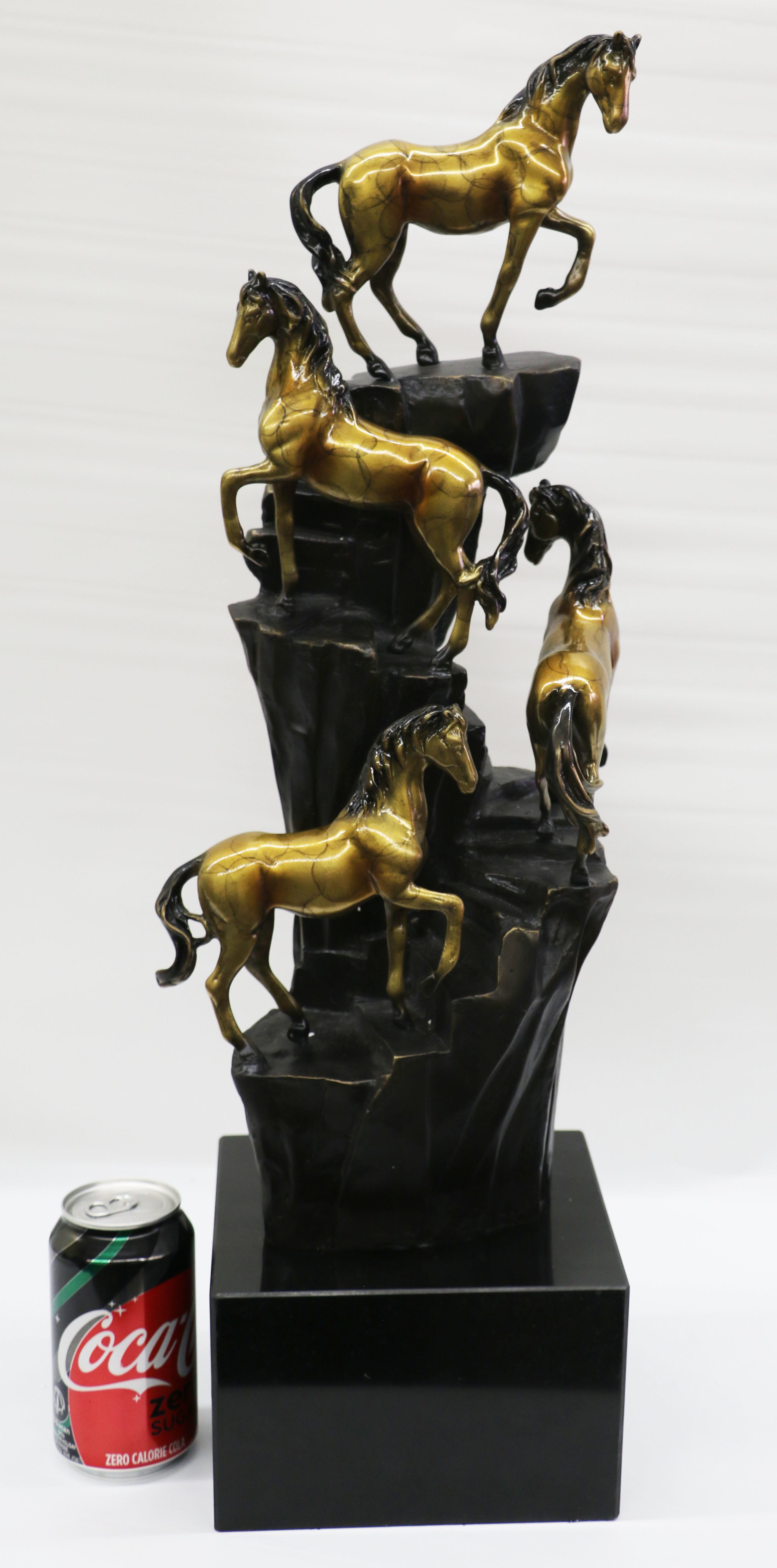Hand Made Limited Edition four Galloping Horses Mustangs Bronze Sculpture Figure