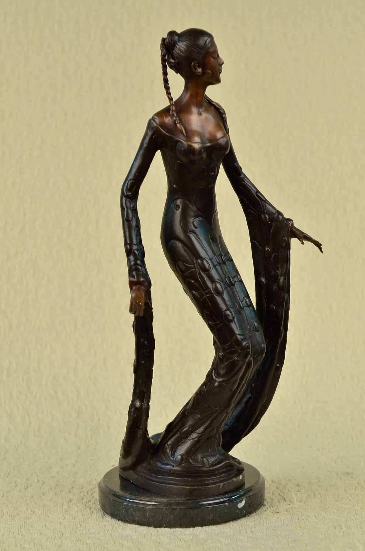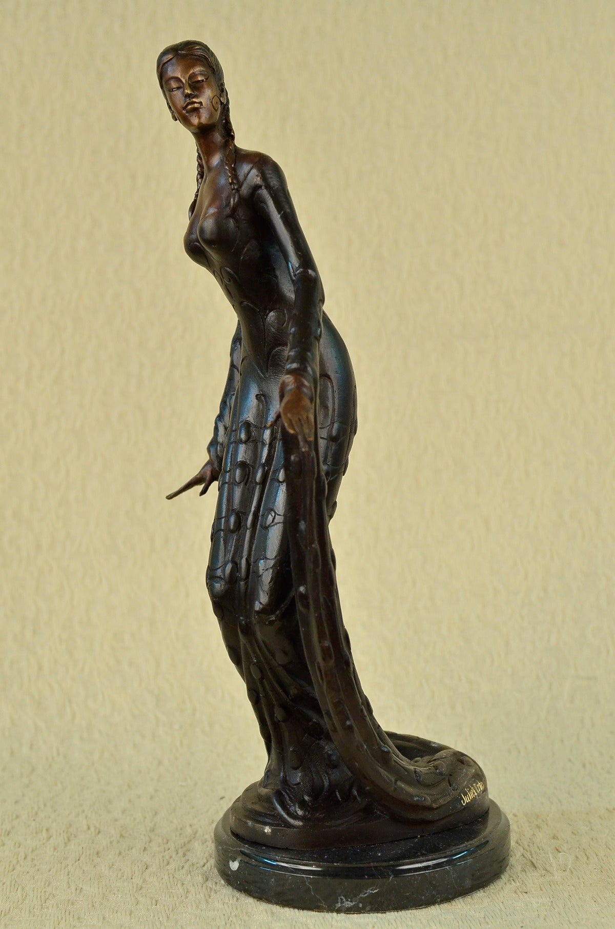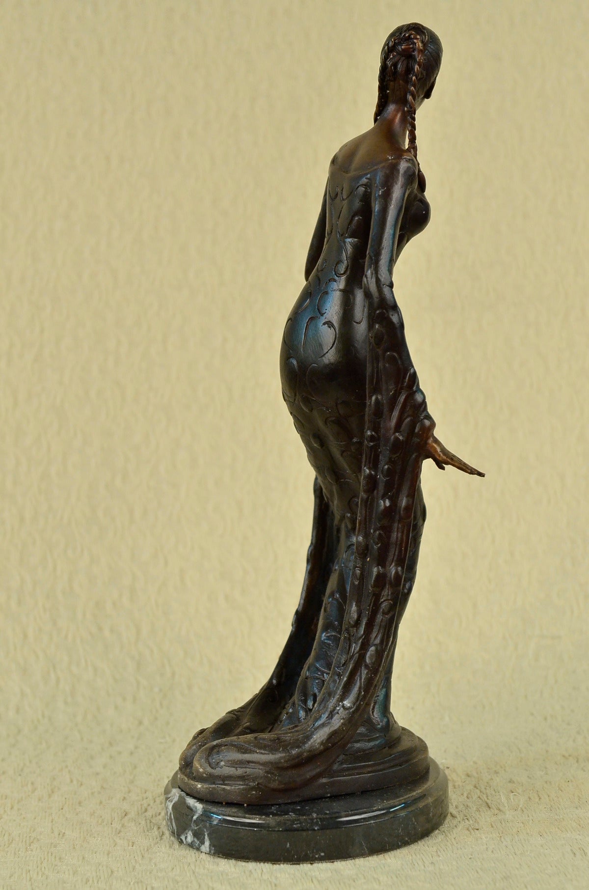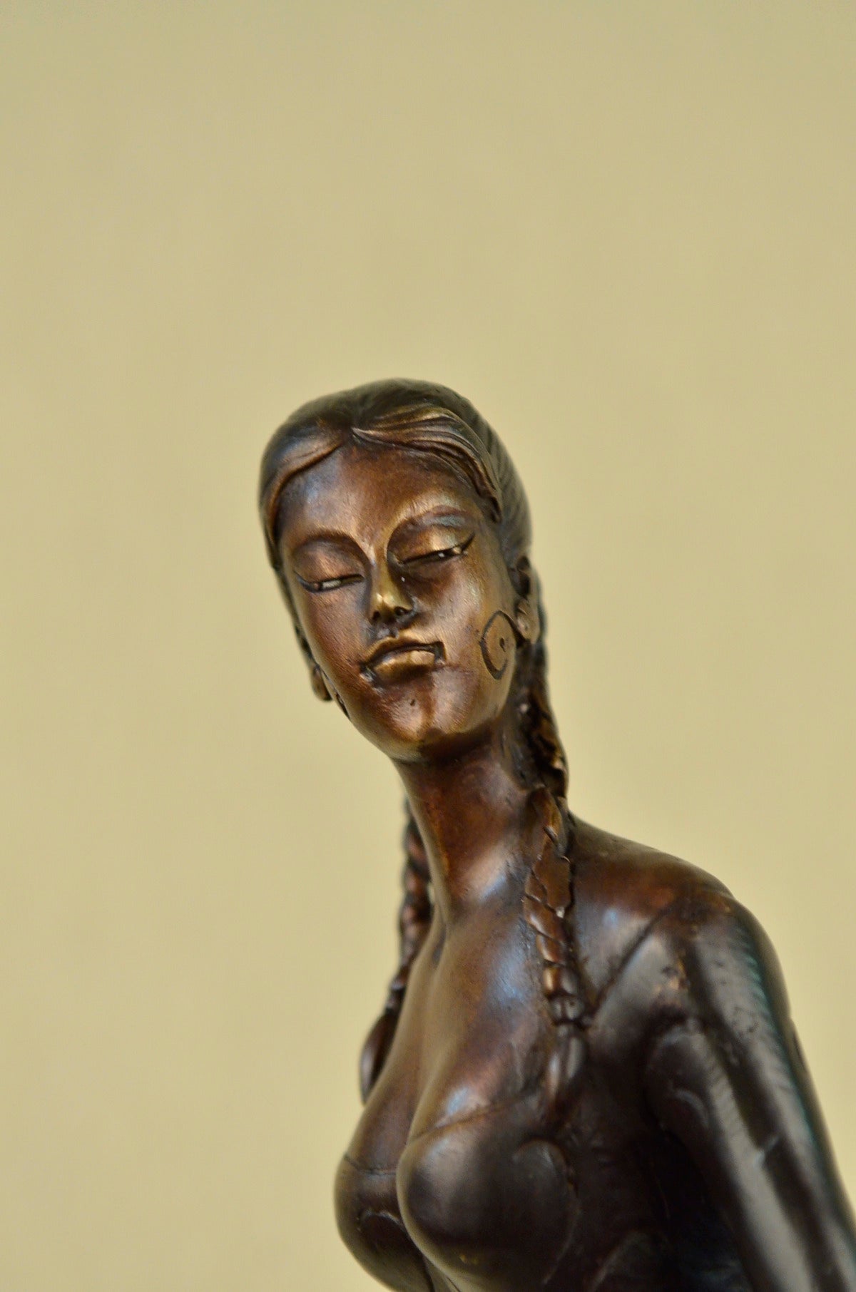 Handcrafted Hot Cast sexy Girl Bronze Sculpture Marble Base Figurine Figure
