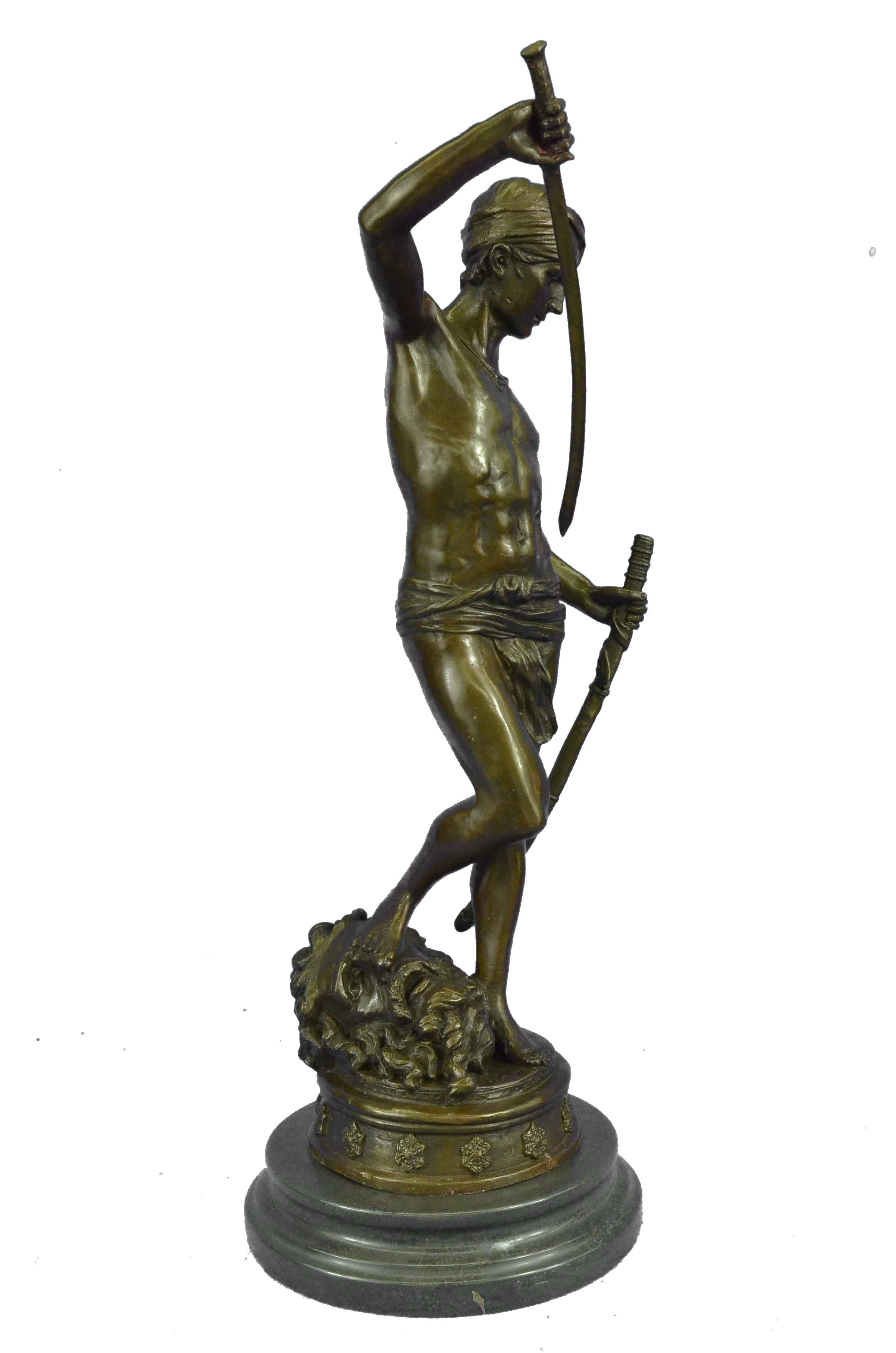 Handcrafted Nude Male With Sword Bronze Sculpture by Mercie Marble Figurine