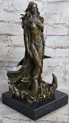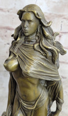 Handmade Art Signed Patoue Female Amazon Warrior Bronze Sculpture Figure Gift