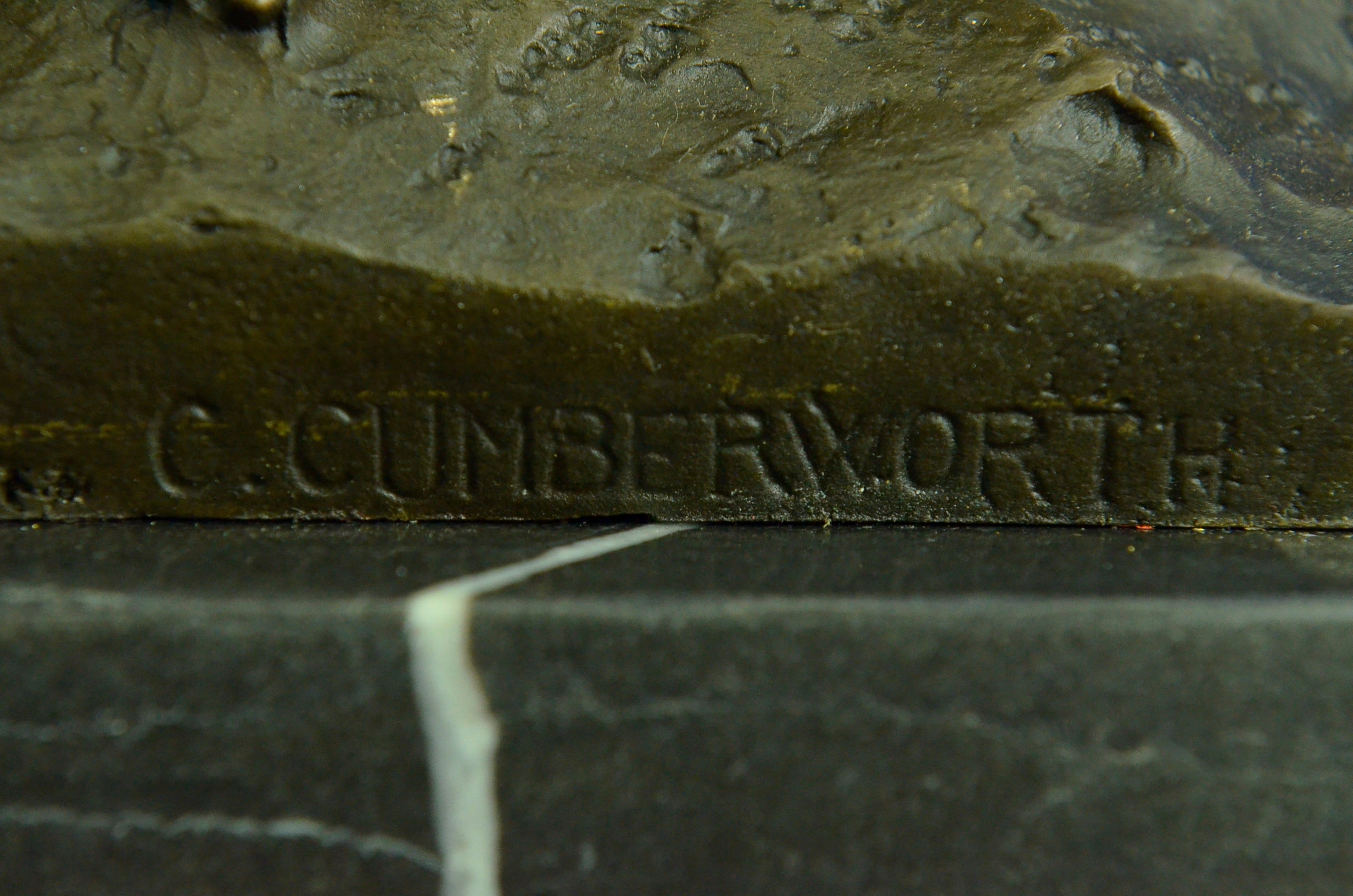 A farmer`s loyal wife aides him in the fields and retuning home as they holding a nest. They tend to their crops during harvest season. He pauses briefly, as he glancing at his baby. She walls along side of him and talks sweetly to him. He gazes up at her loving face and smiles. He only wears a simple farmers cloth , finding it too hot to wear much else. His body is well-toned from hours of hard work. She wears a flowing a house dress, that hangs off her shoulder. 100% bronze and handmade, this brown patina sculpture was cast using the "Lost Wax Method" and mounted on a marble base and is signed by artist CumberworthBronze Dimensions with Marble Base:Height 14.5" X Width 12.5"