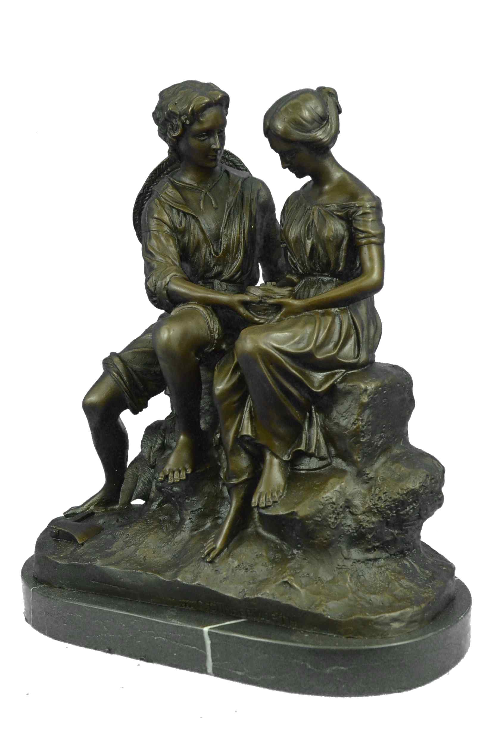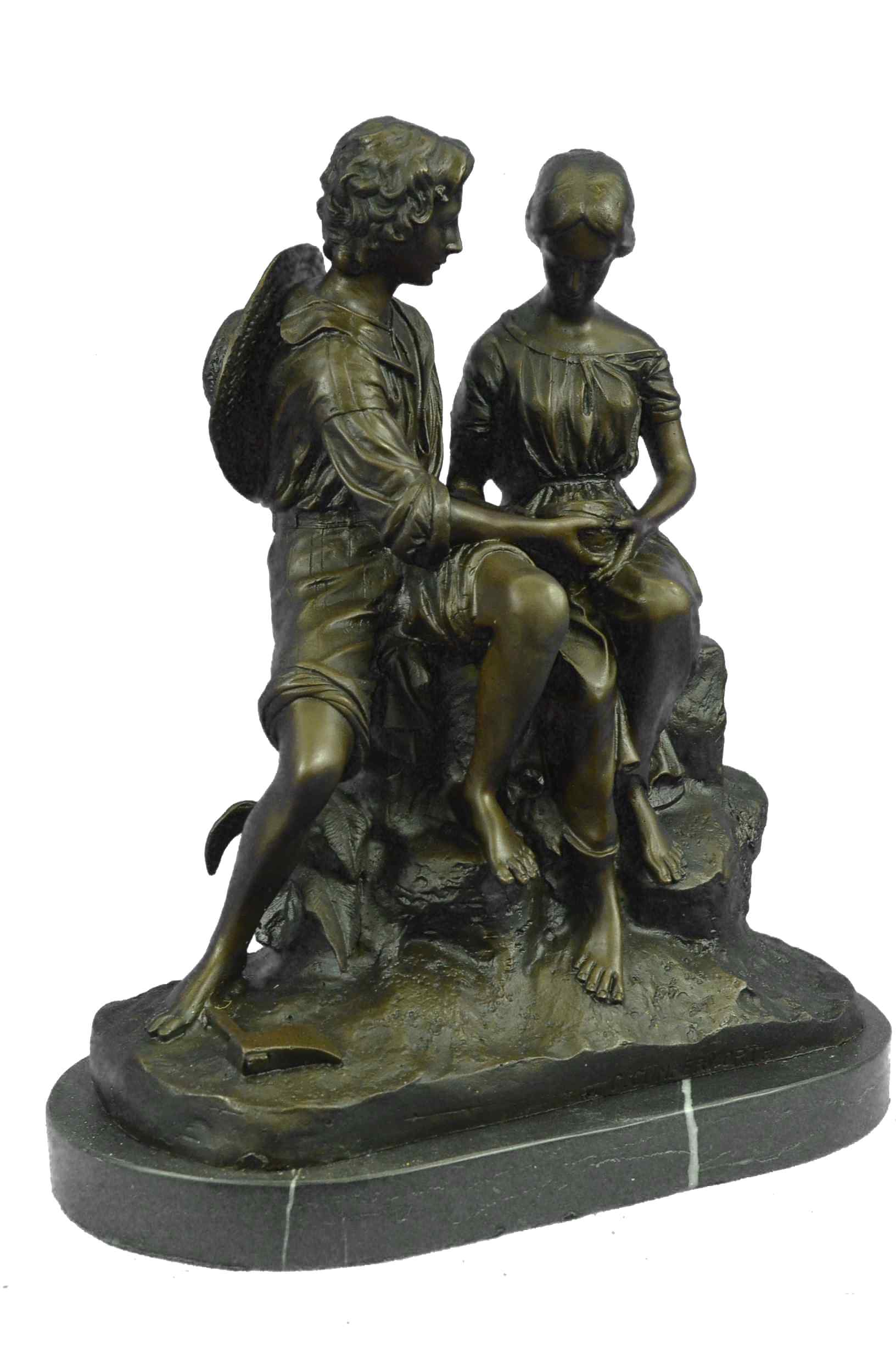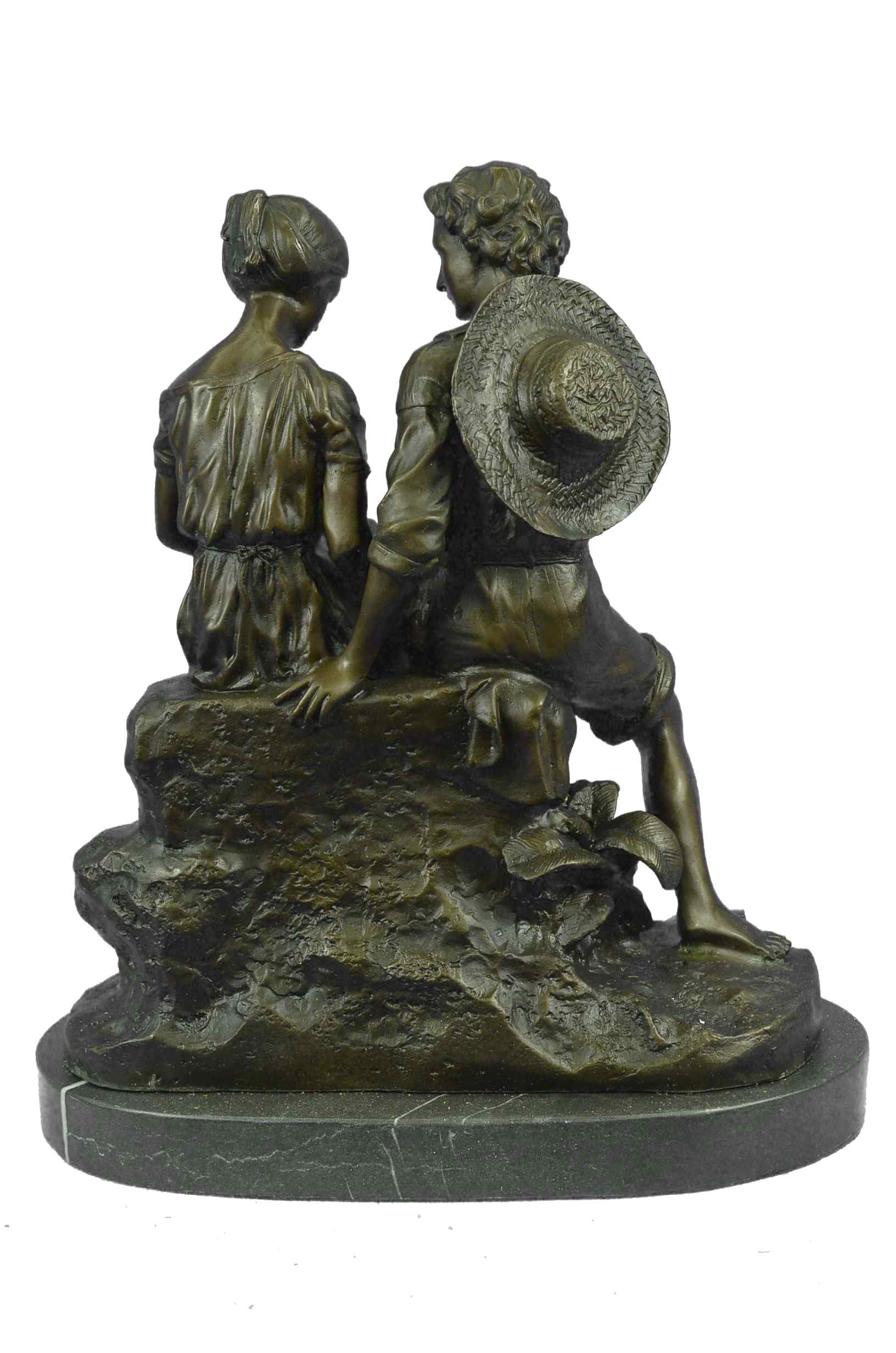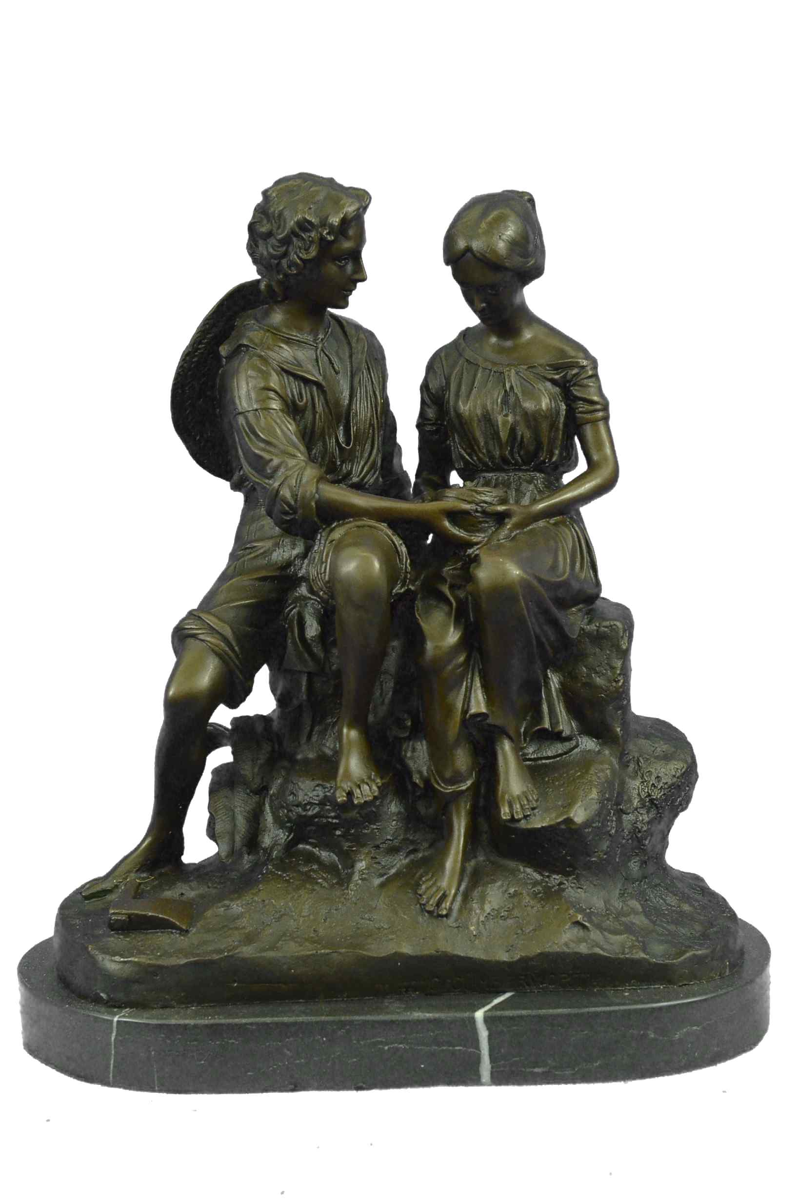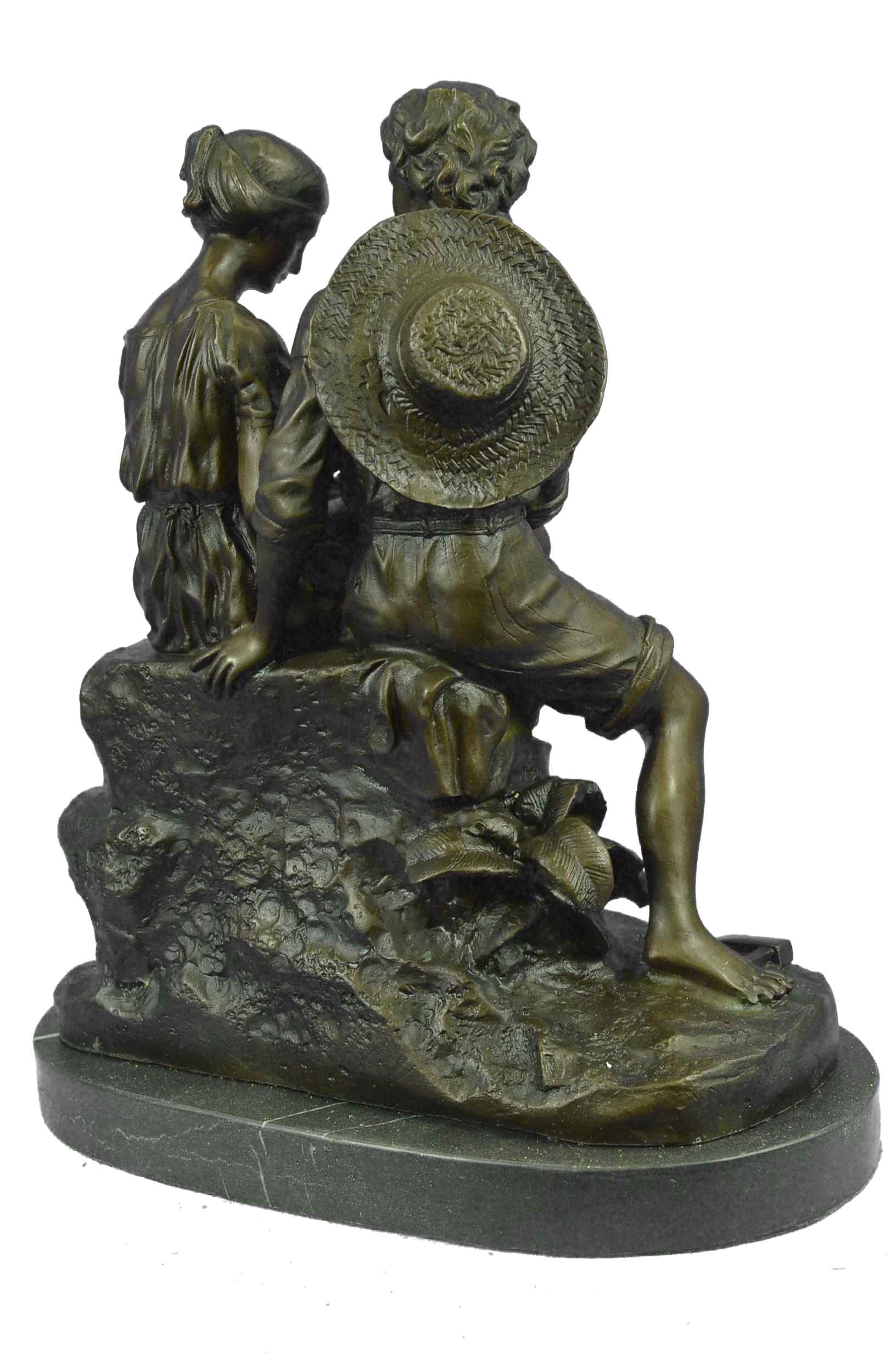 Handmade Bronze Sculpture of Two Farmer Holding a Nest Bronze Sculpture Art