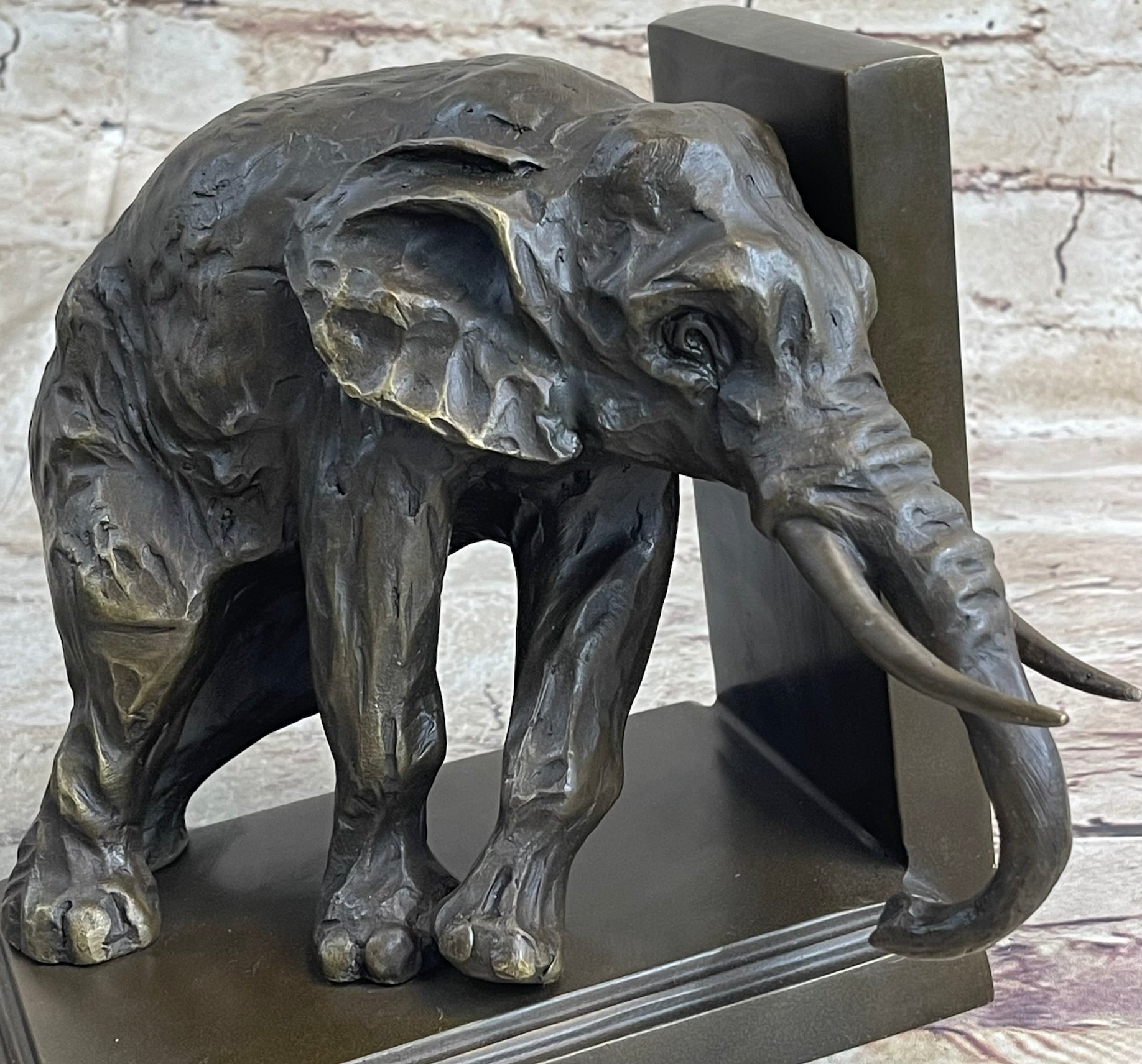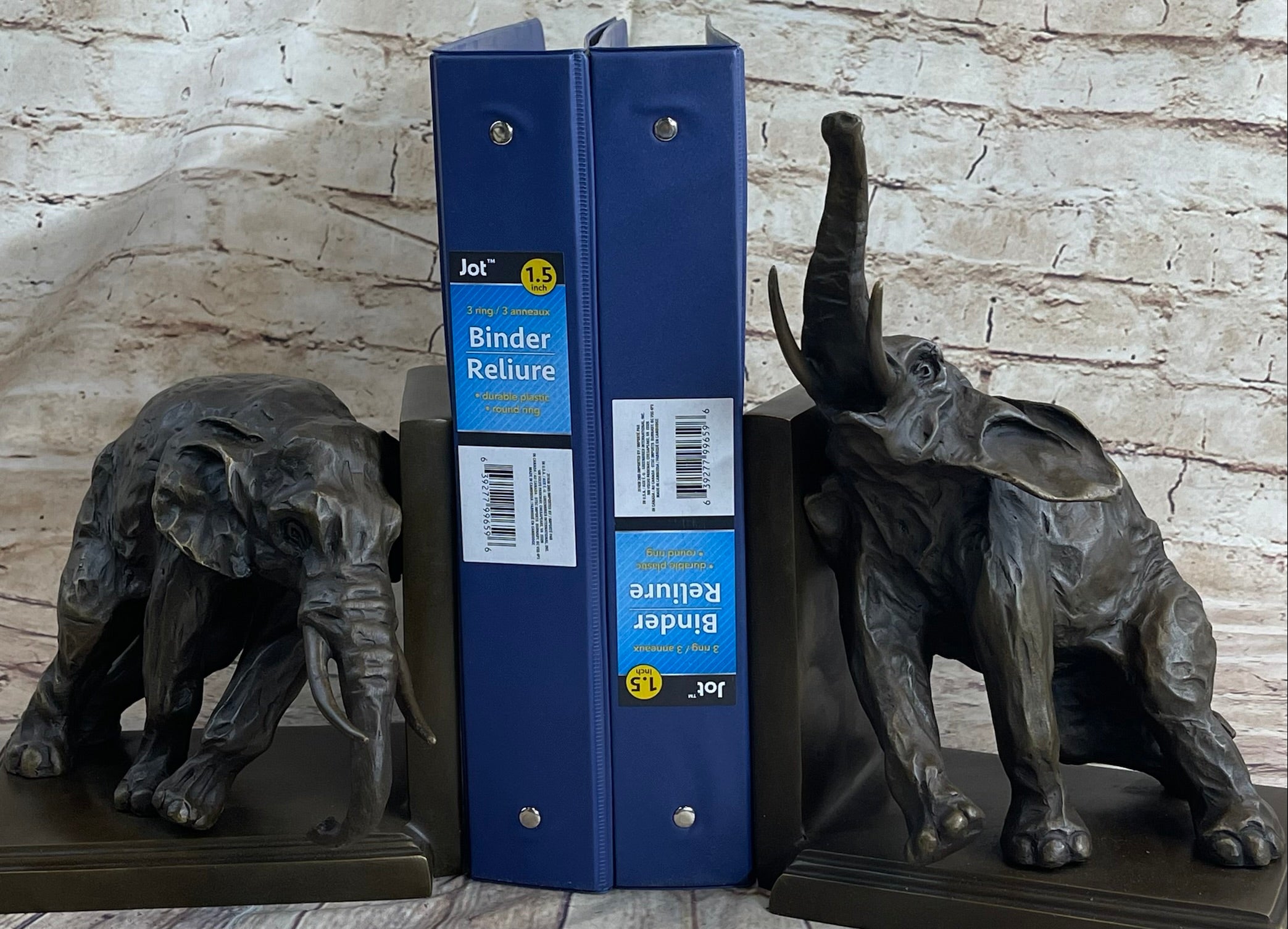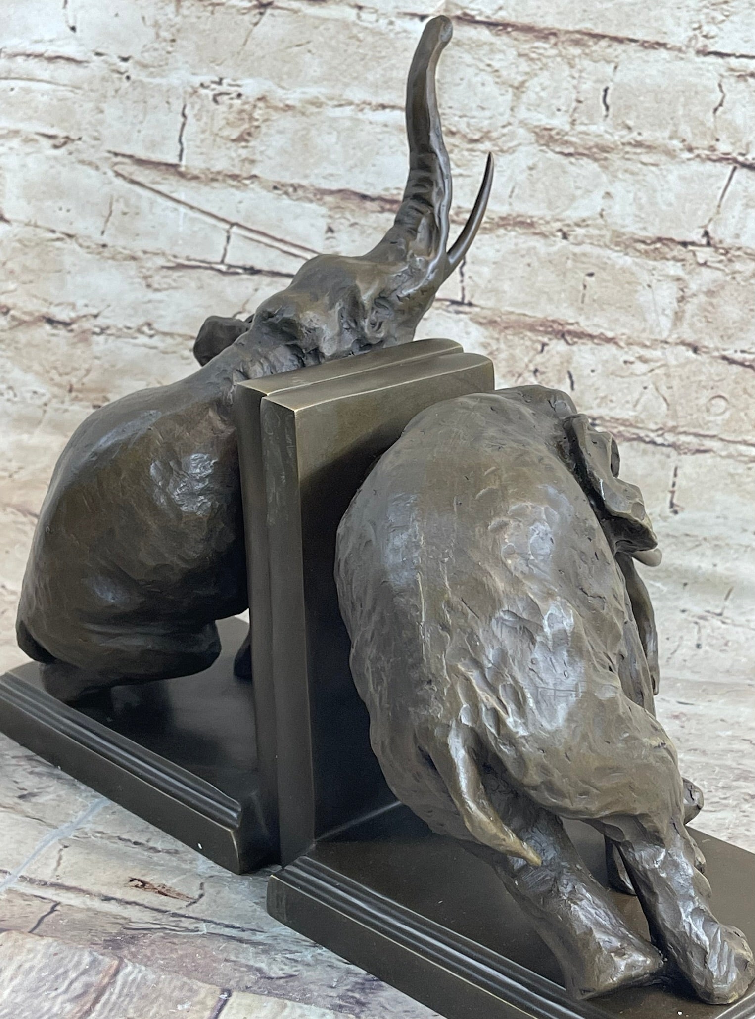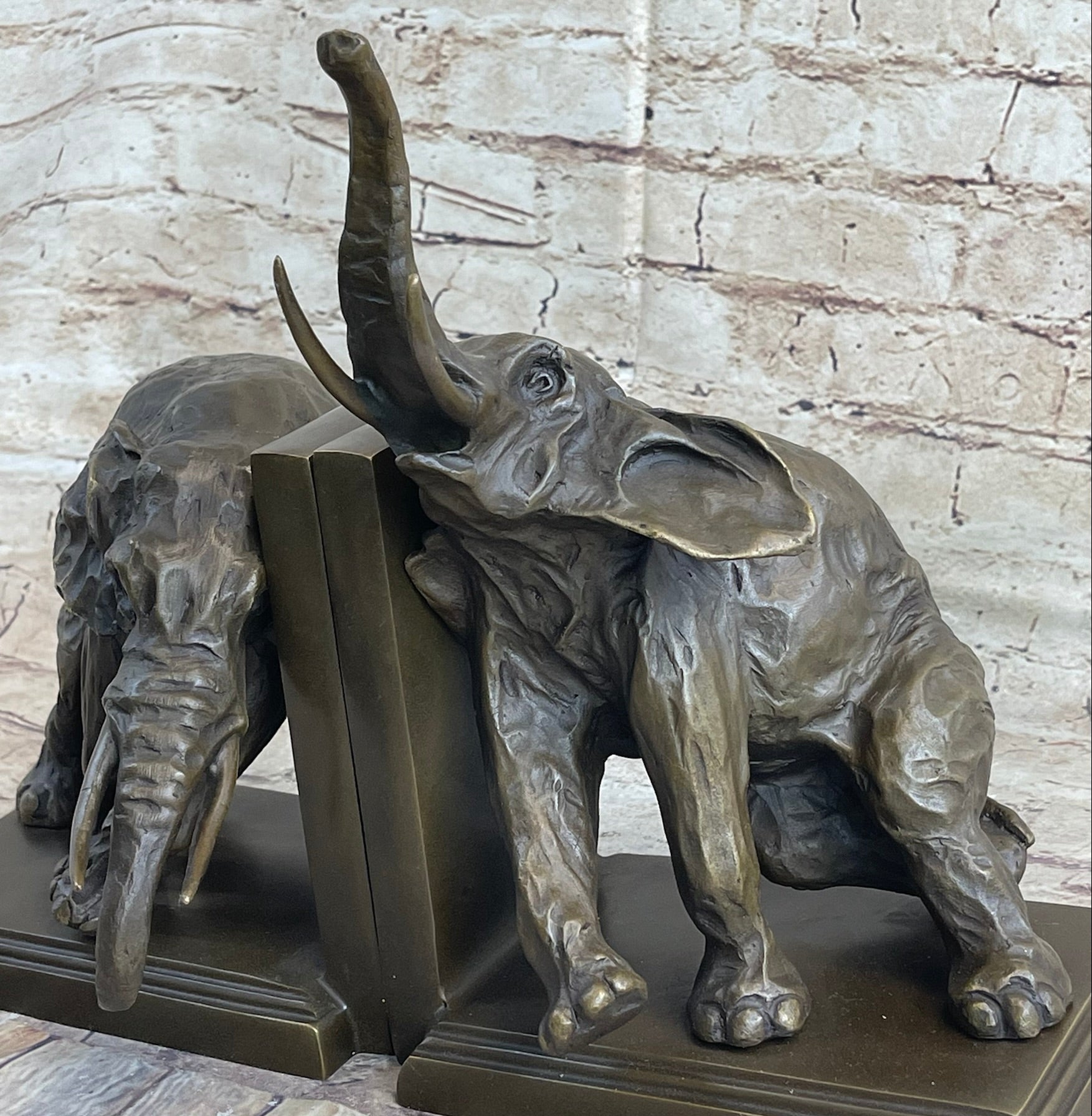 Handmade Bronze Statue Book Bookends Sculpture Elephant Elephants Figure Art