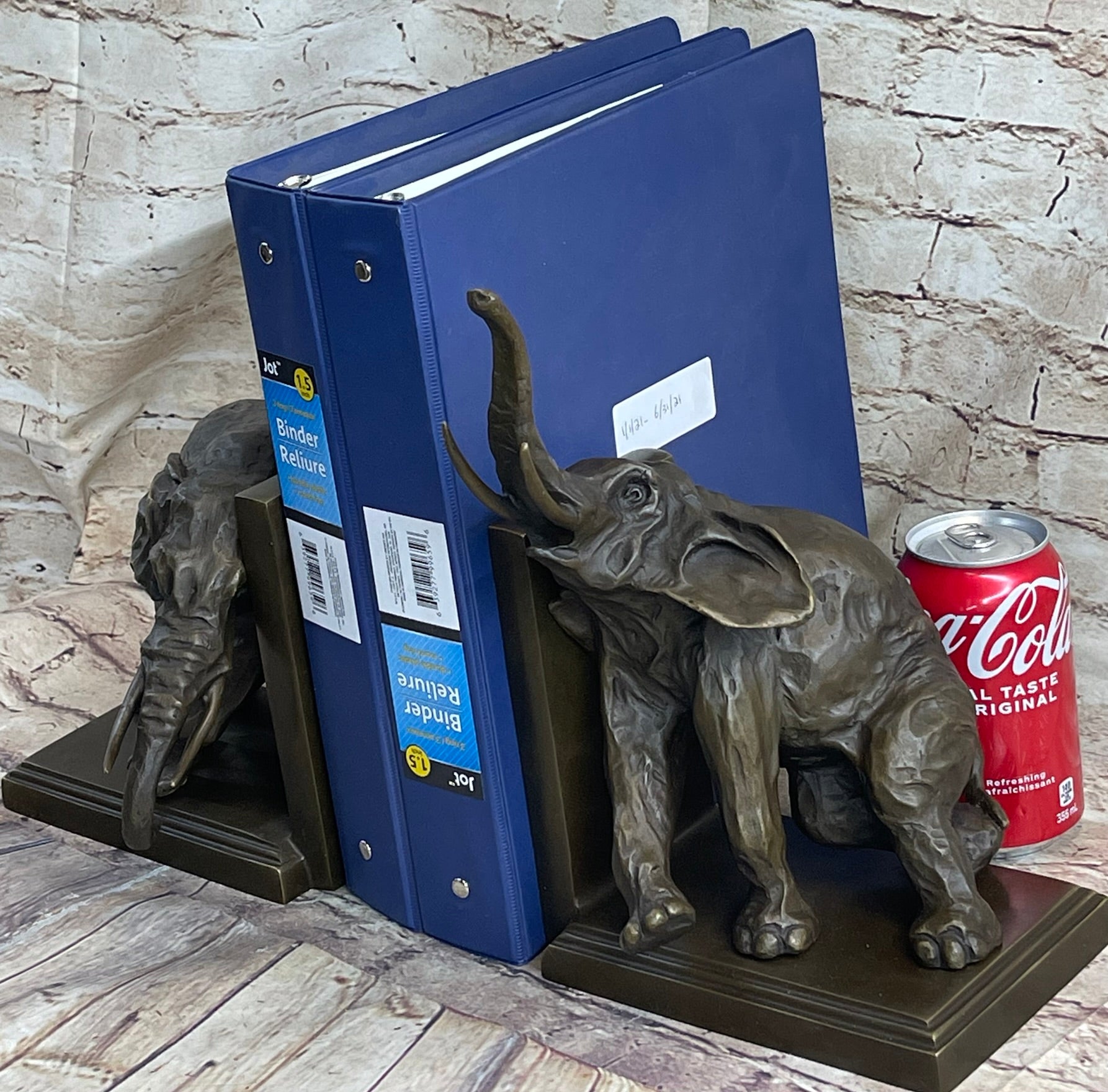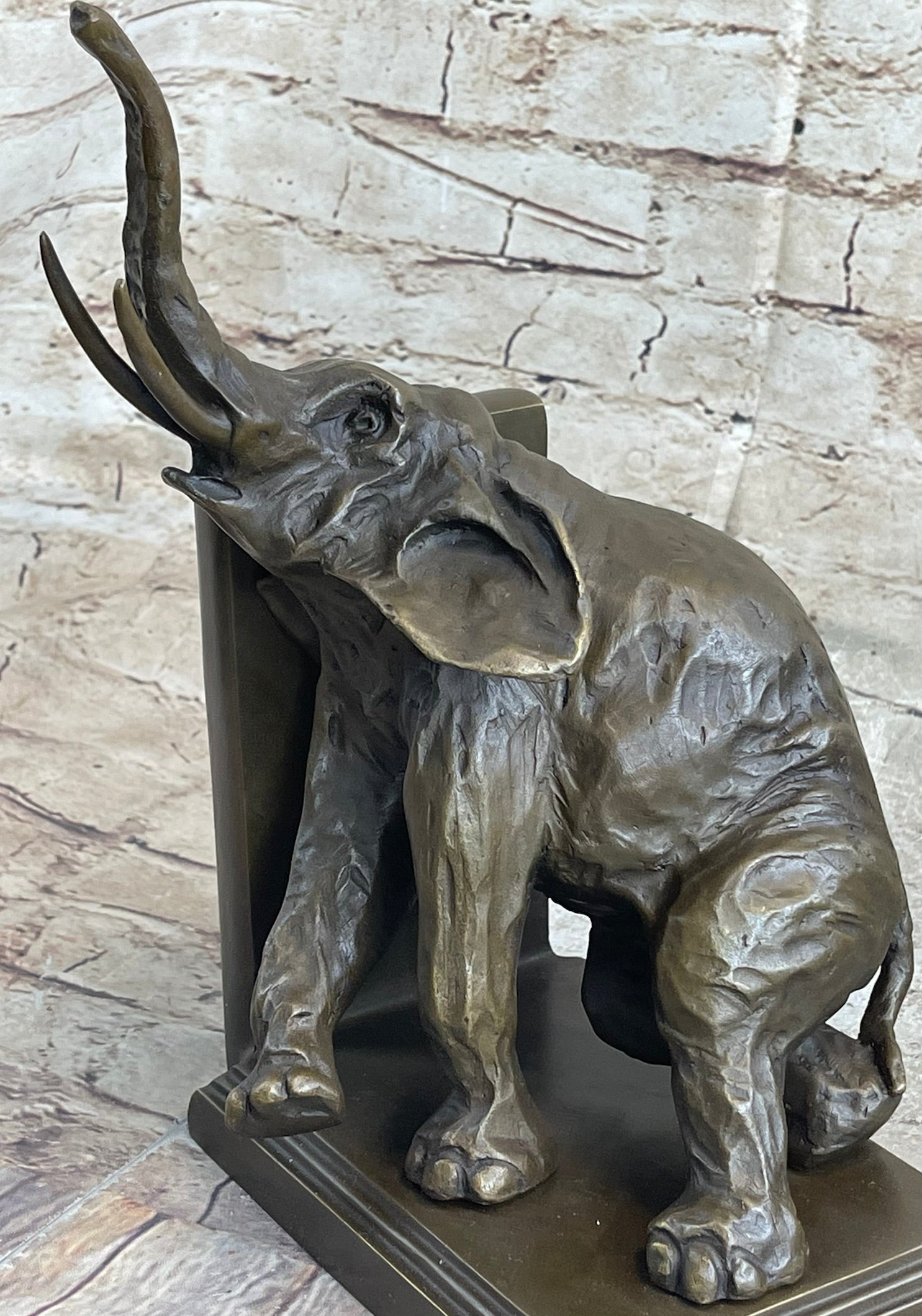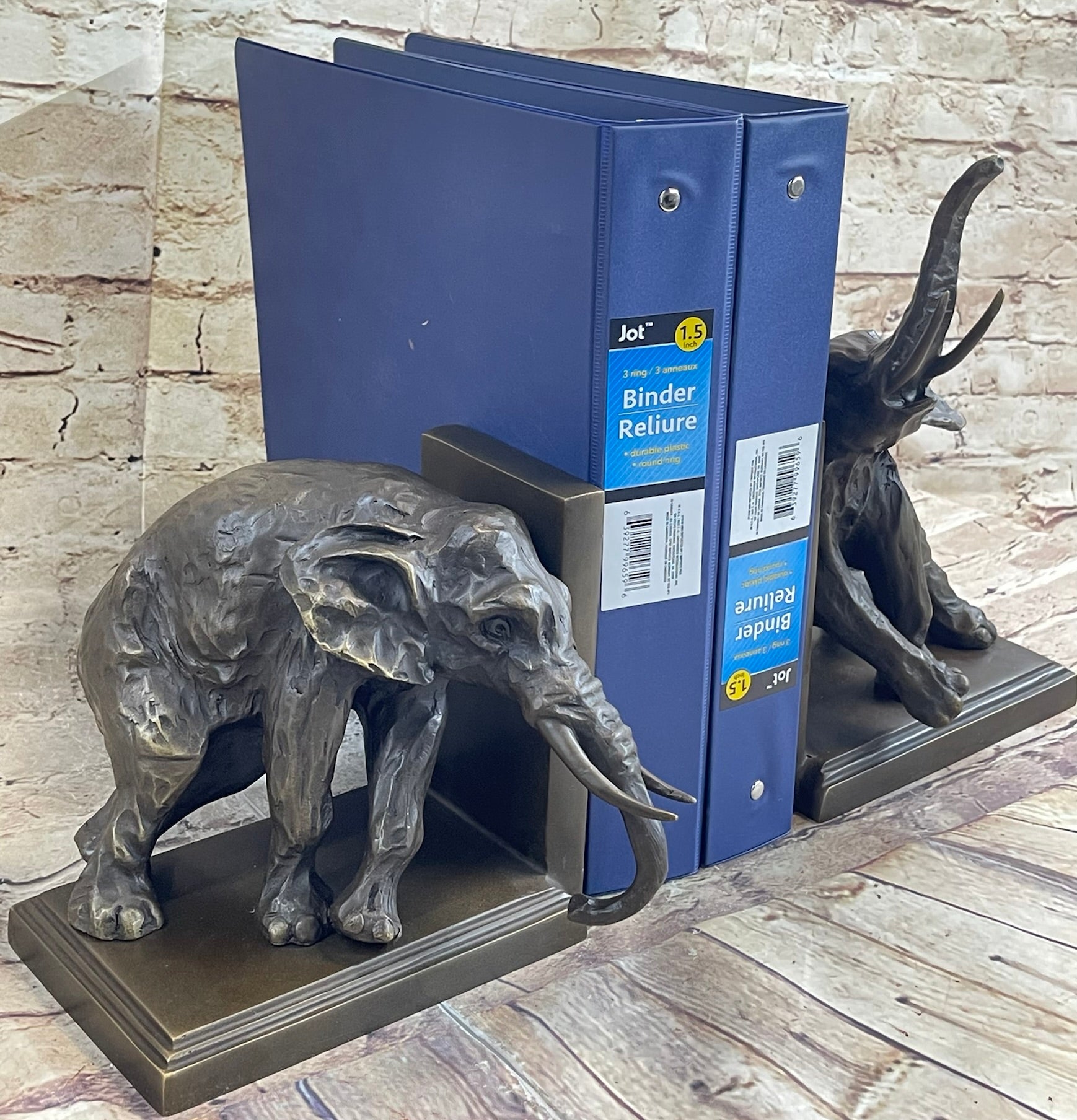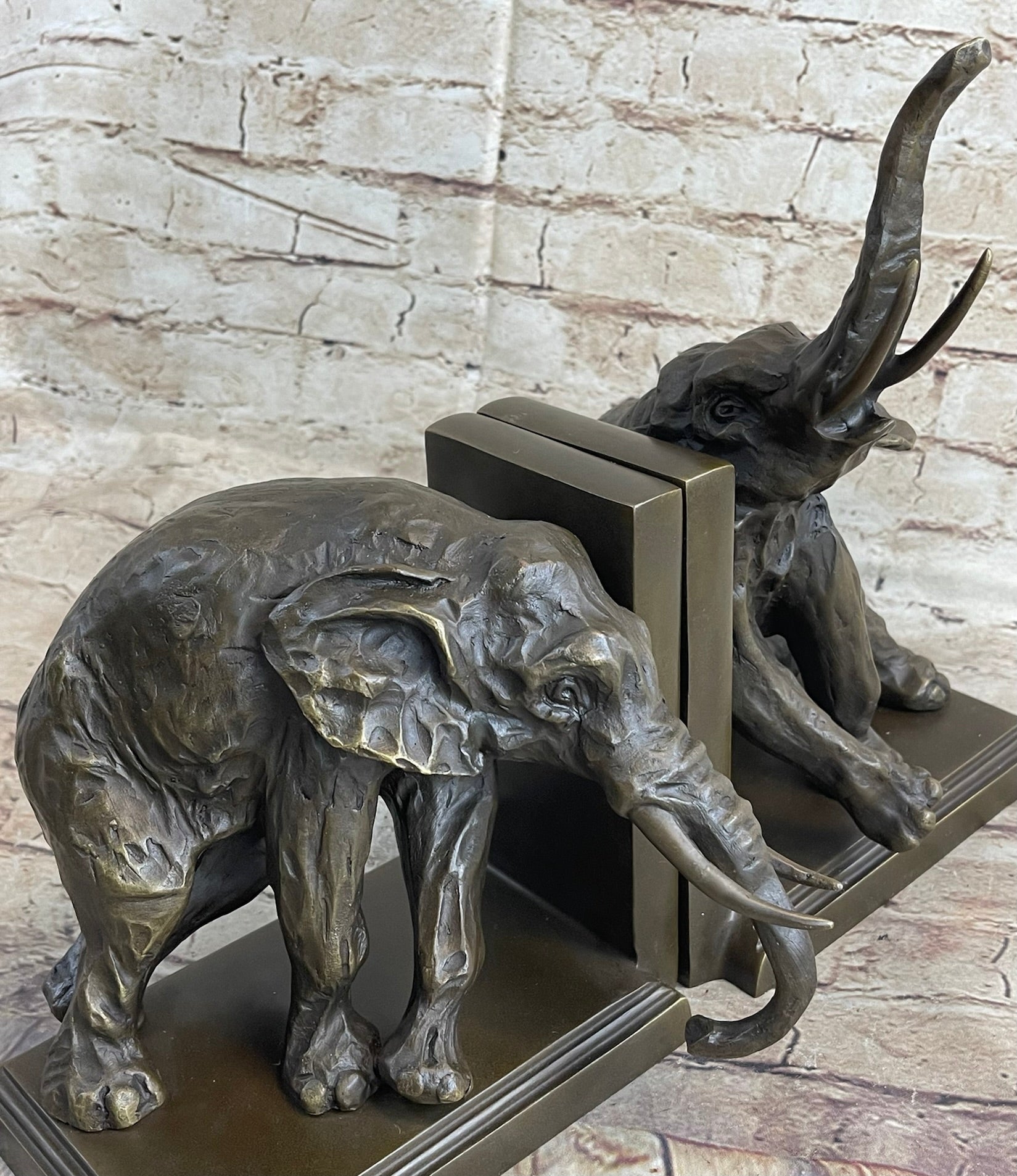 Handmade Bronze Statue Book Bookends Sculpture Elephant Elephants Figure Art