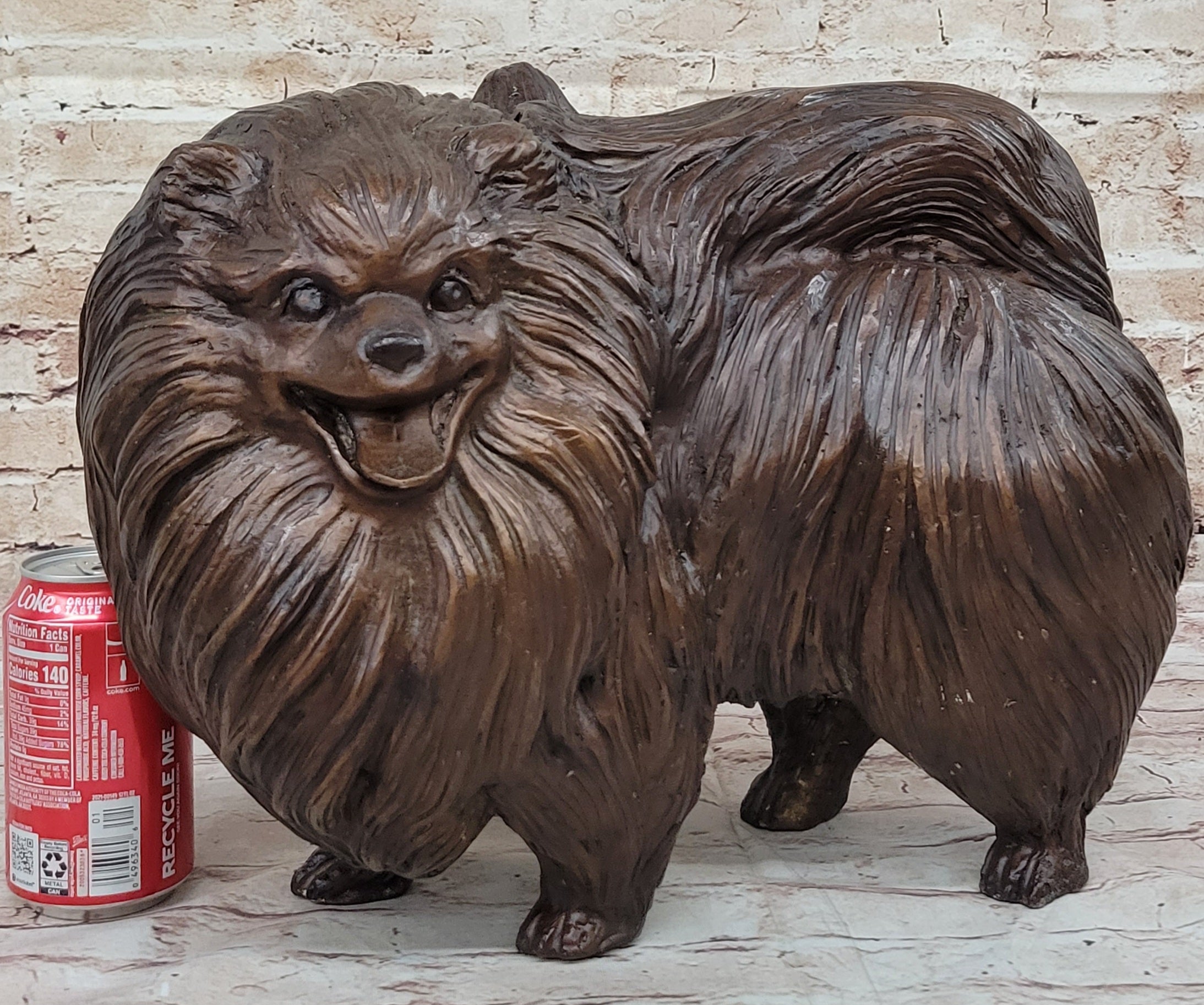 Life Size Pomeranian Dog Puppy Bronze Statue Sculpture Figurine Handmade 13" x 16"