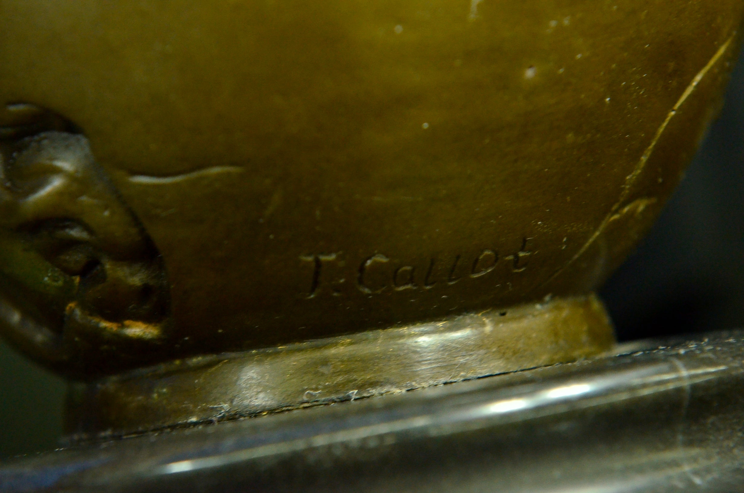 This Bronze Statue By Jacques Callot Is Handmade And Cast In The Traditional Lost Wax Casting Process. This Insures A Quality Bronze Sculpture That May Be Passed Down From Generation To Generation. Translating Into New Vase, It Was Part Of The Nouveau Style That Swept Through The Late 1800’S Early 1900’S. This Style Didn’T Last Long, But Its Goal Was To Look At Everyday Life In A New Way. This Was Commonly Portrayed In Furniture And Decorative Items Such As Vases. This Sculpture Was Casted Using The “Lost Wax Method” And Has A Brown Patina. It Is Handmade And Sits On A Marble Base. This Sculpture Is Signed By The Artist Callot.Bronze Dimensions with Marble Base:Height 13" x Width 6"