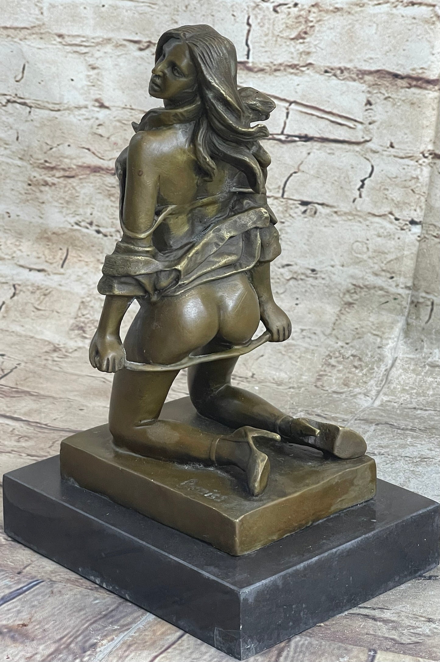 Erotic Nude Female Figure Girl with Whip Bondage Sex Bronze Sculpture Statue Art