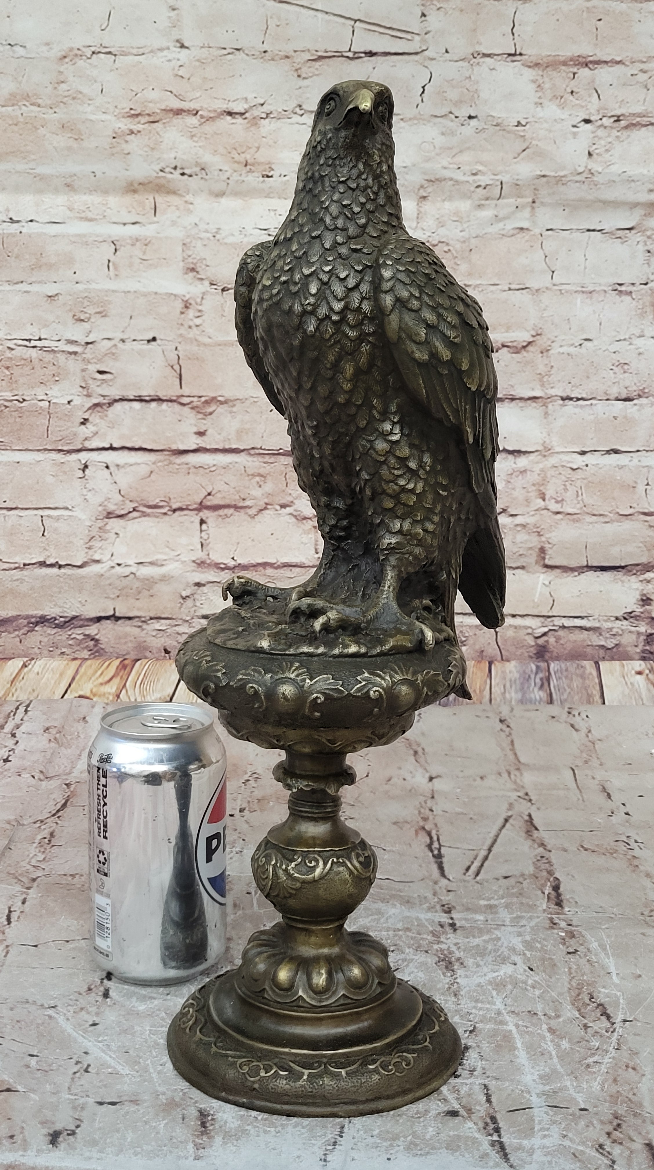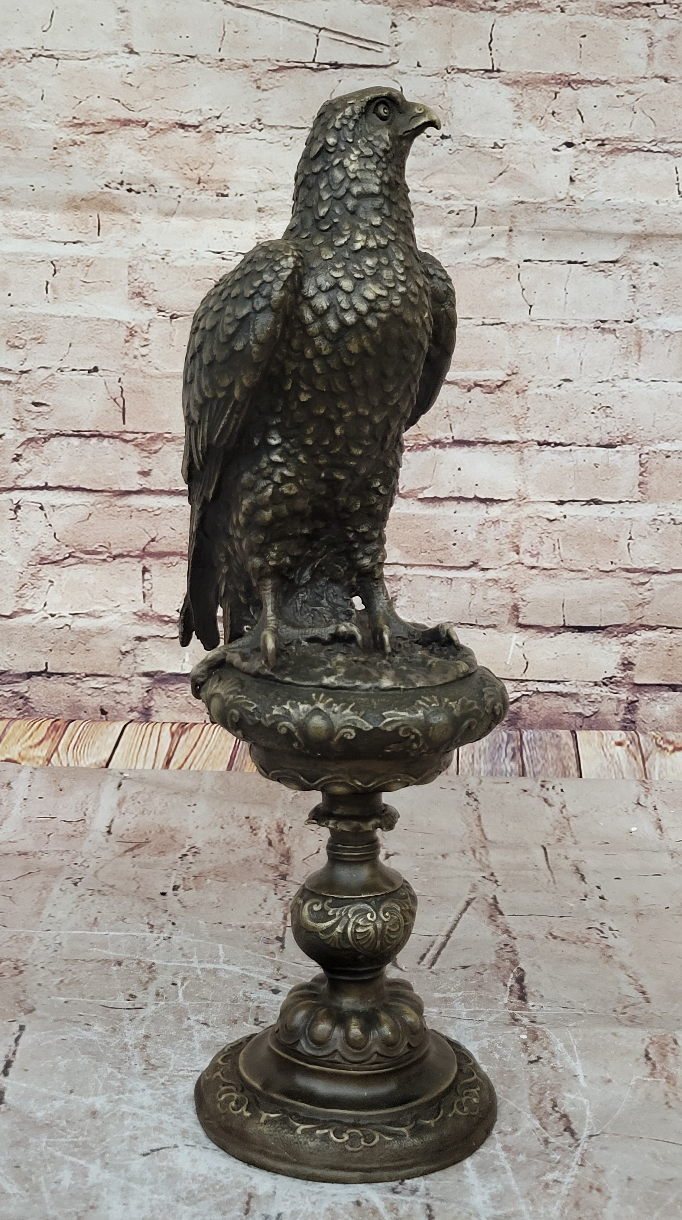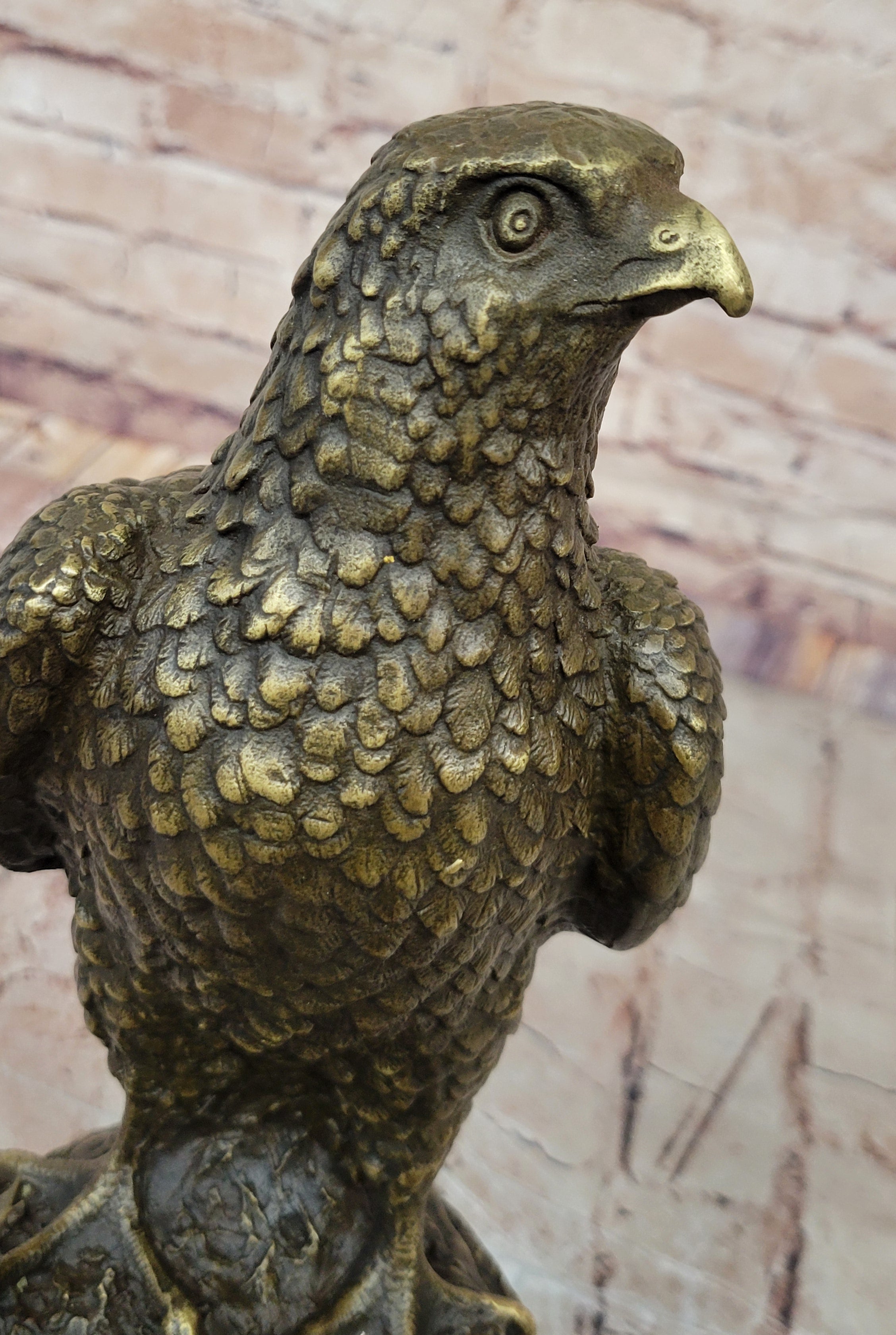 Handmade Bronze Falcon Tall on Marble Base Modernist Modern Sculpture Figurine
