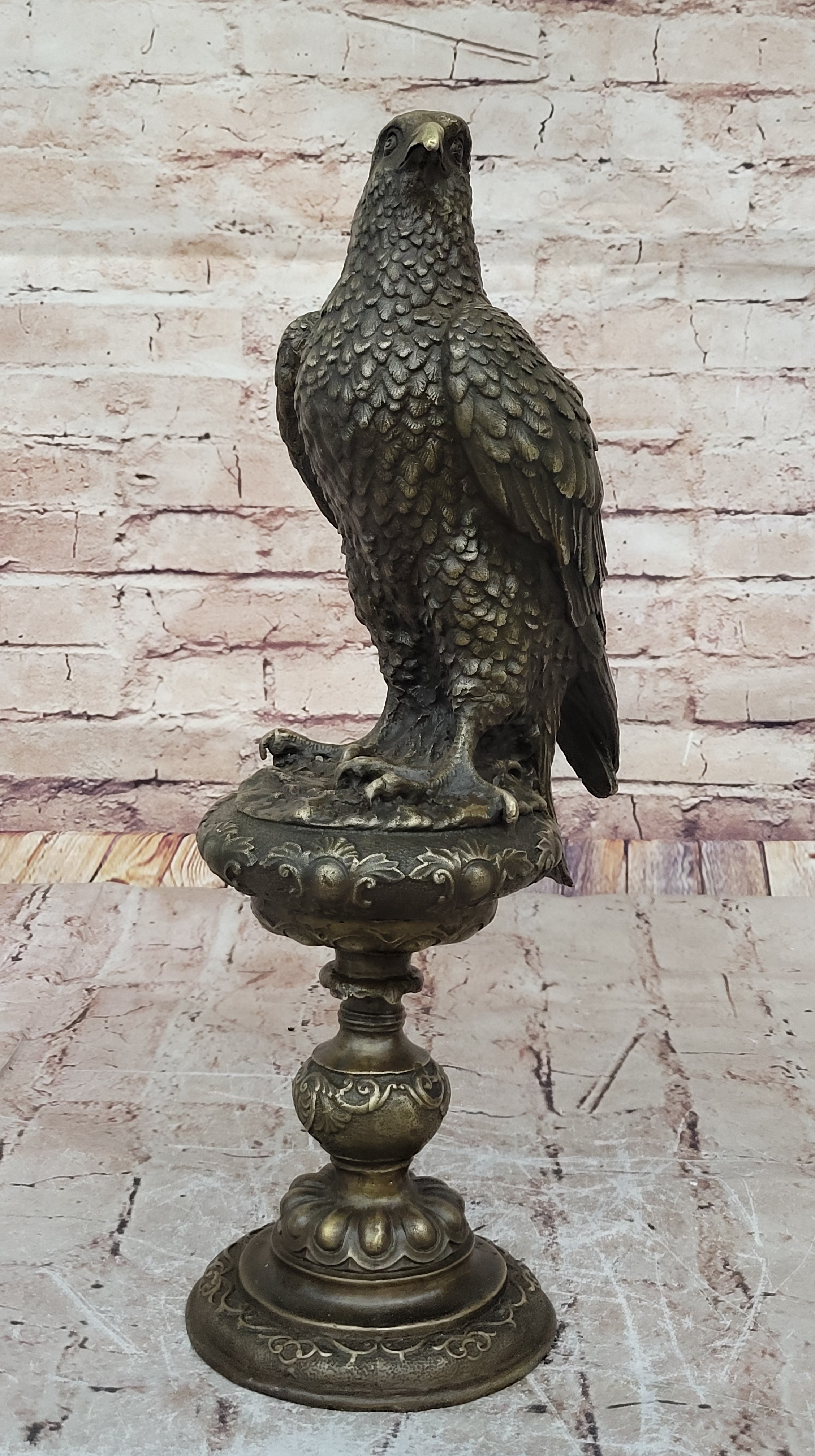 Crafted with utmost precision, this representation of the eagle is a 100% bronze cast, employing the age-old method of lost-wax casting. The brown patina finish adds depth and character to the sculpture, emphasizing the intricate details of this magnificent creature. Beyond its aesthetic appeal, the eagle's association with success, prosperity, and wealth further enhances its significance, making this bronze sculpture a timeless embodiment of power, grace, and cultural symbolism.Bronze Dimensions: Height 16" X Width 11"