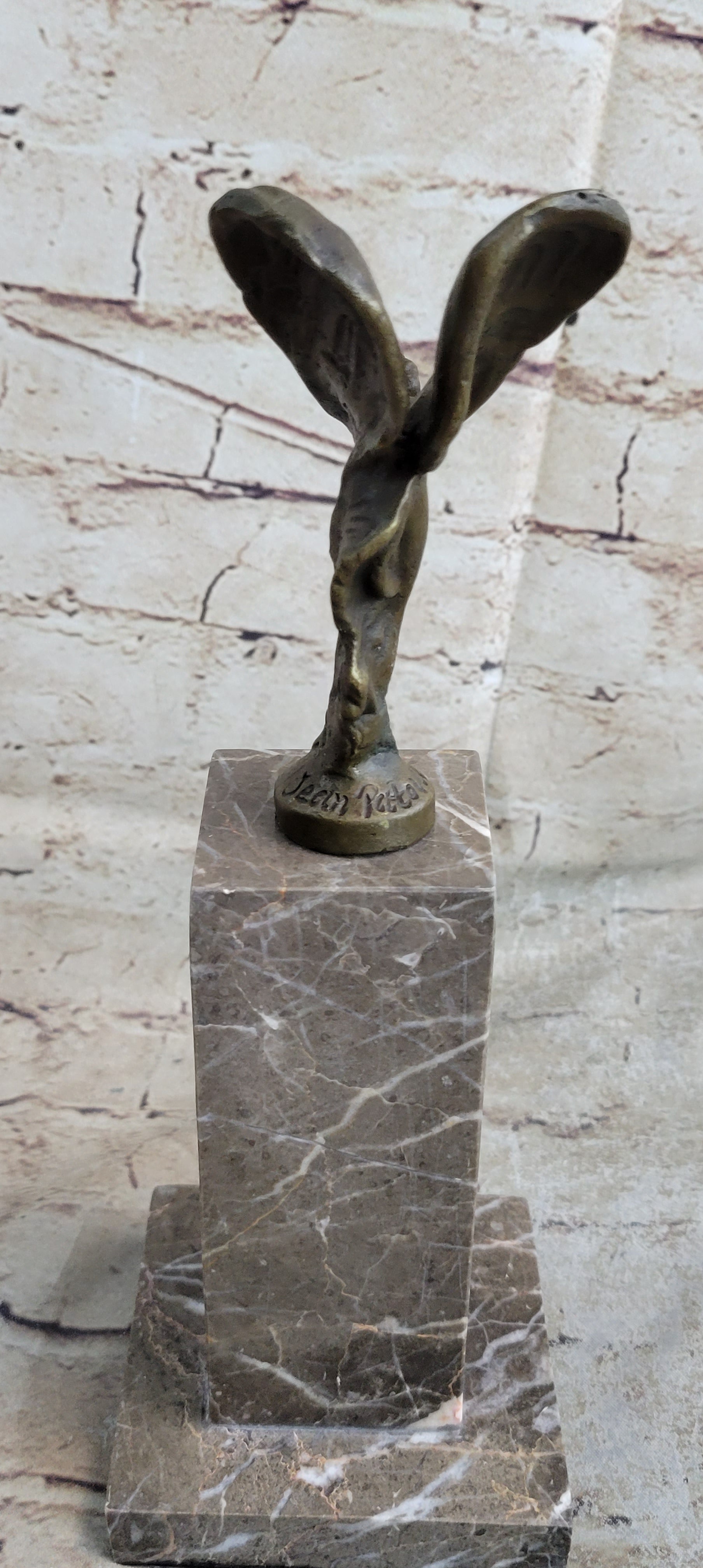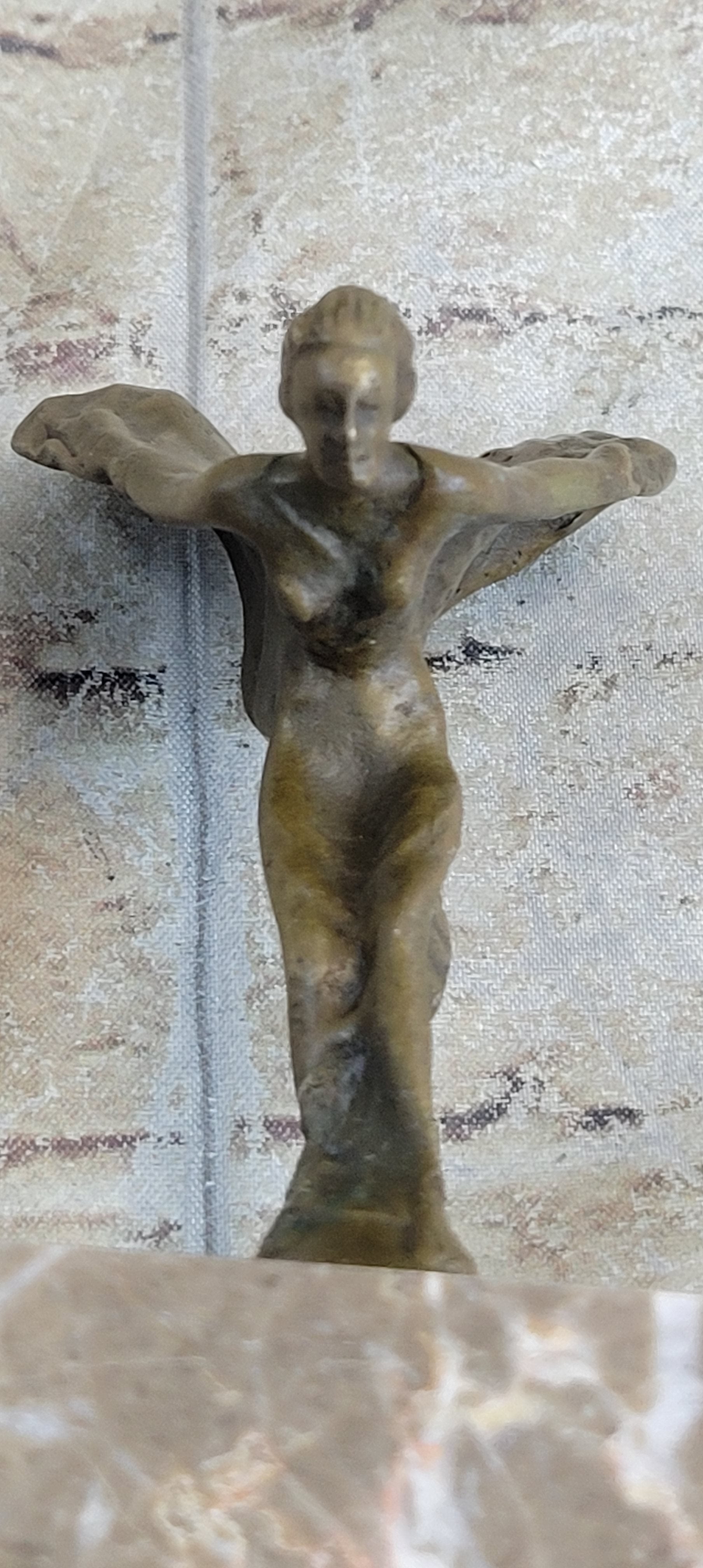 Invite this enchanting presence into your space, whether as a centerpiece or part of a curated collection. The sculpture's captivating design and meticulous craftsmanship make it a stunning addition for art enthusiasts. Let its graceful figure inspire lightness and evoke a desire for flight, a testament to the profound impact of artistic expression.Bronze Dimensions with Marble Base: Height 11" X Width 3.5"