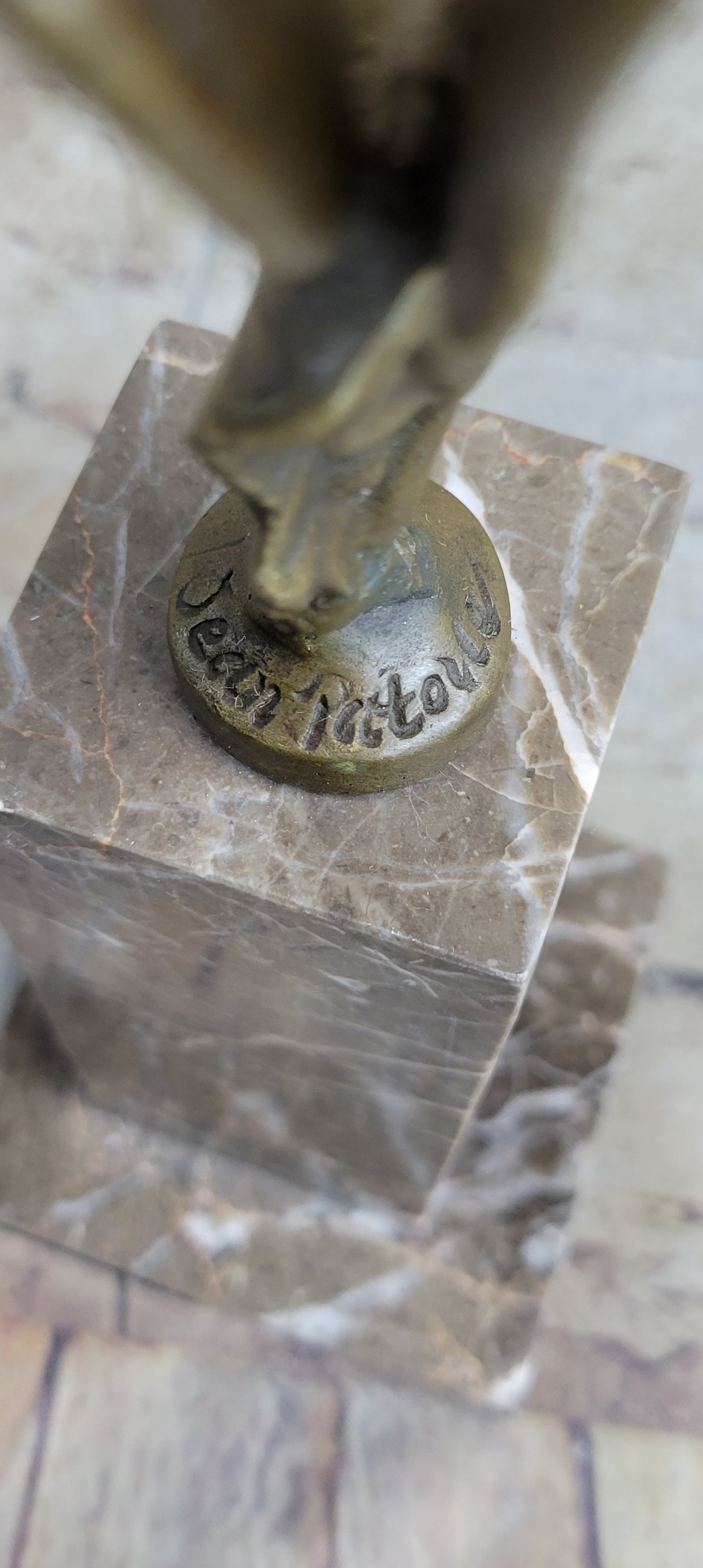 Set upon a black marble base, the sculpture becomes a focal point, radiating elegance in any space. The brown patina enriches the sculpture's depth and character, imparting a sense of timeless charm. This exquisite work bears the signature of esteemed artist Jean Patoue, further attesting to its authenticity and value. It's a tribute to the artist's vision and their ability to capture the delicate beauty of the human form.
