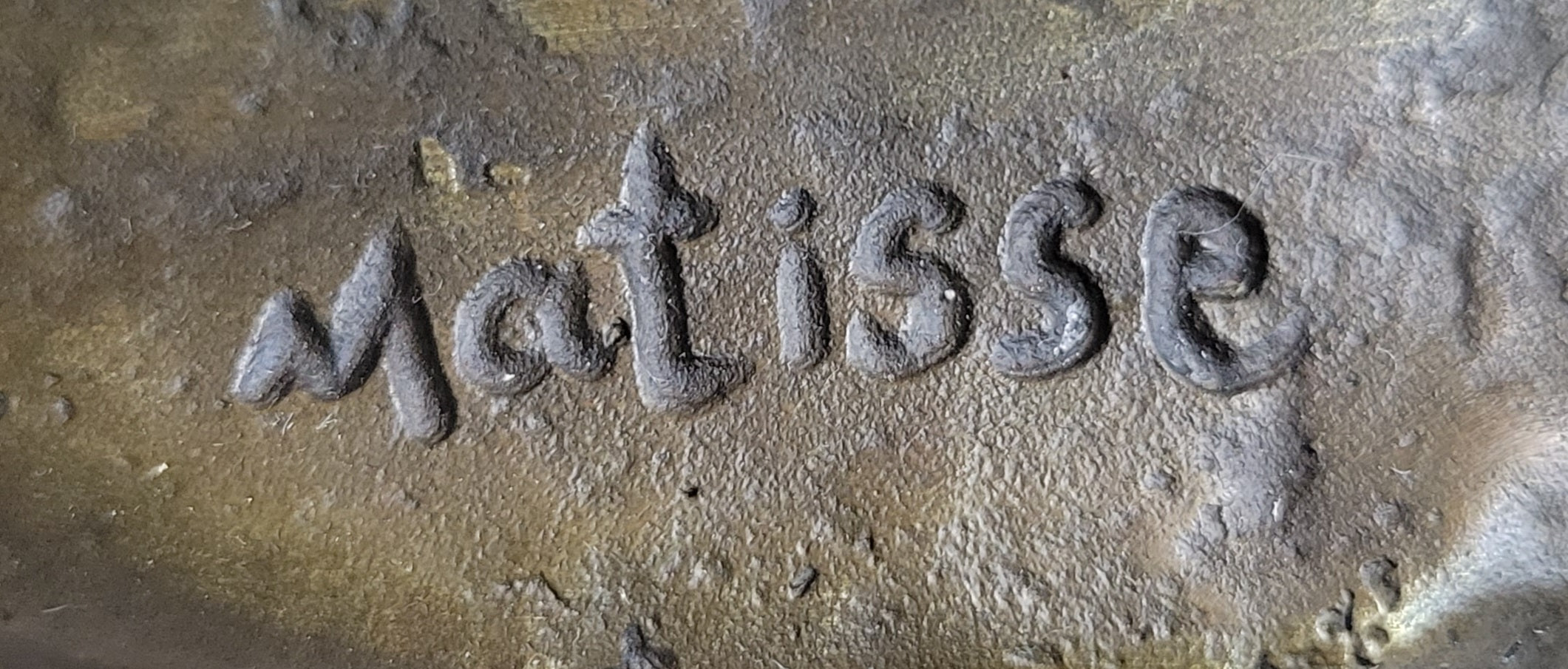 The sculpture was molded by using the lost-wax casting method. This is an exquisite three-dimensional work of art for anyone who is Henry Matisse enthusiast and is signed Matisse..Bronze Dimensions with Marble Base: Height 19" X Width 10"