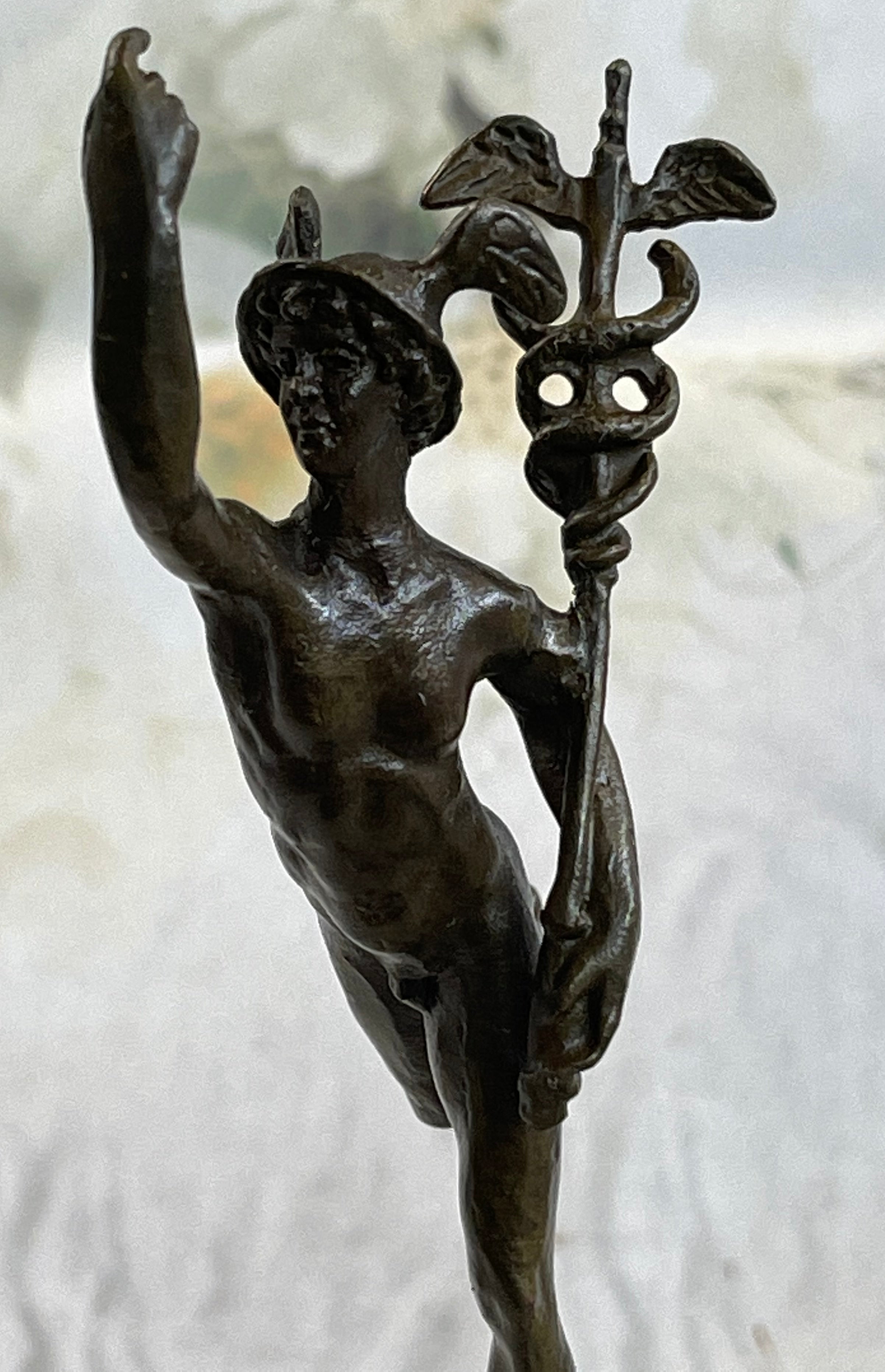 Hermes Elegant Male Nude Mercury Medical Caduceus Bronze Statue MD Office Decor