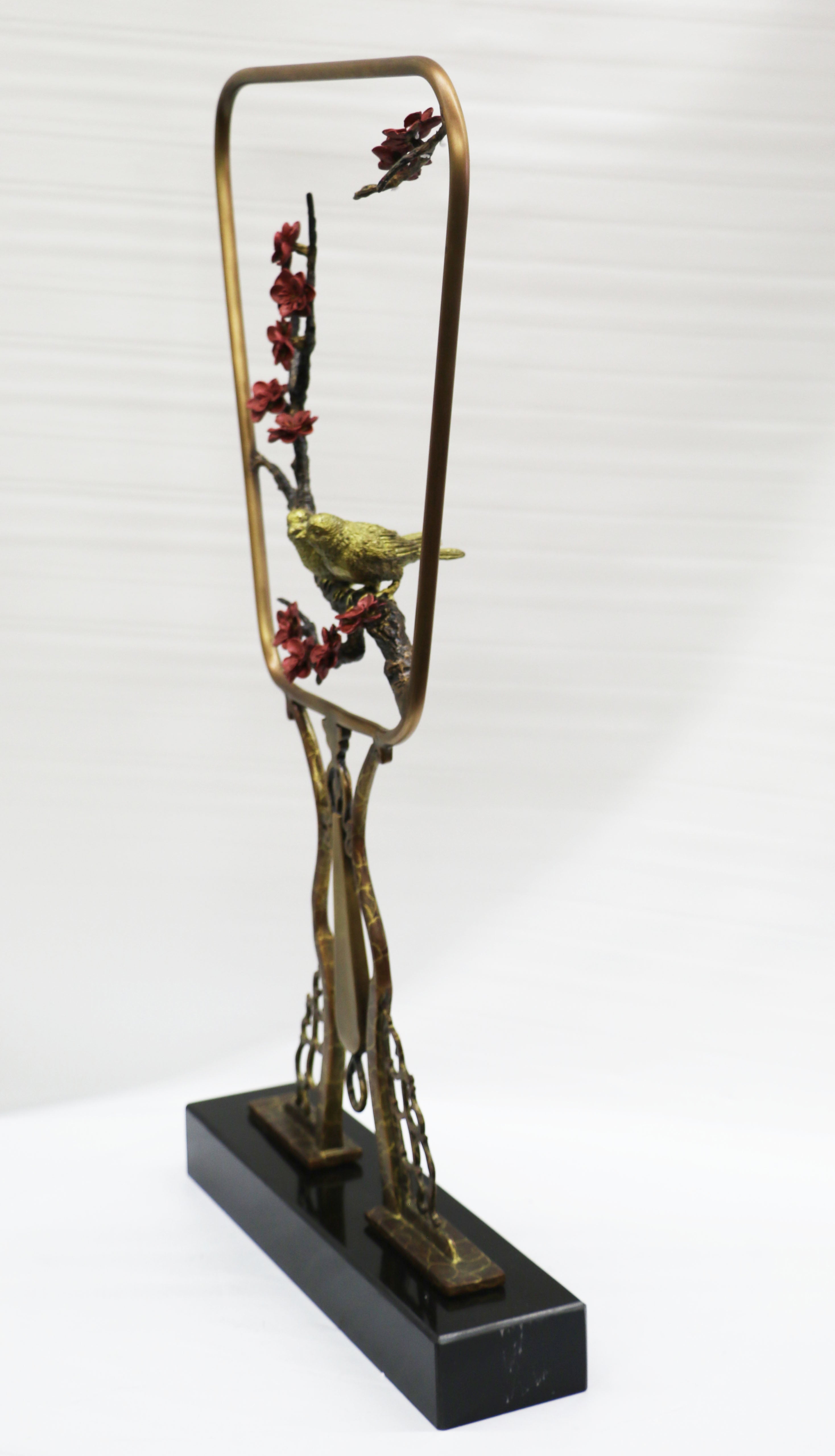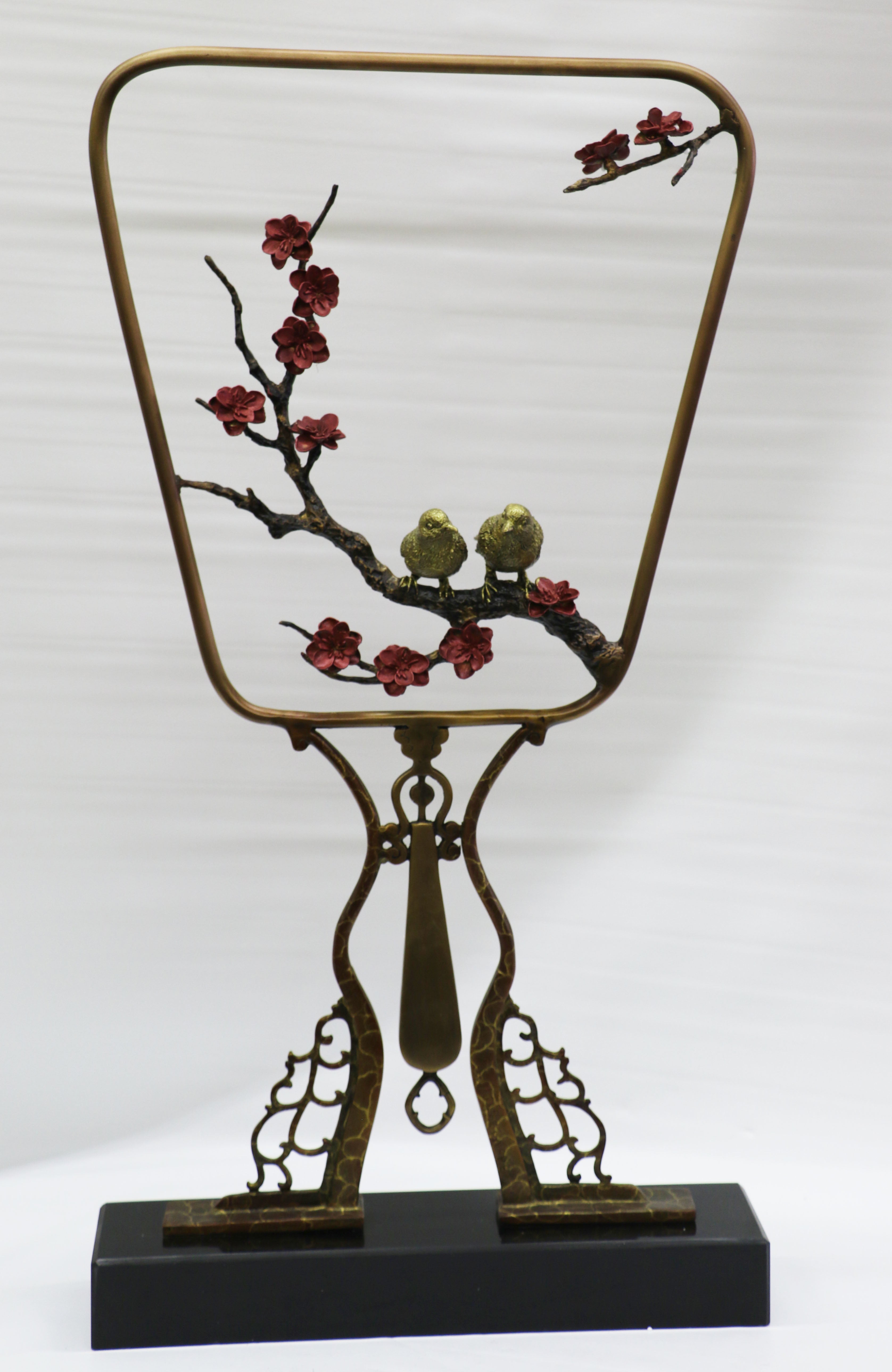 Hi End Two Love Bird with Flowers on a Tree Branch LTD Edition By Aldo Vitaleh