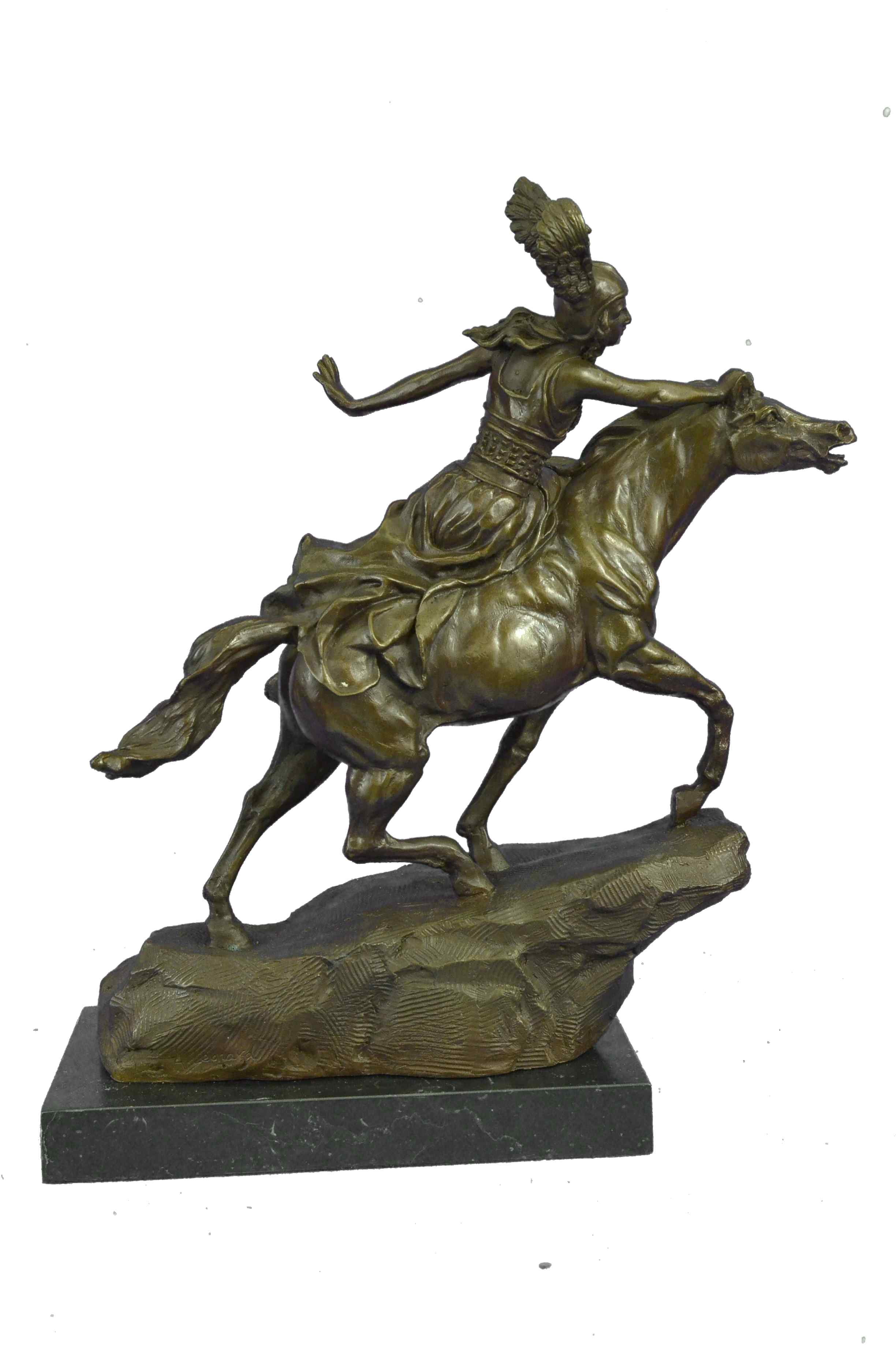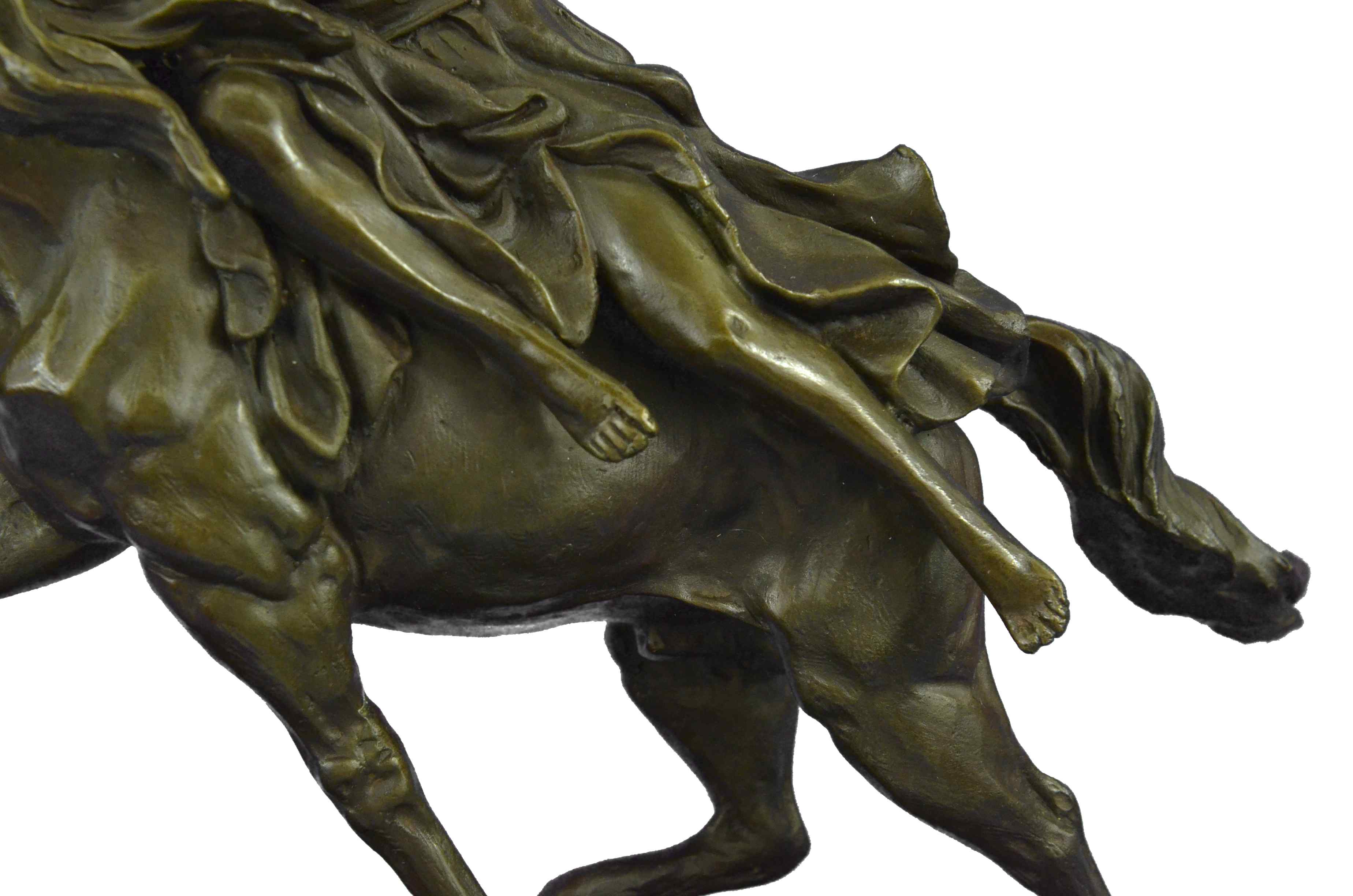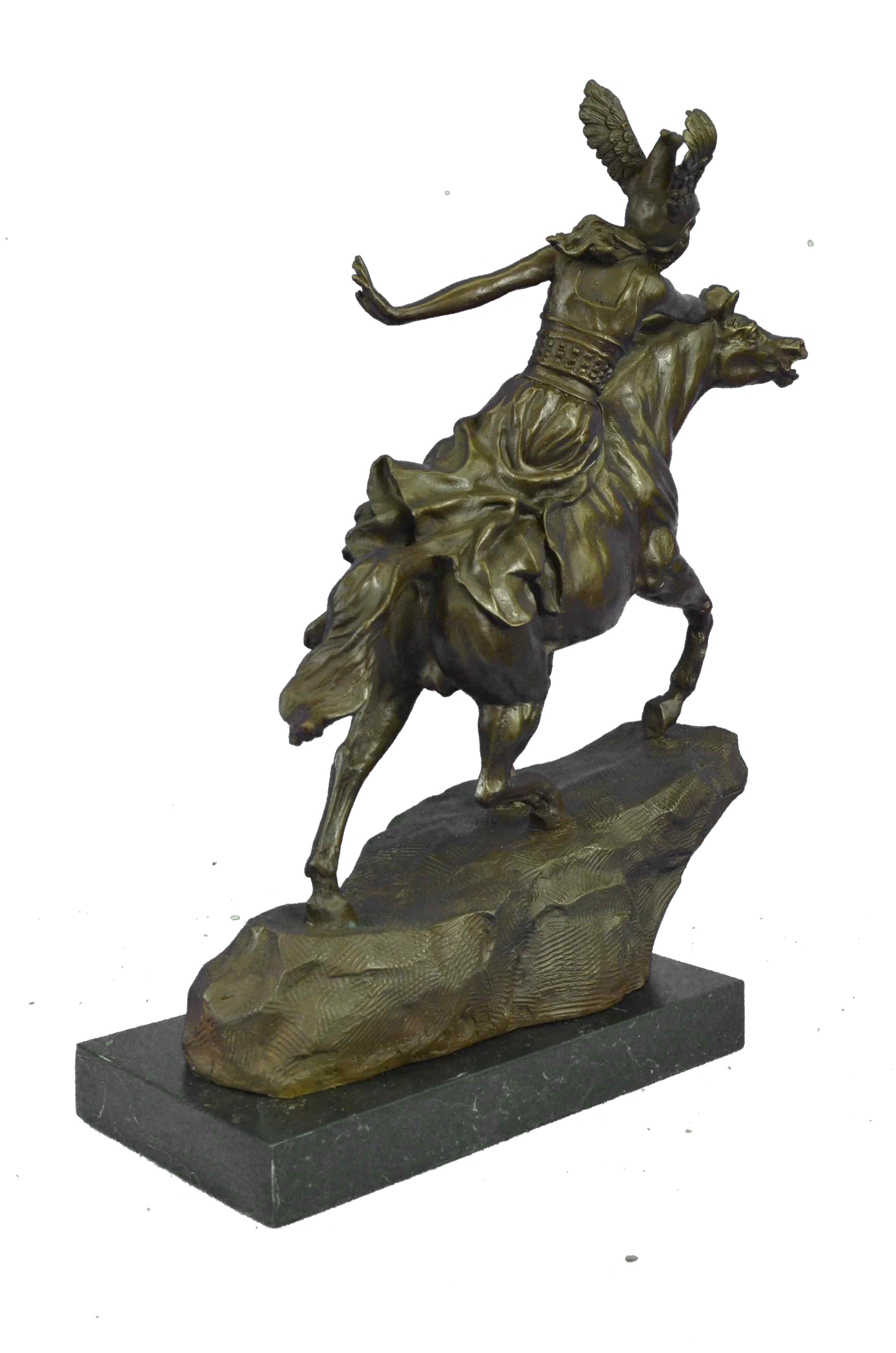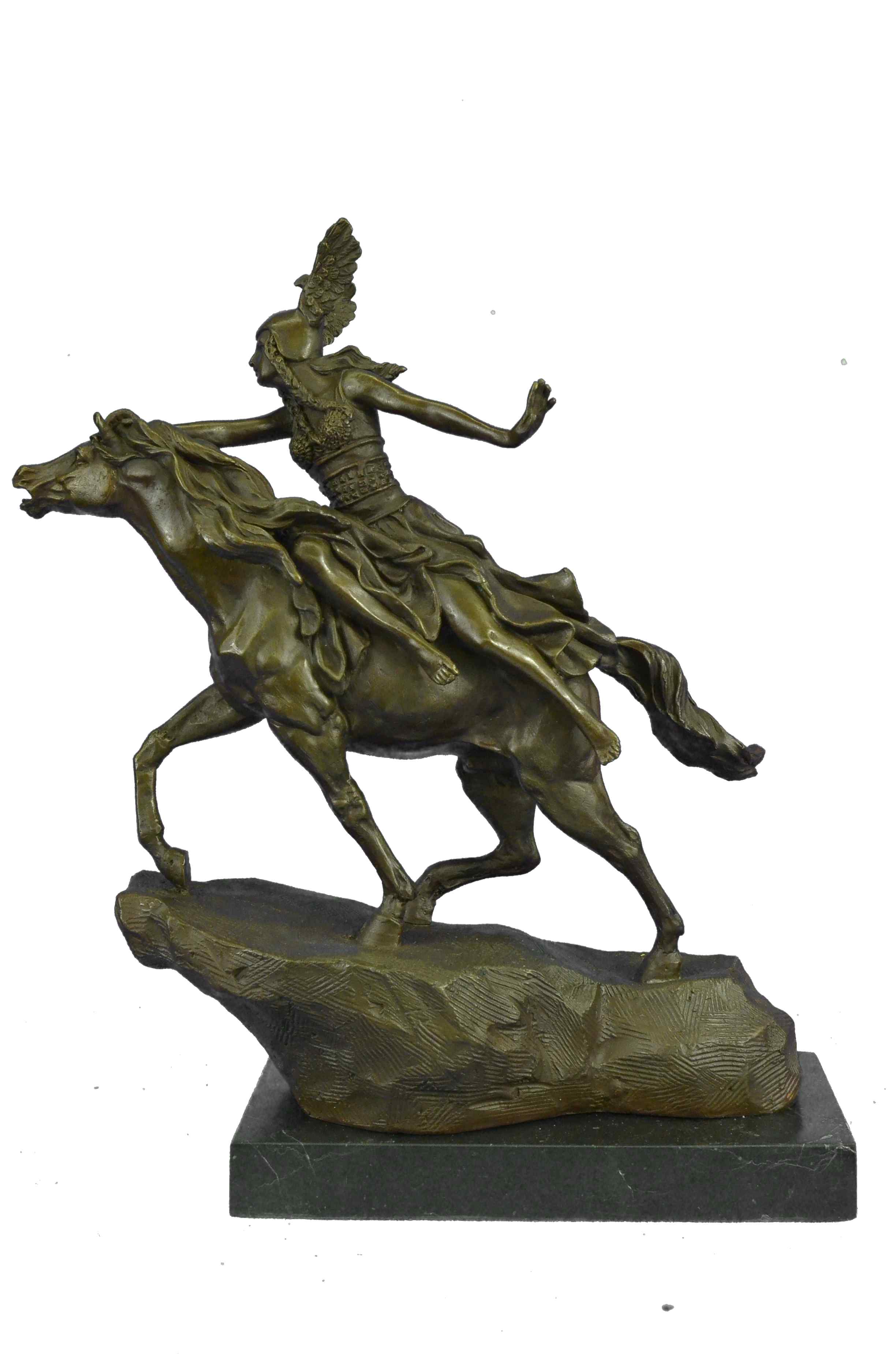 Hot Cast Amazon Woman Riding Horse Bronze Sculpture Marble Base Figurine Figure