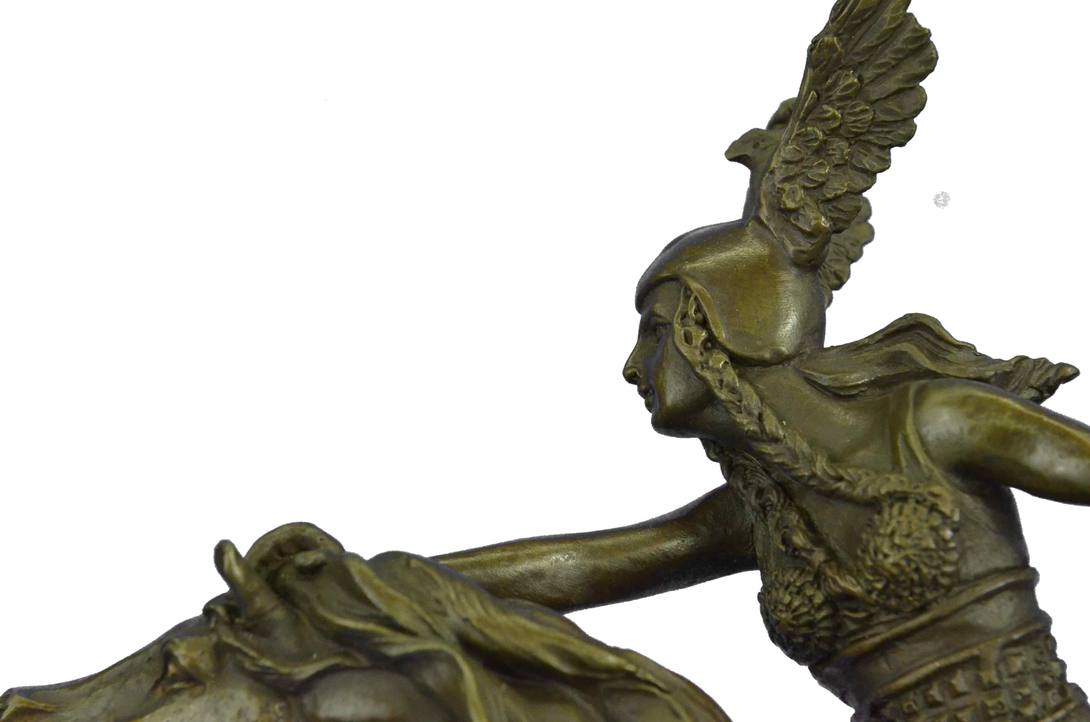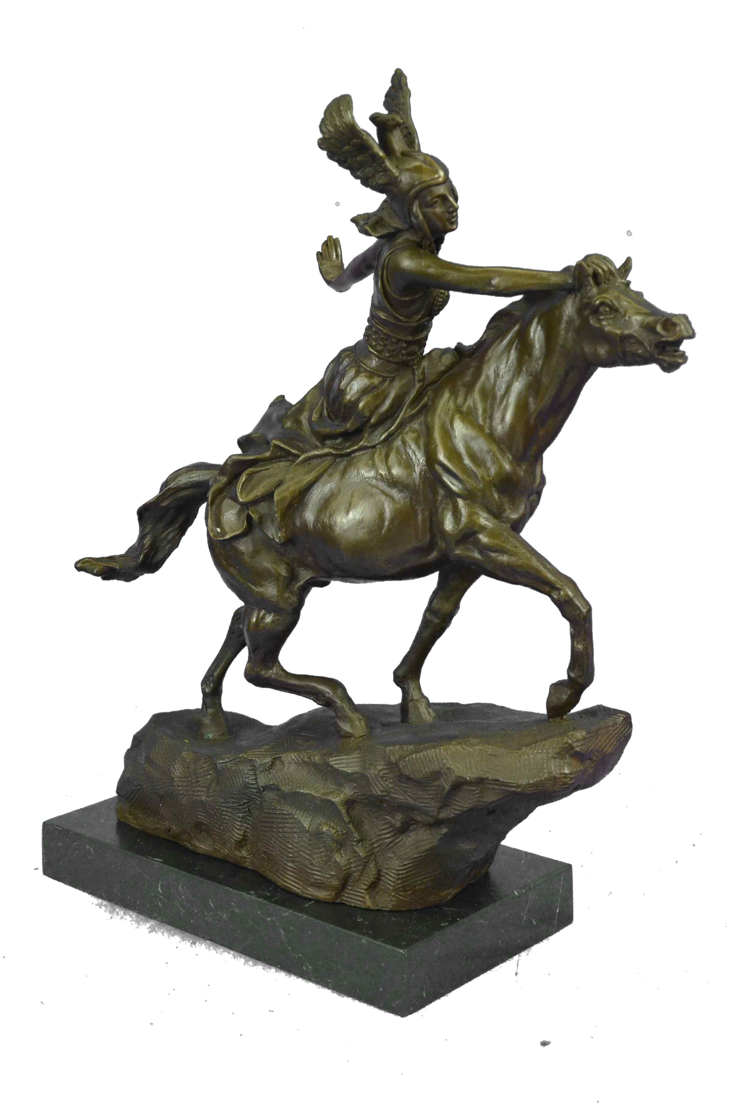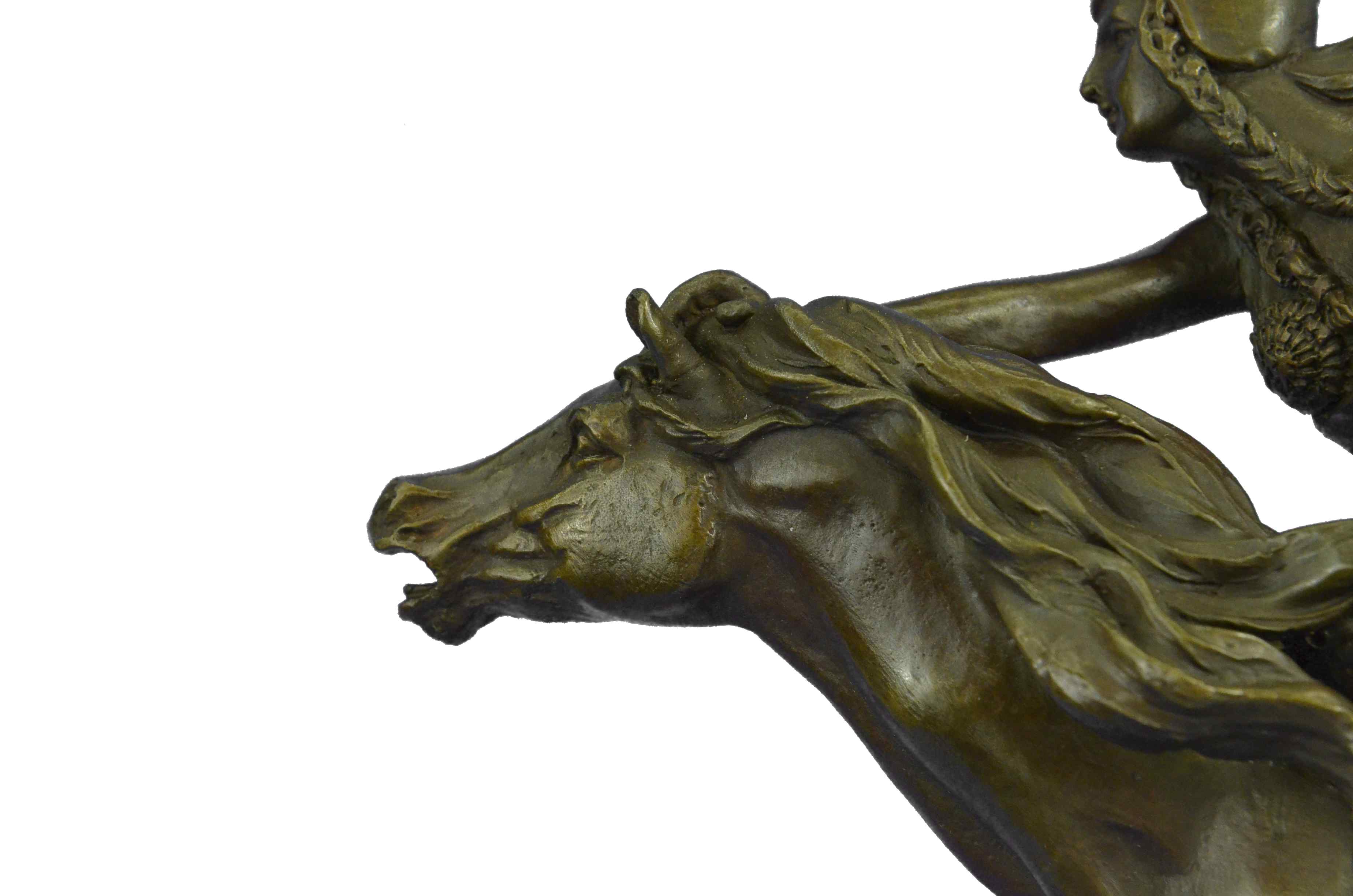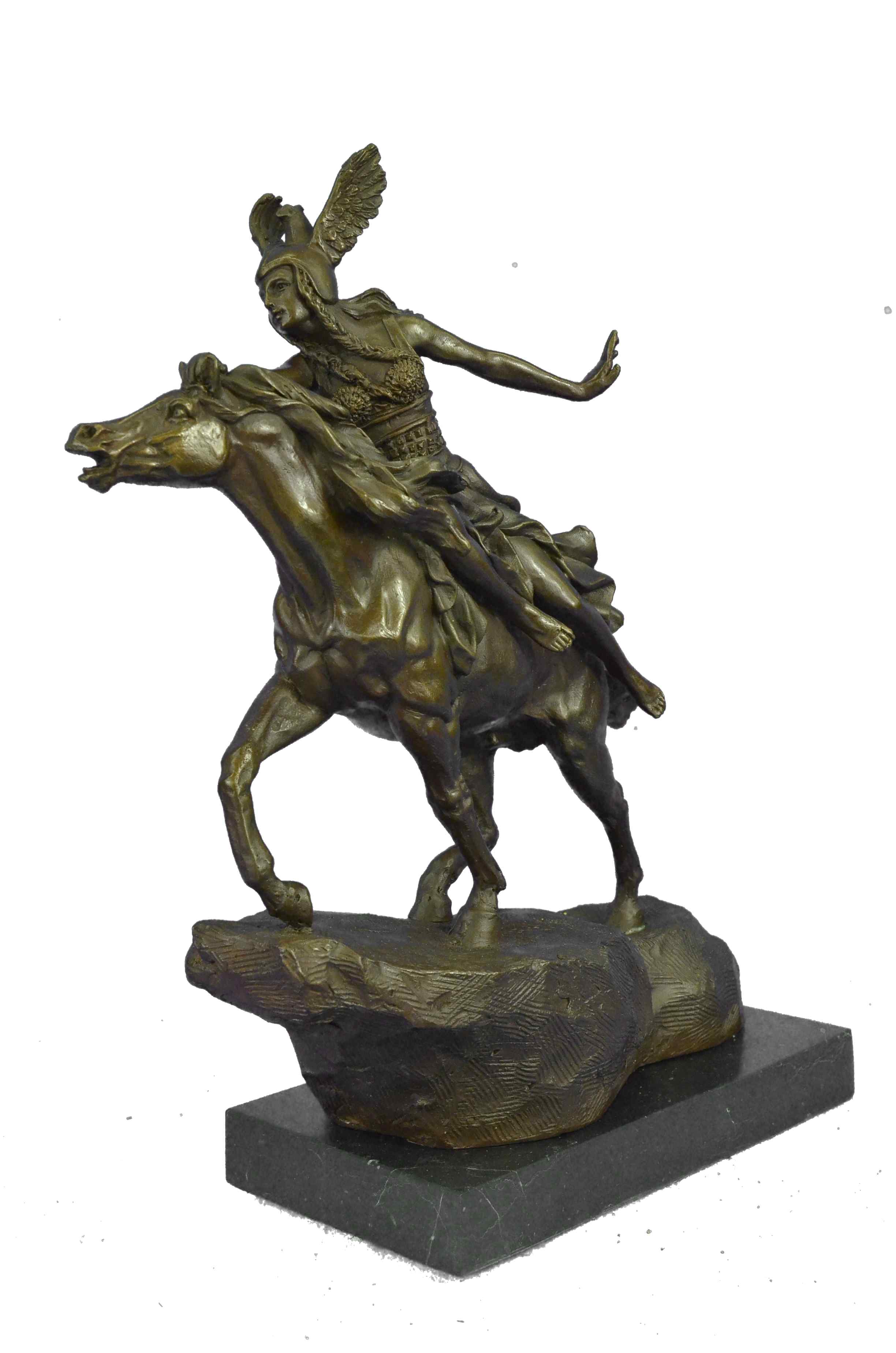 Hot Cast Amazon Woman Riding Horse Bronze Sculpture Marble Base Figurine Figure