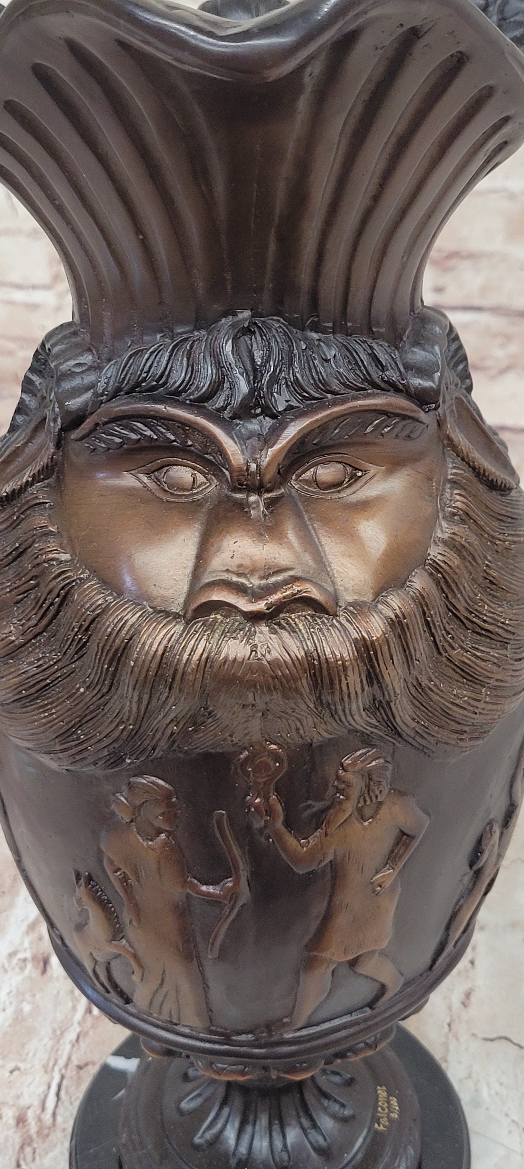 This stunning vase is more than just a decorative object; it is a piece of history, a work of art, and a collectible treasure. Perfect for connoisseurs of fine art and enthusiasts of classical antiquity, this sculpture is a remarkable tribute to the enduring legacy of the Roman Empire. Embrace the elegance and sophistication of this limited edition bronze sculpture, and elevate your collection with a piece that embodies timeless beauty and artistic mastery.Bronze Dimensions with Base: Height 18" X Width 10"