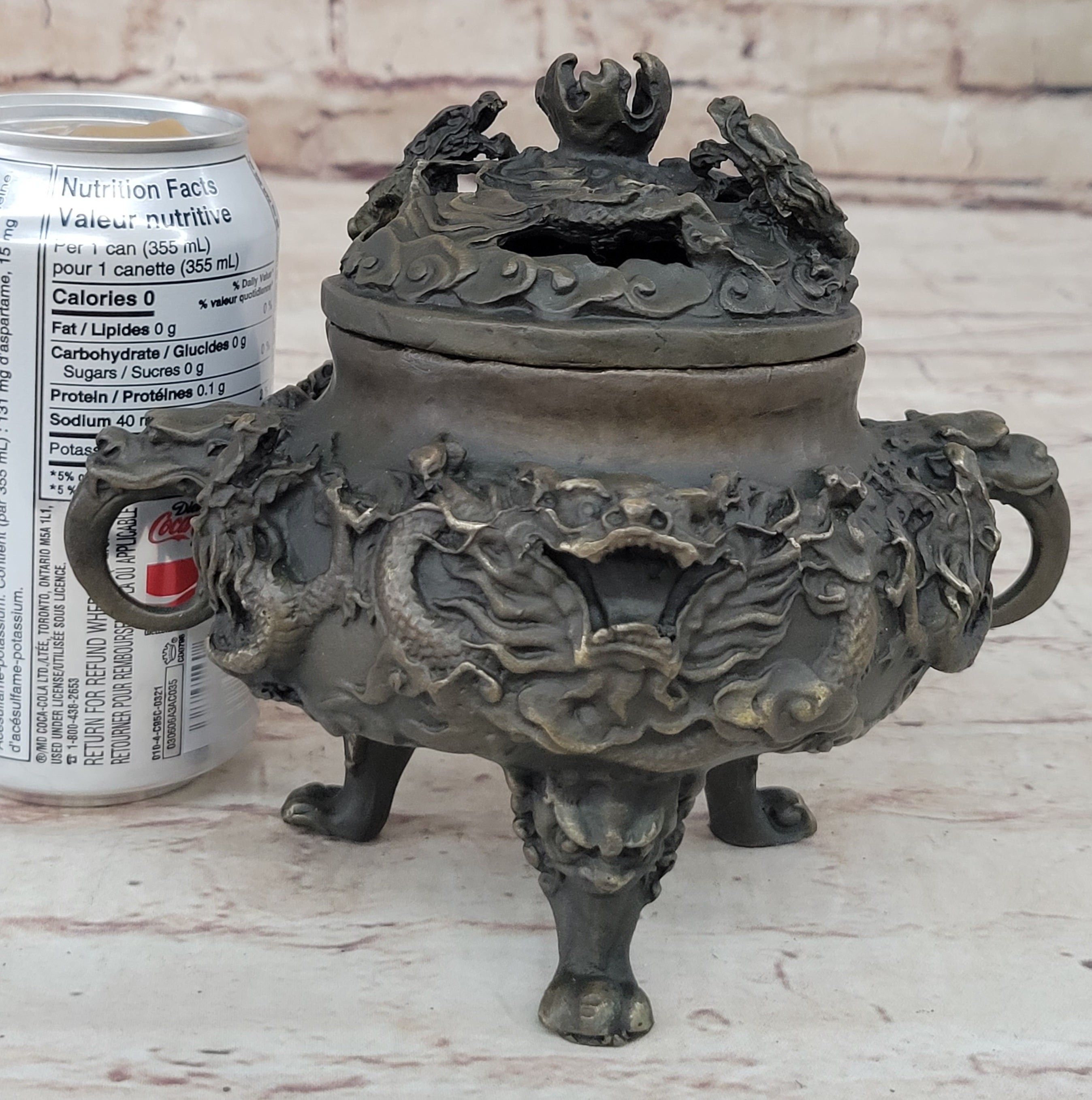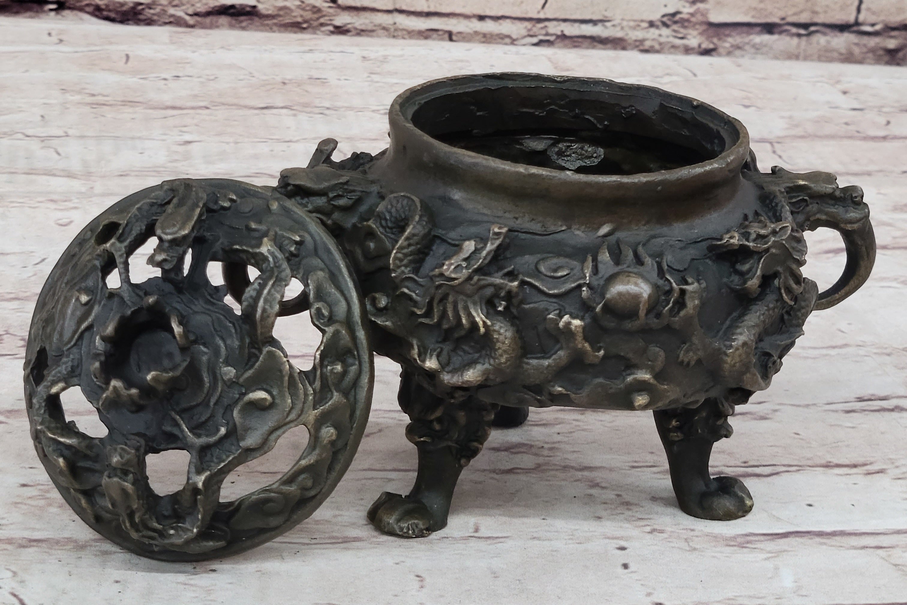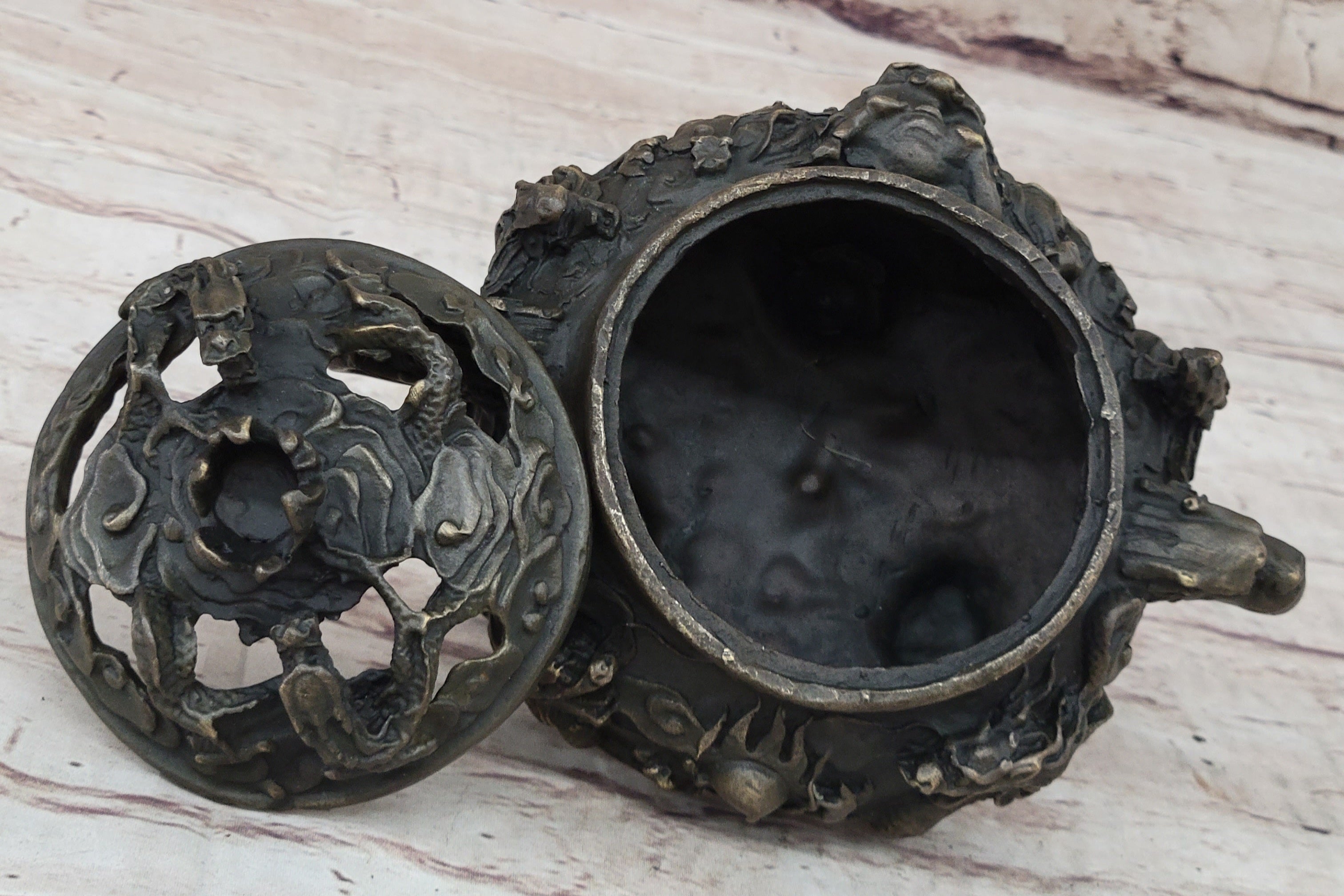 Hot Cast Bronze Dragon Incense Burner Mythical Sculpture Handmade Original Art