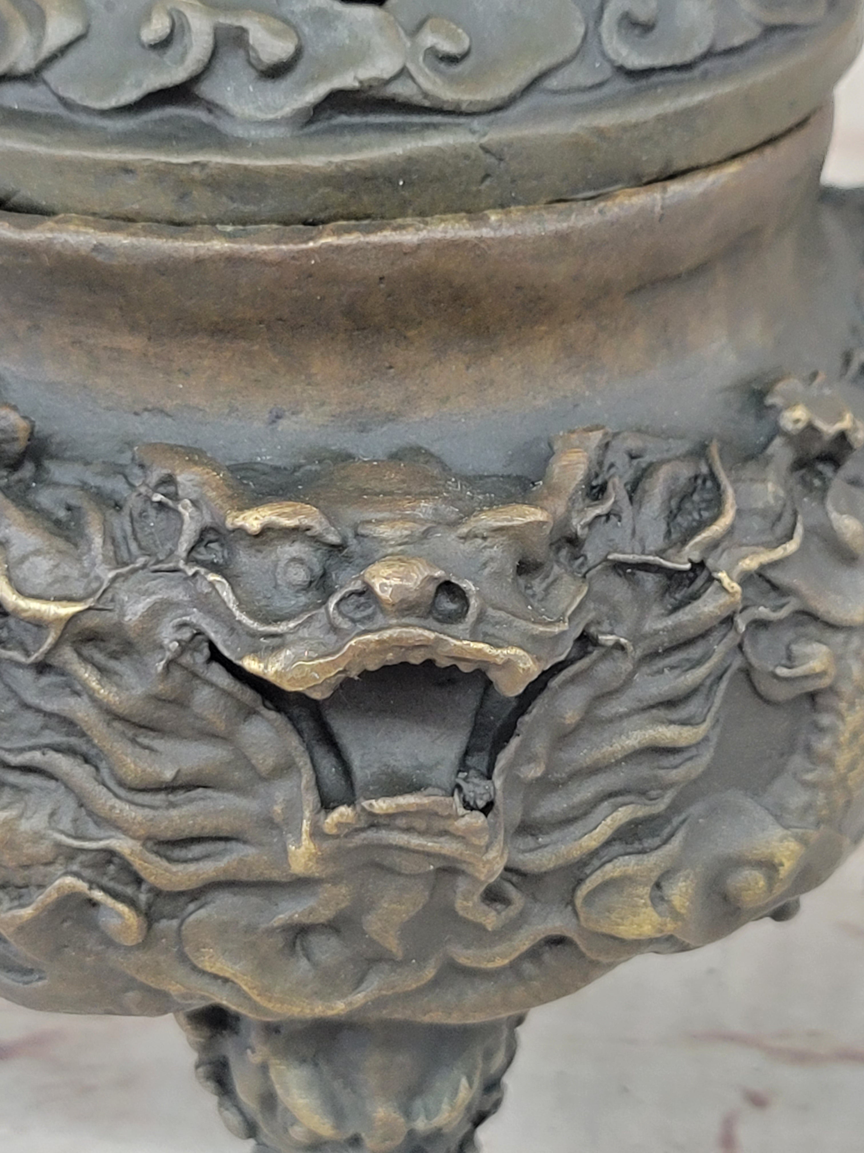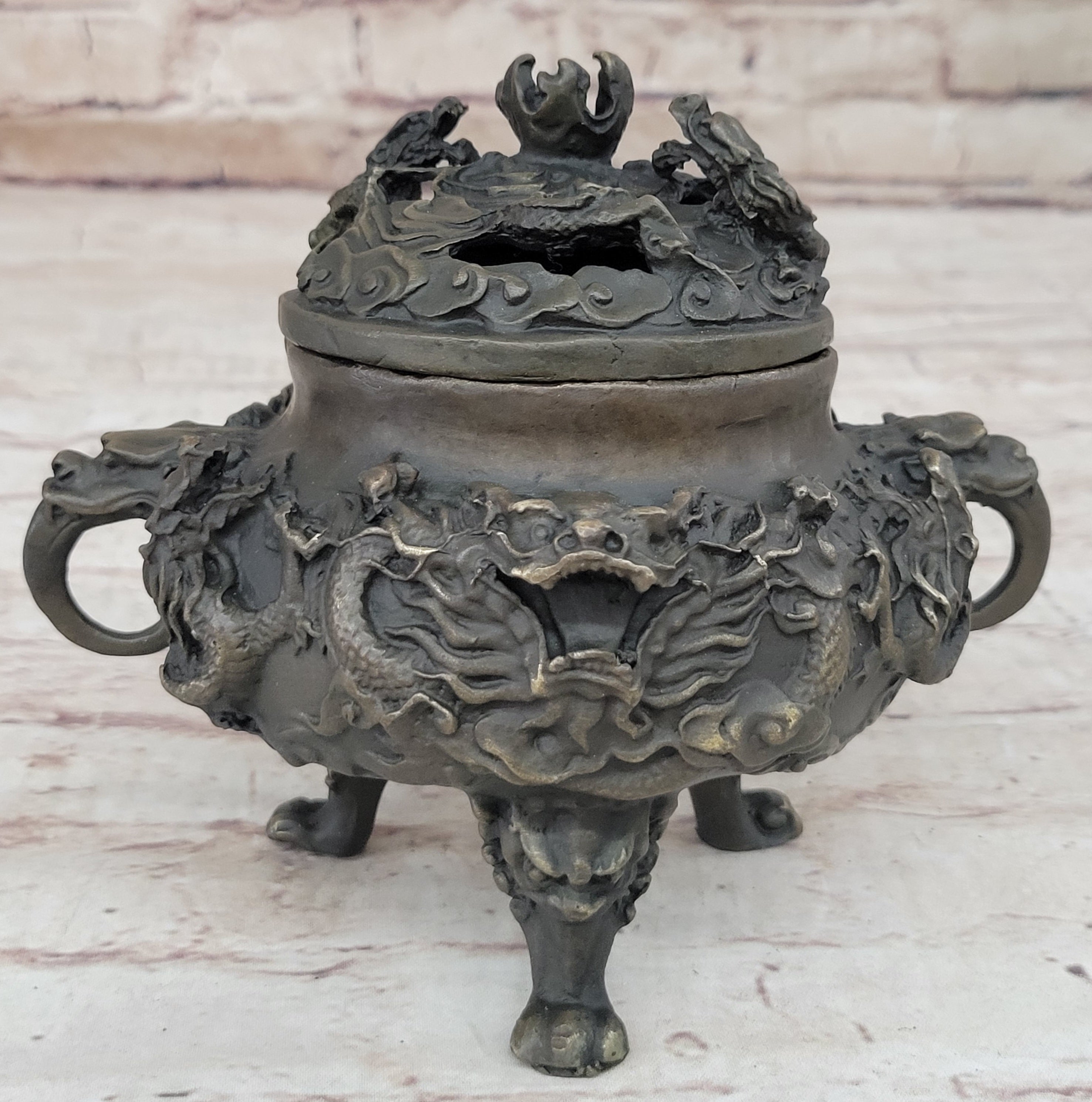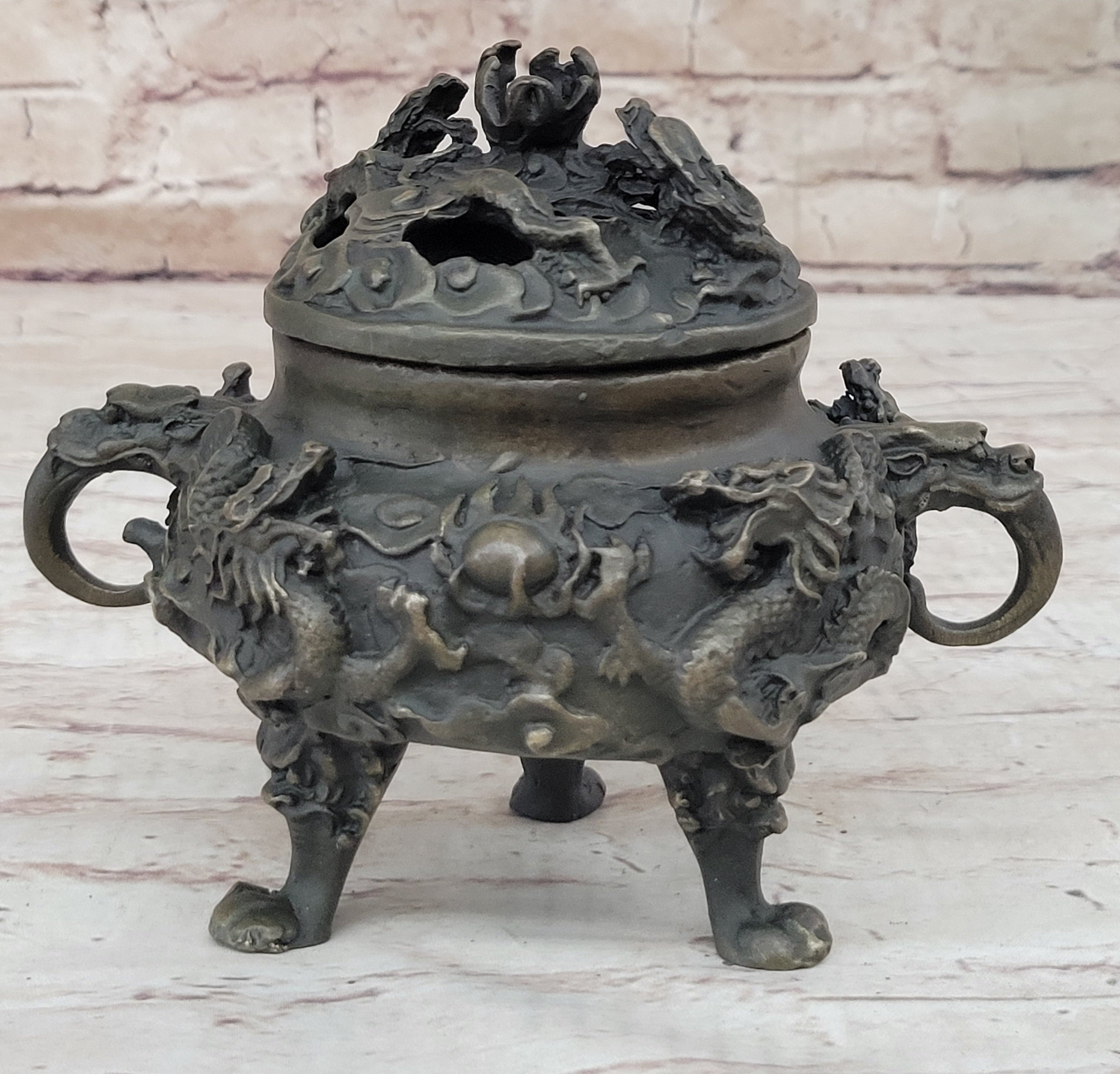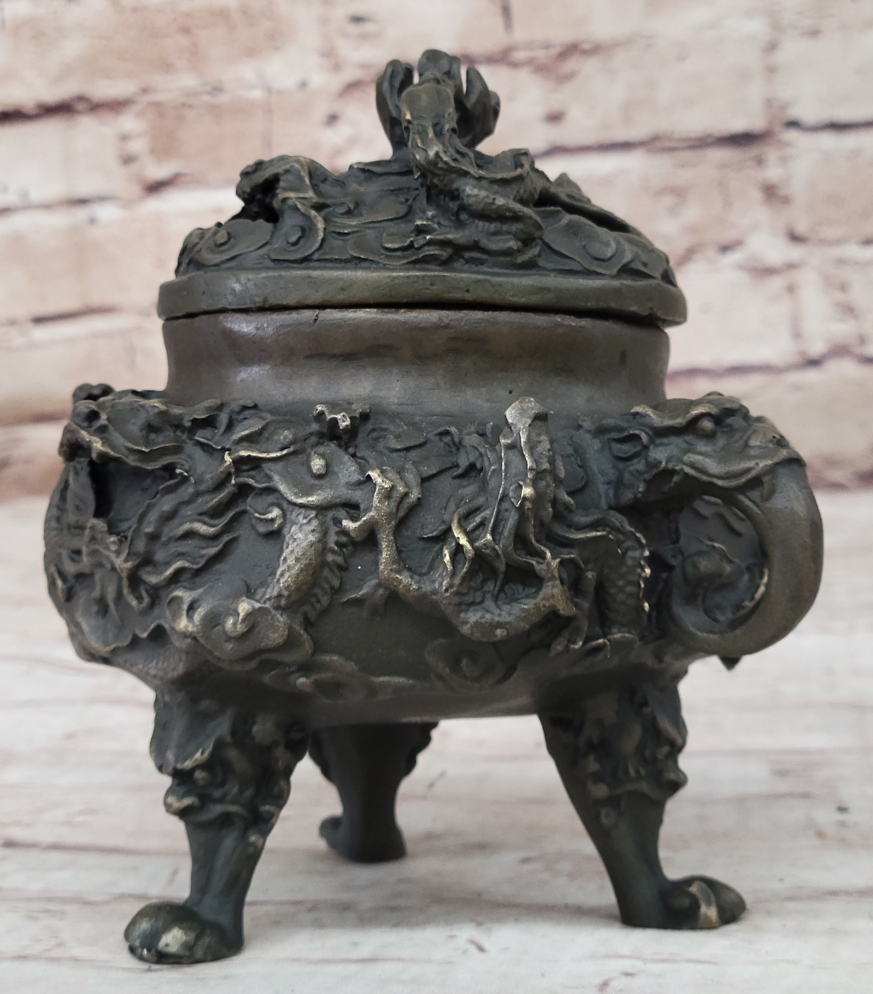 Hot Cast Bronze Dragon Incense Burner Mythical Sculpture Handmade Original Art