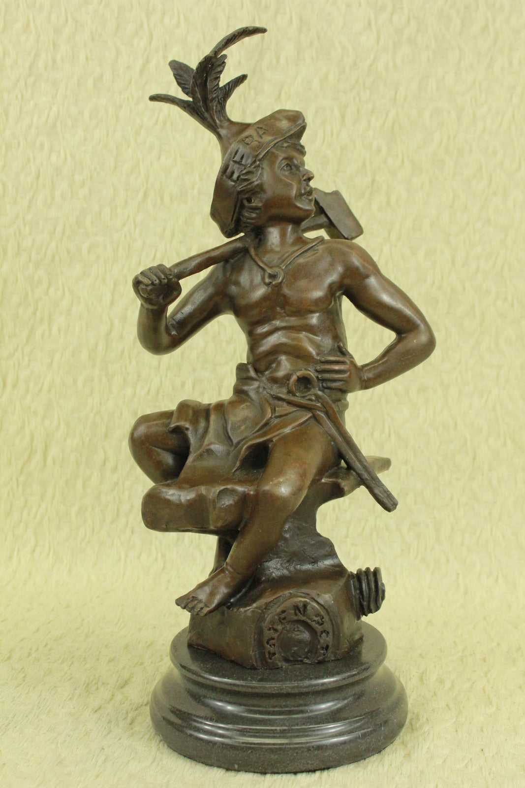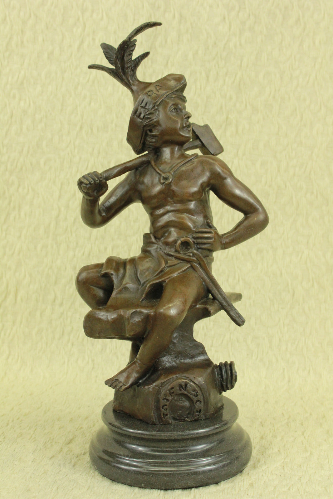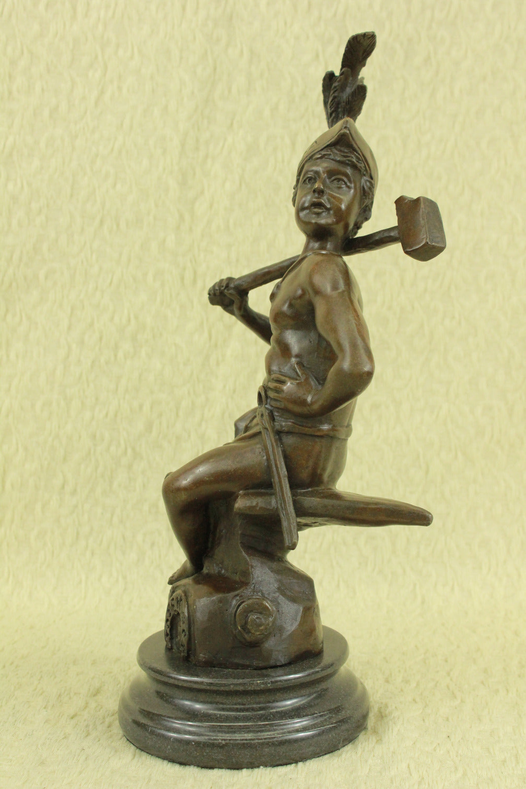 Hot Cast Museum Quality Belgian Artist Auguste de Wever Boy Hammer Bronze Statue