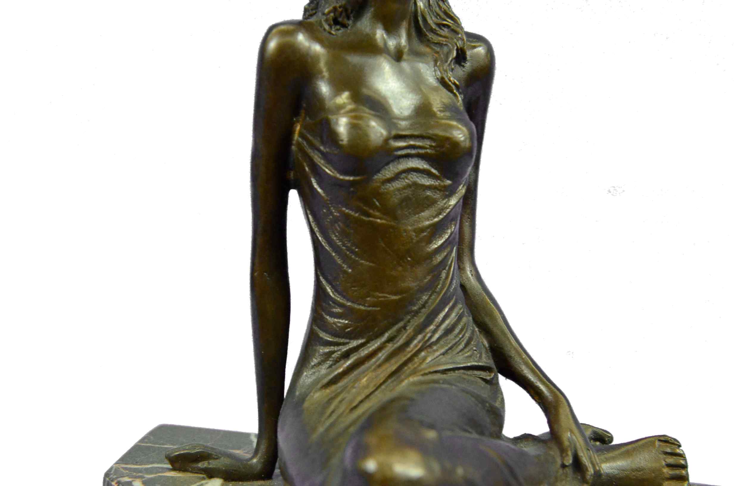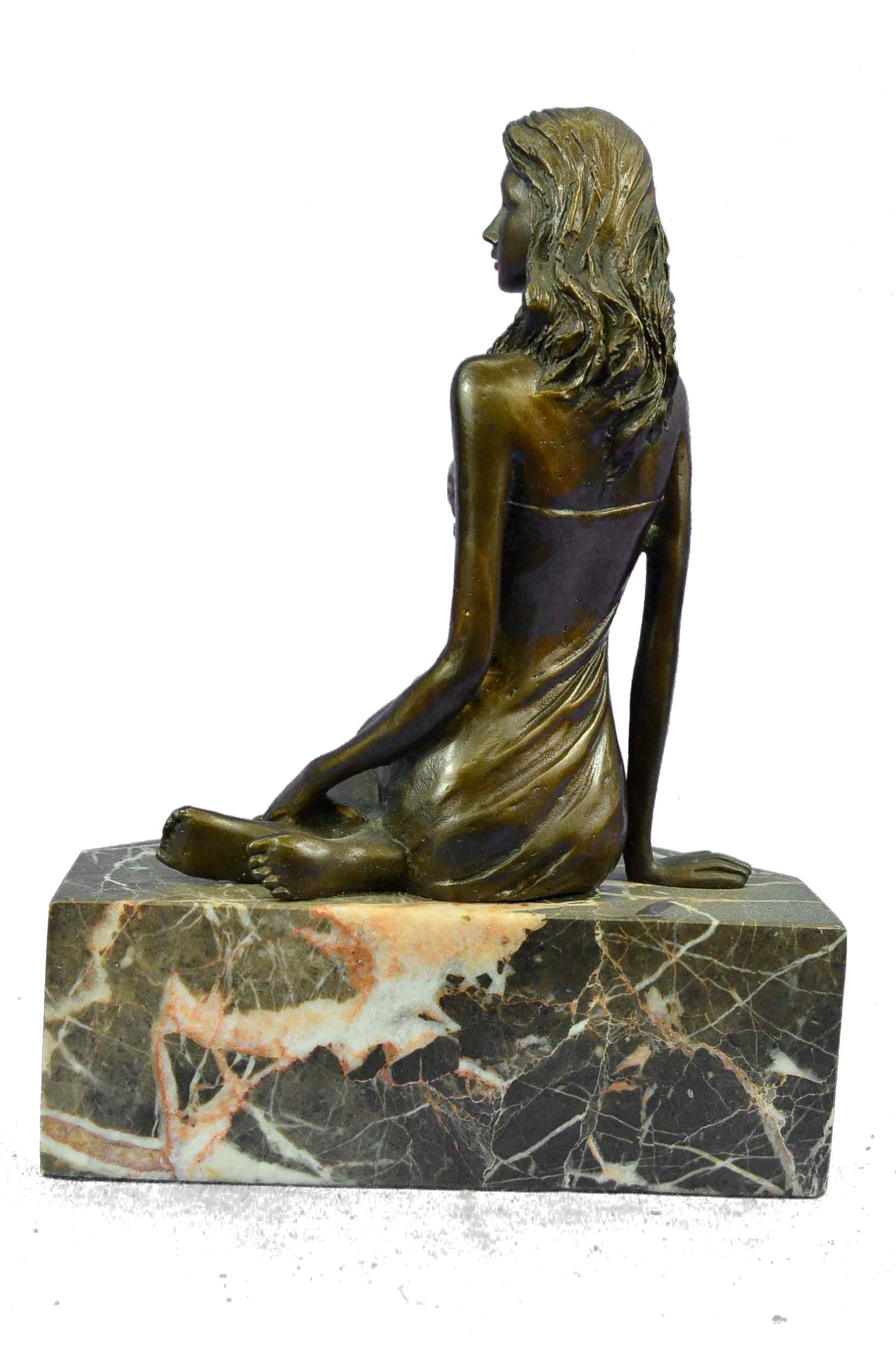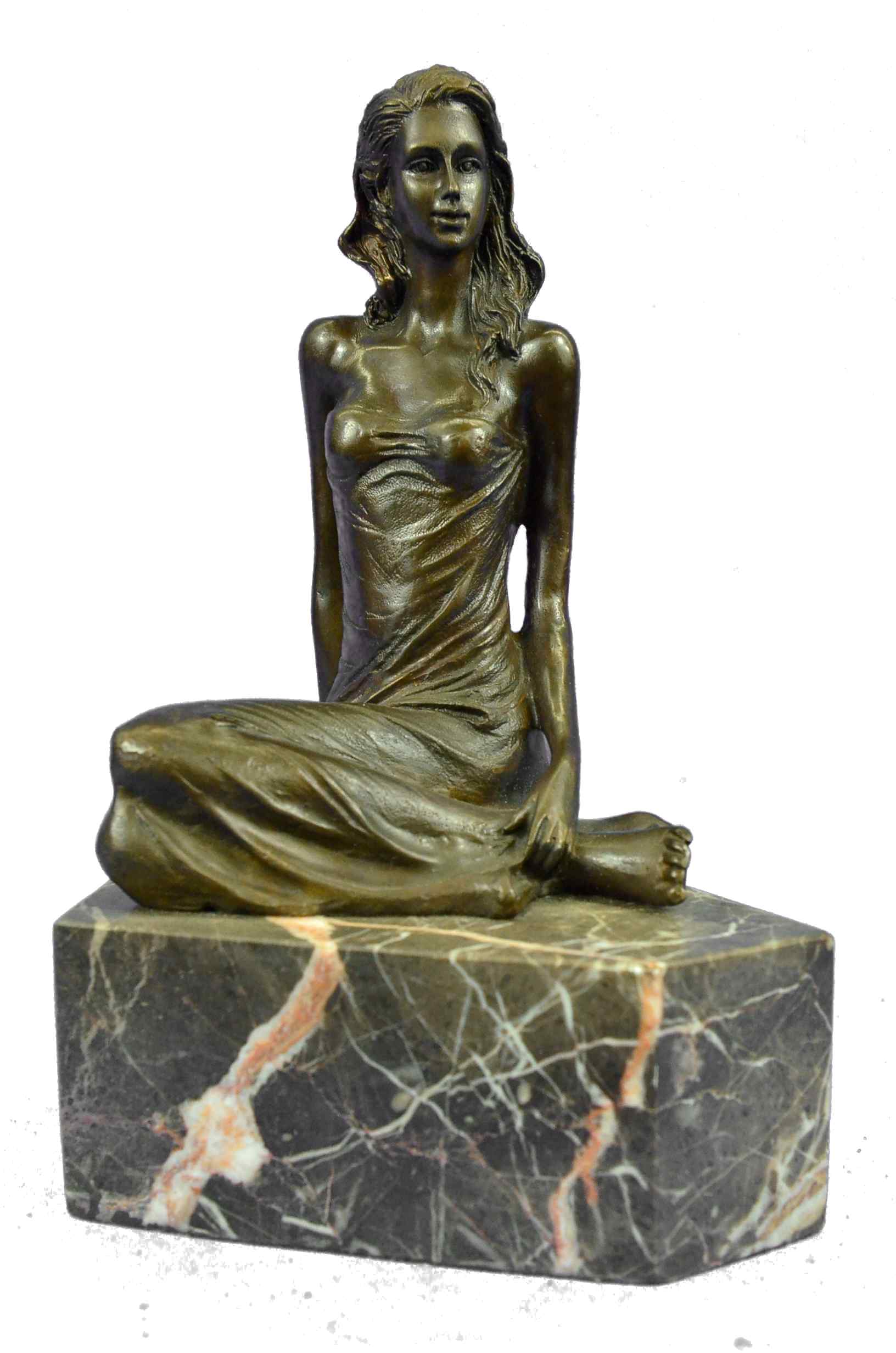 Hot Cast Sexy Woman Bronze Sculpture Marble Base Figurine Statue Figure Decor