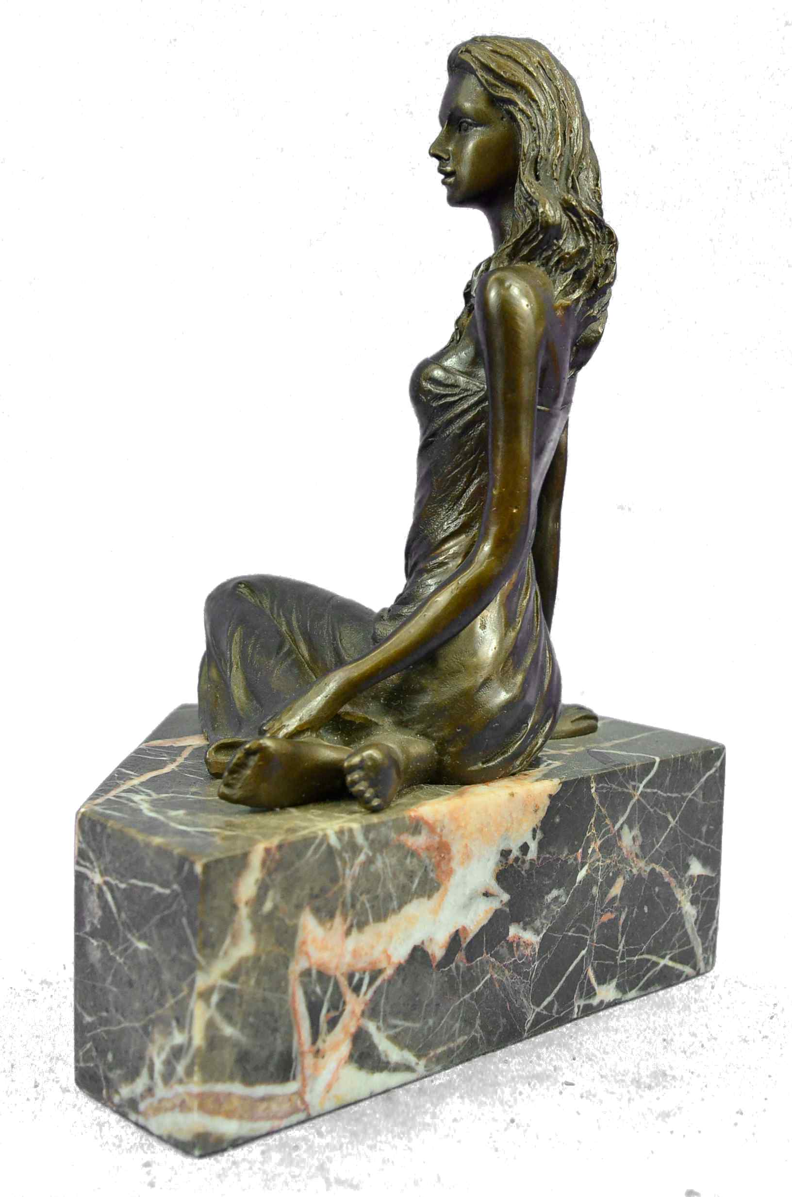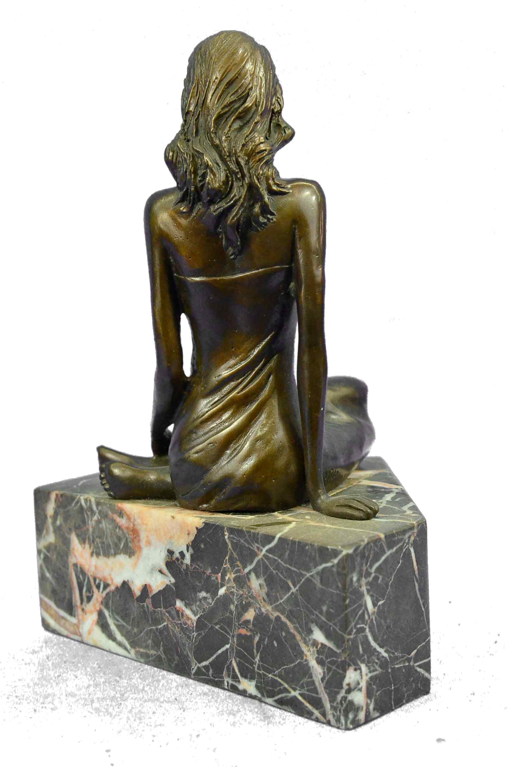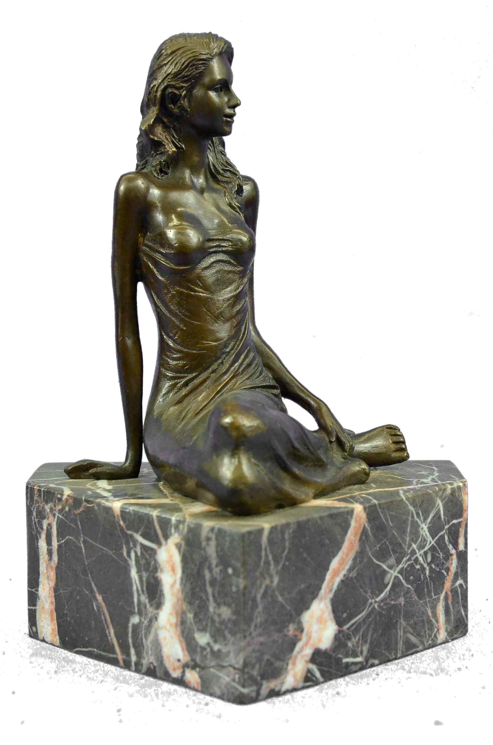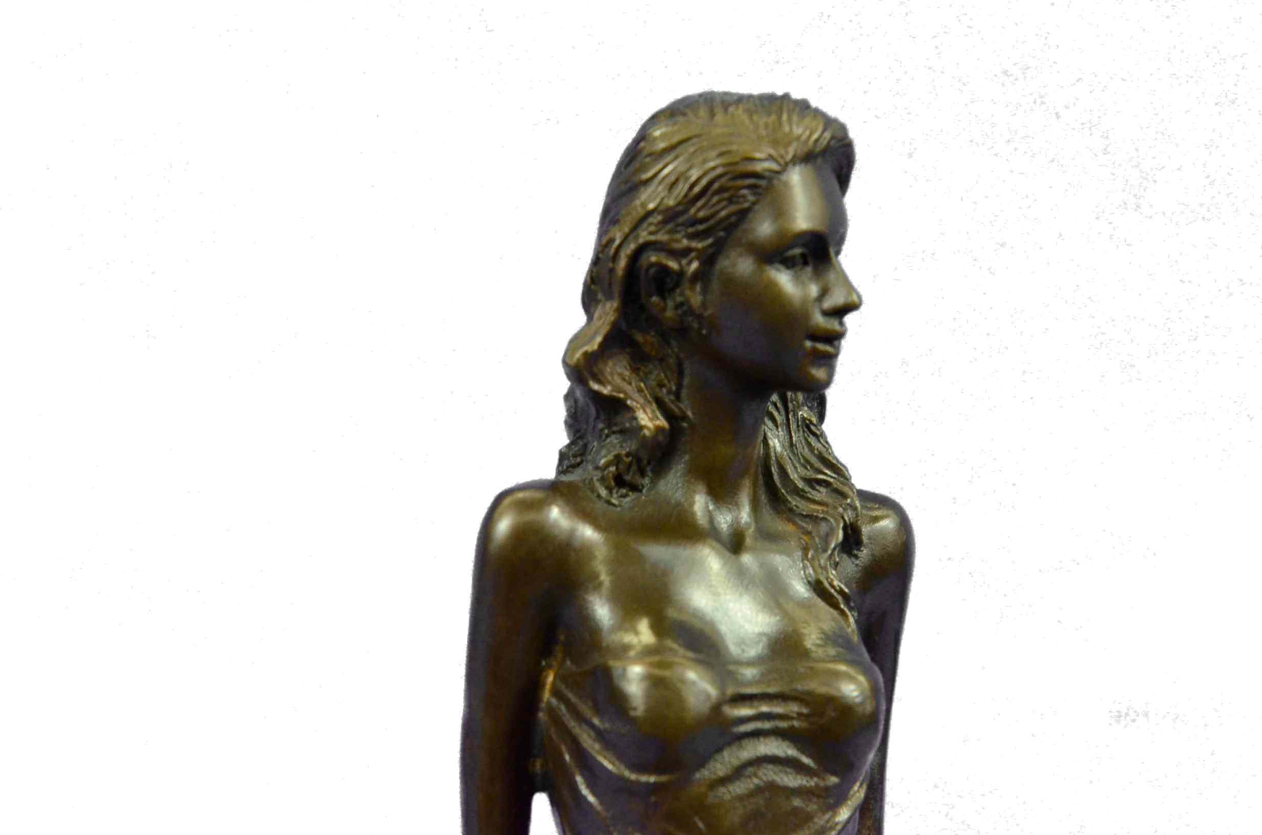 Hot Cast Sexy Woman Bronze Sculpture Marble Base Figurine Statue Figure Decor