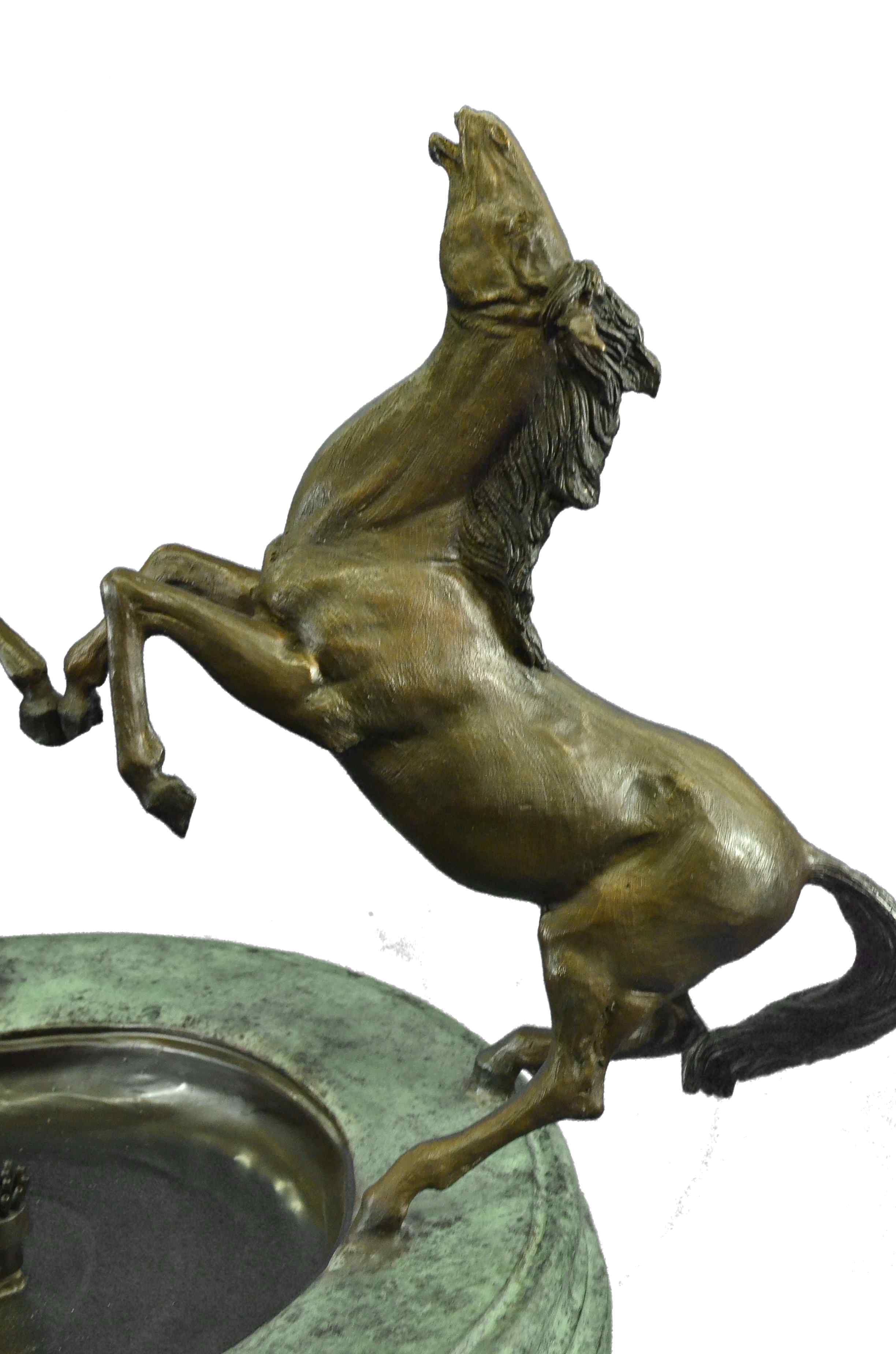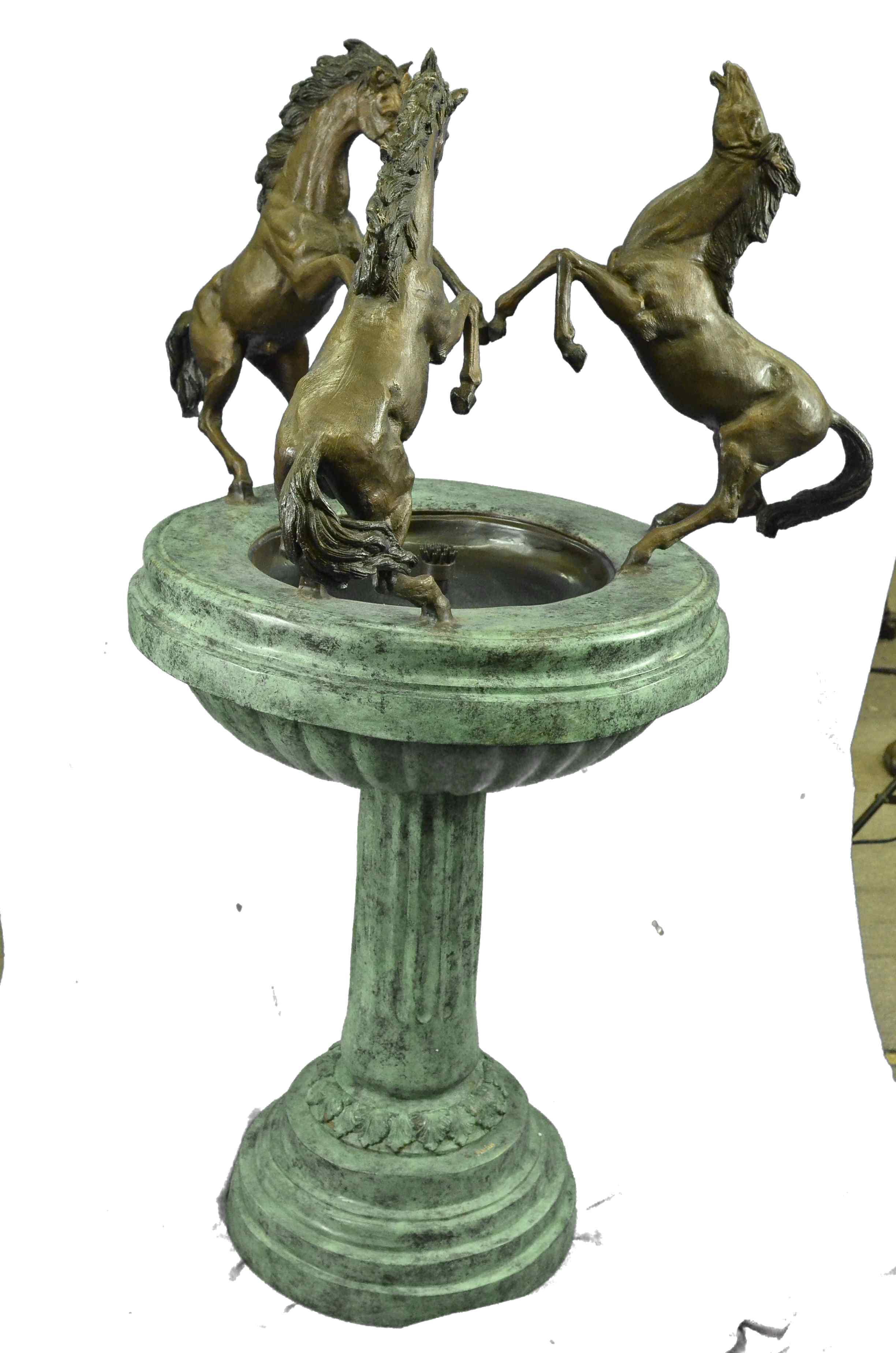 Three Rearing Stallions Fountain This bronze statue measures 53” high by 33” long by 33” wide. It is handmade and cast in the traditional Lost Wax Casting Process. This insures a quality bronze sculpture that may be passed down from generation to generation. This is a good piece for outdoor gardens or lawn decoration. This piece will last forever outdoors. It is made to stand up to the elements and will look great wherever you put it with little or no maintenance.Original or Reproduction: Original
