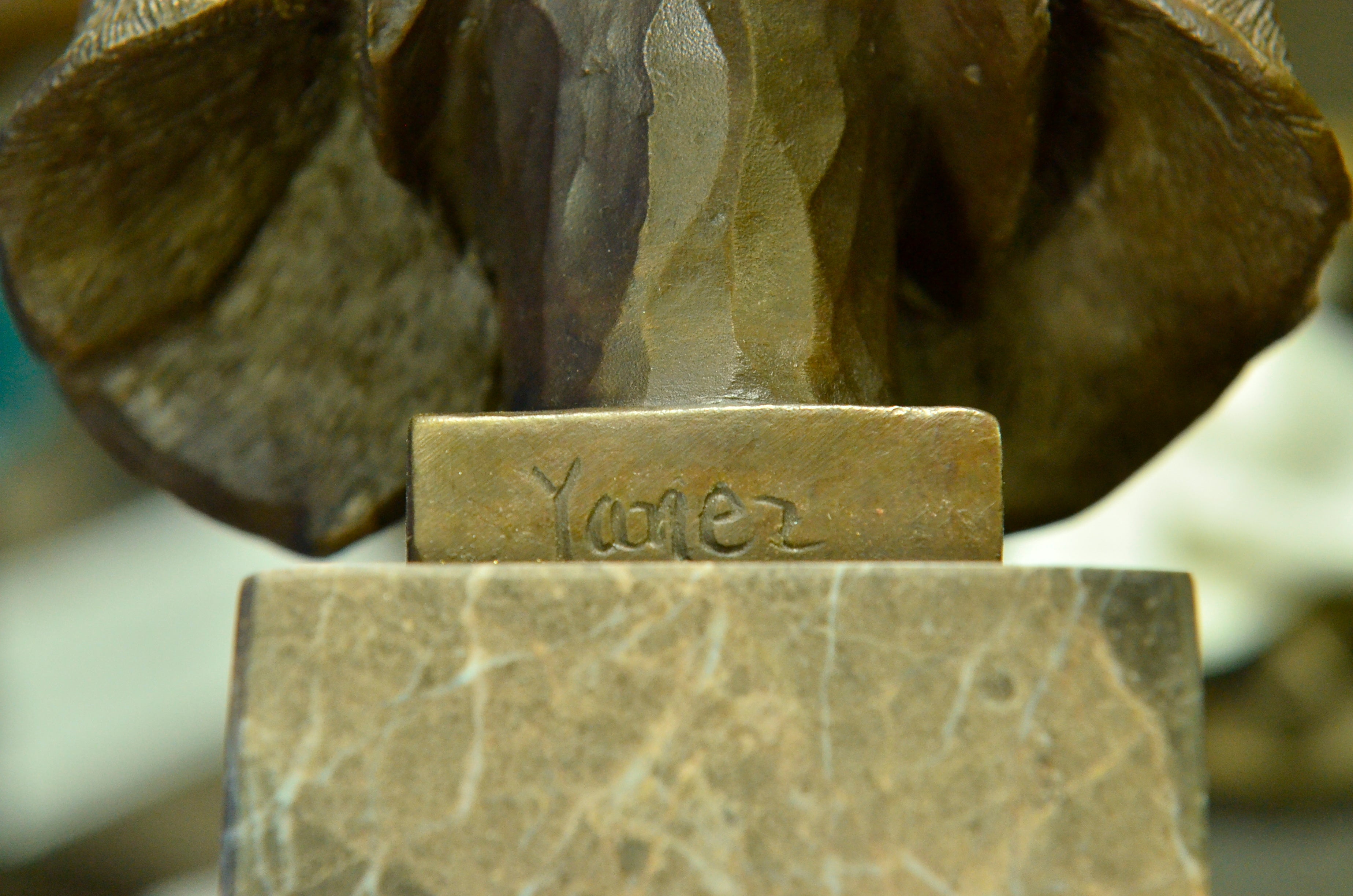 Condition: This sculpture is in a perfect condition. Bronze Dimensions with Marble Base:Height 9 1/2" x Width 5" Marble Dimensions: 3" X 3" Height without base: 4 1/2" Weight : 6 LBS Inventory : 74X24793647 SALE$