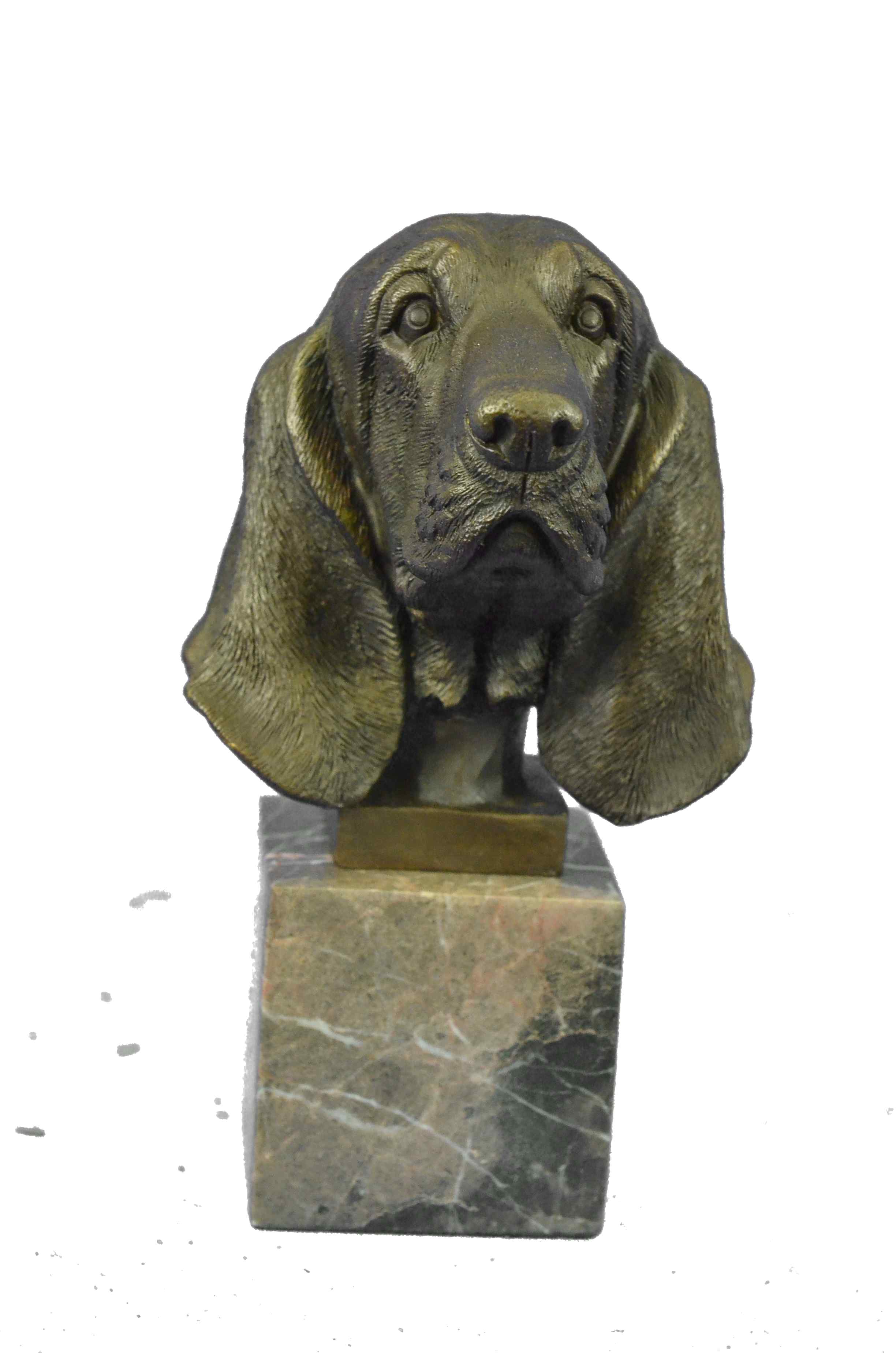 Hush Puppy Basset Hound Scent Dog Breeder Bronze Marble Sculpture Statue Decor