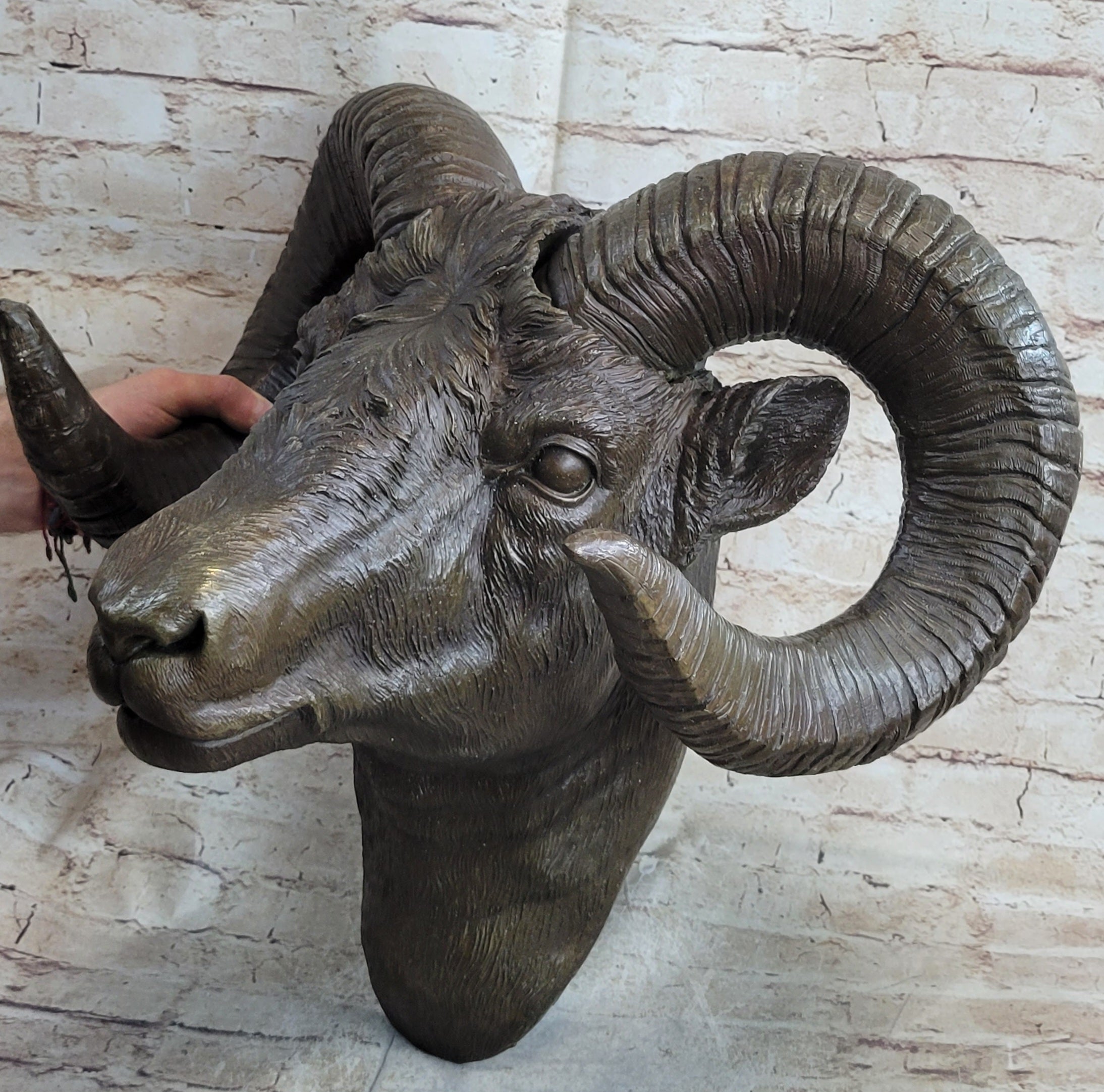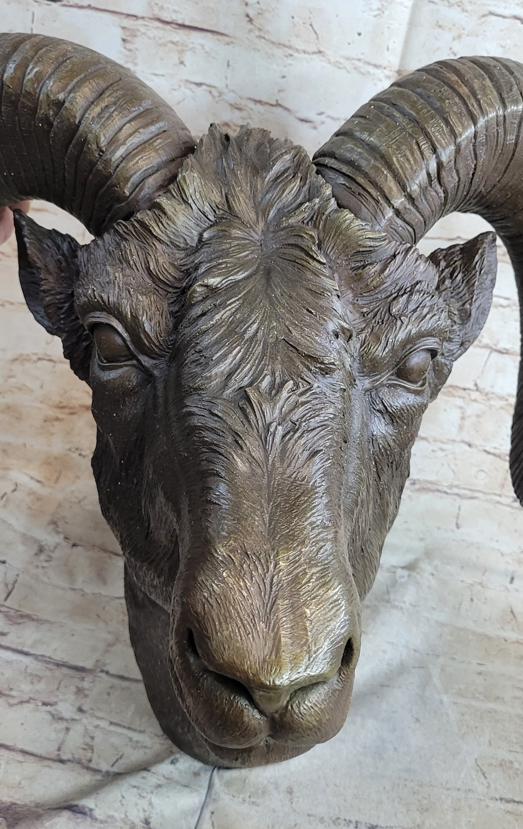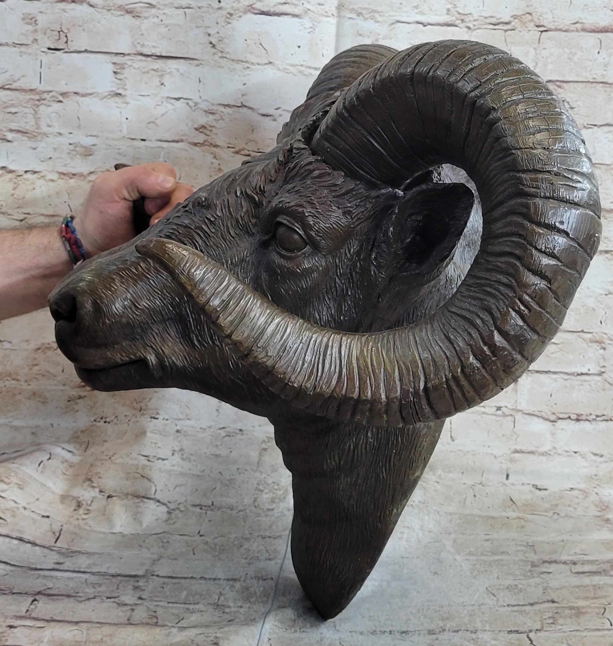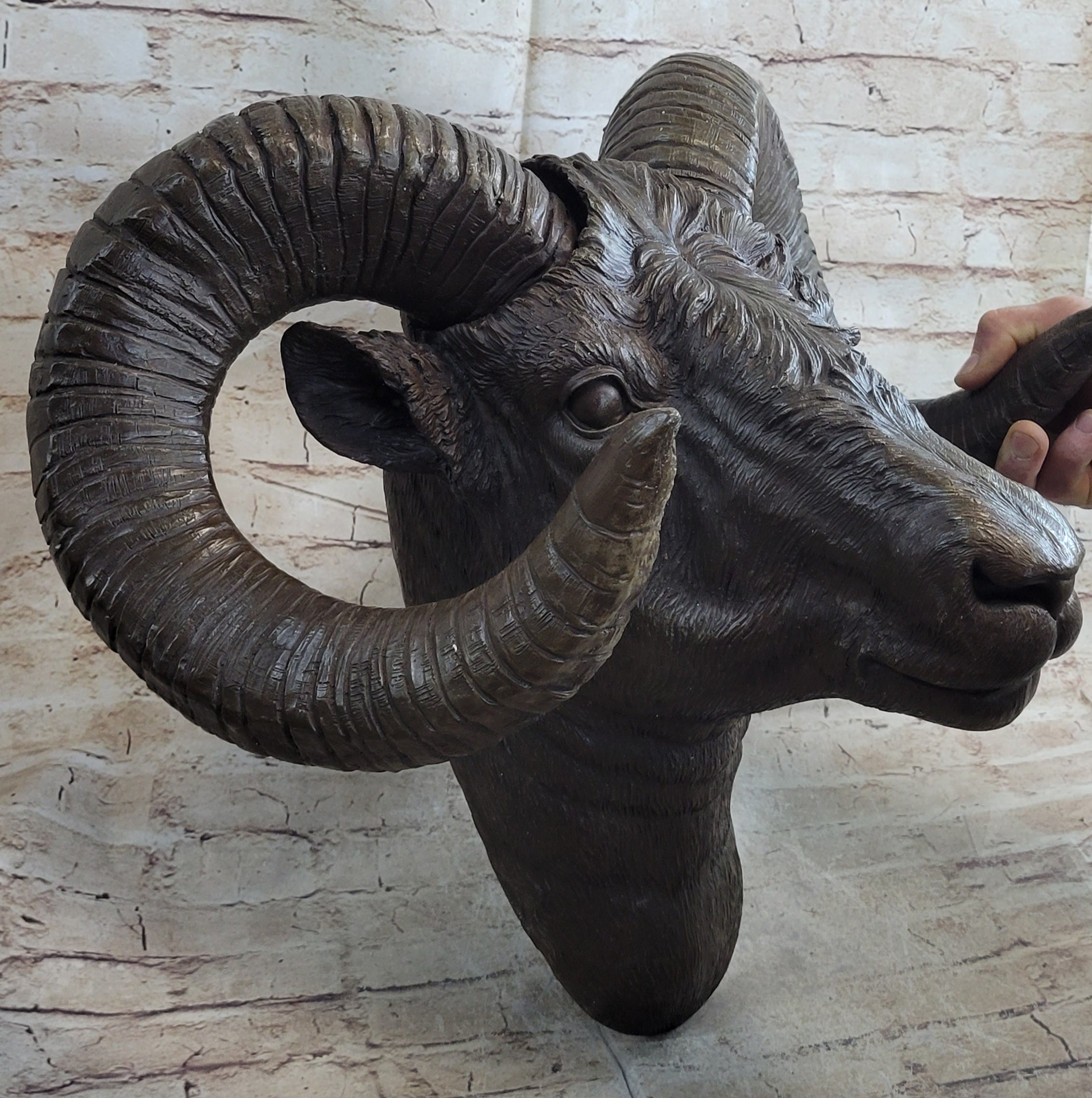 Incredible Detailed Large Wall Mount Rams Head Bronze Sculpture Figurine Figure