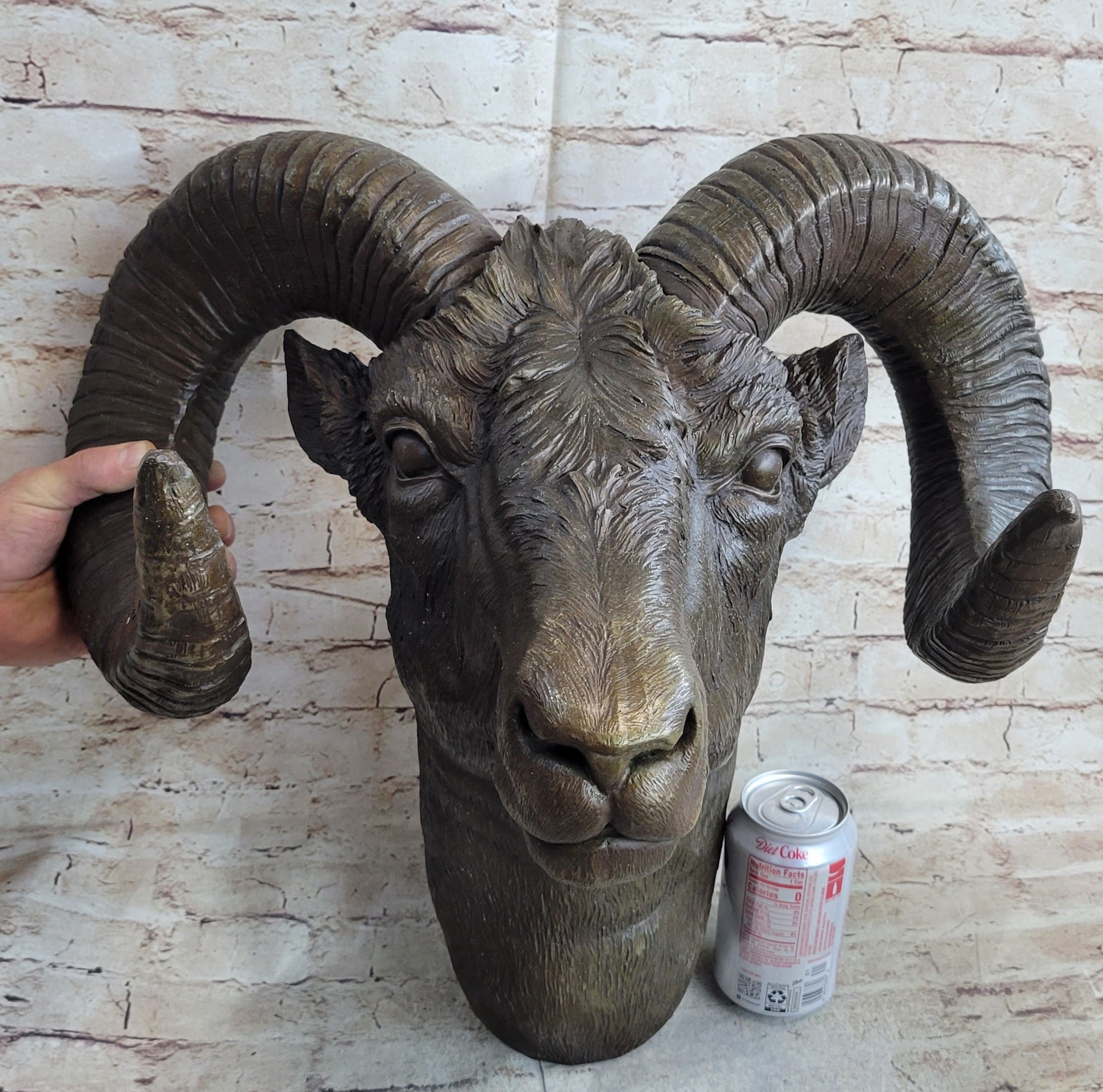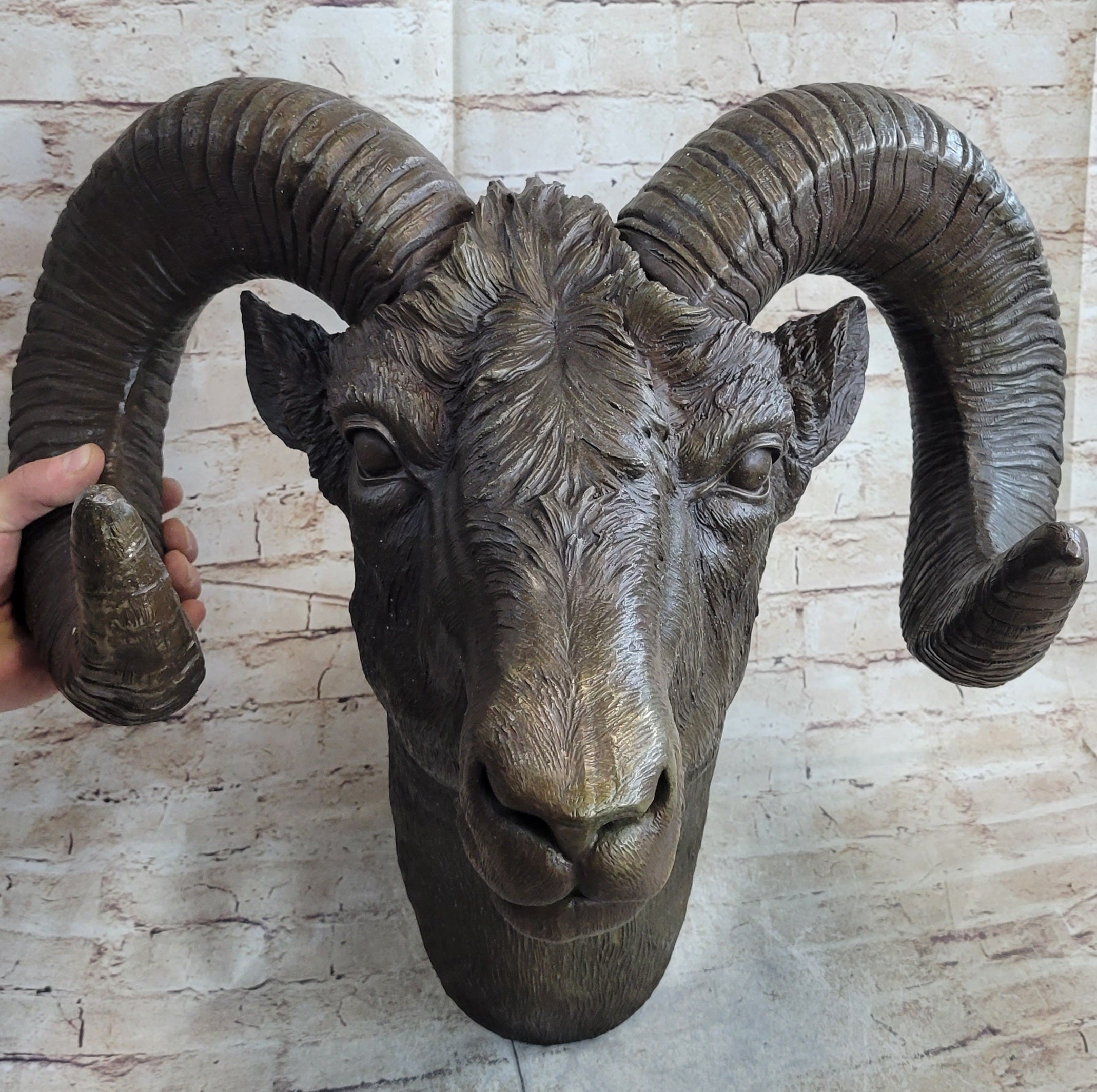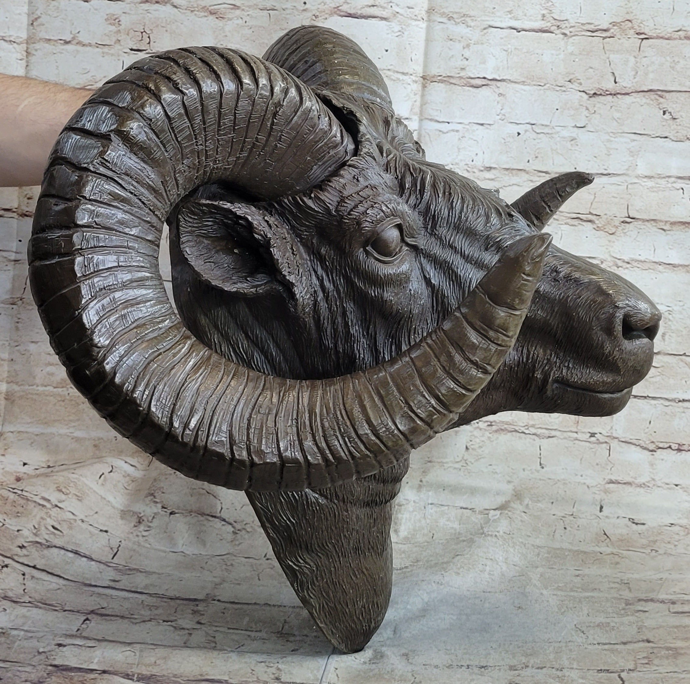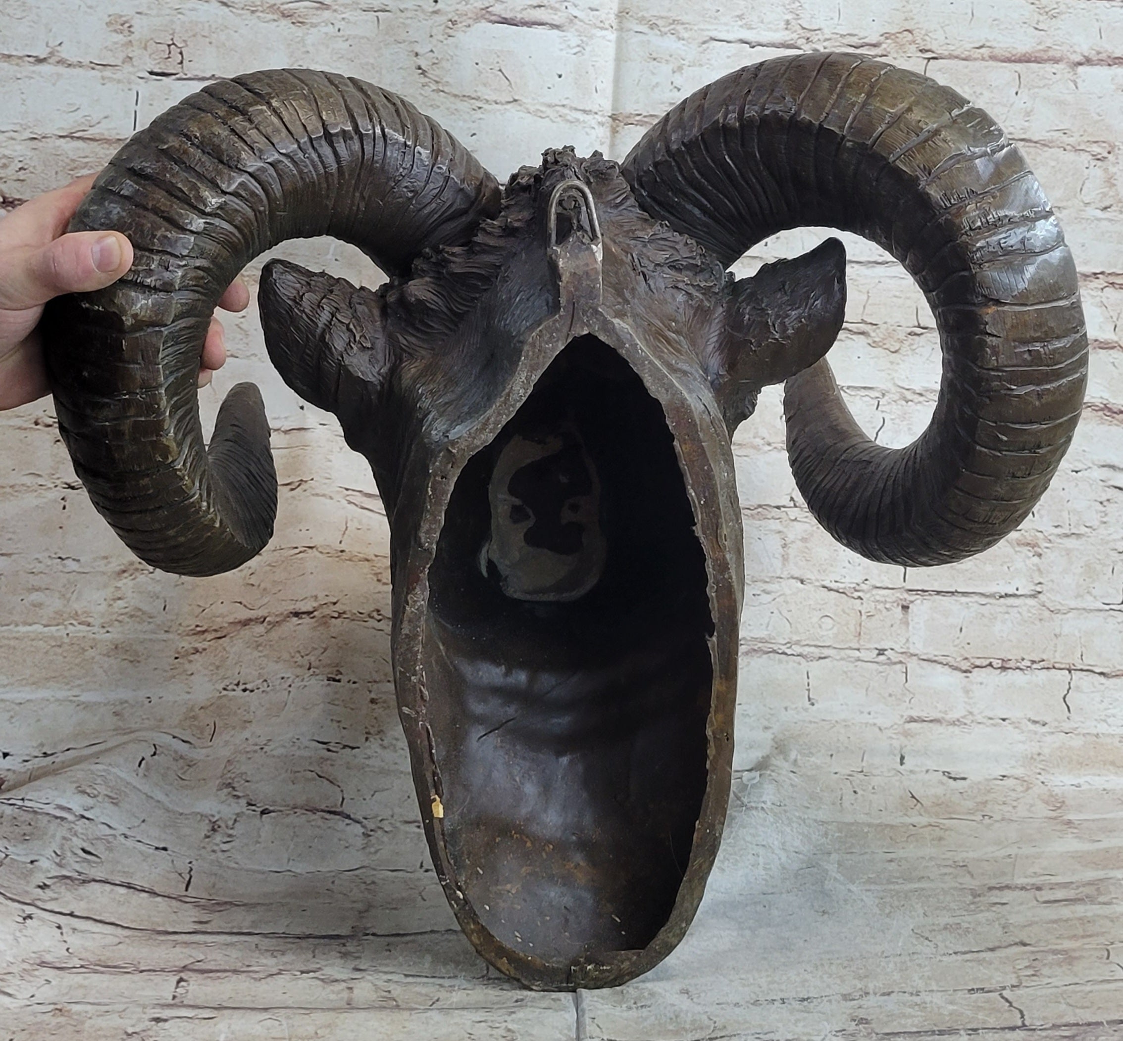 Incredible Detailed Large Wall Mount Rams Head Bronze Sculpture Figurine Figure