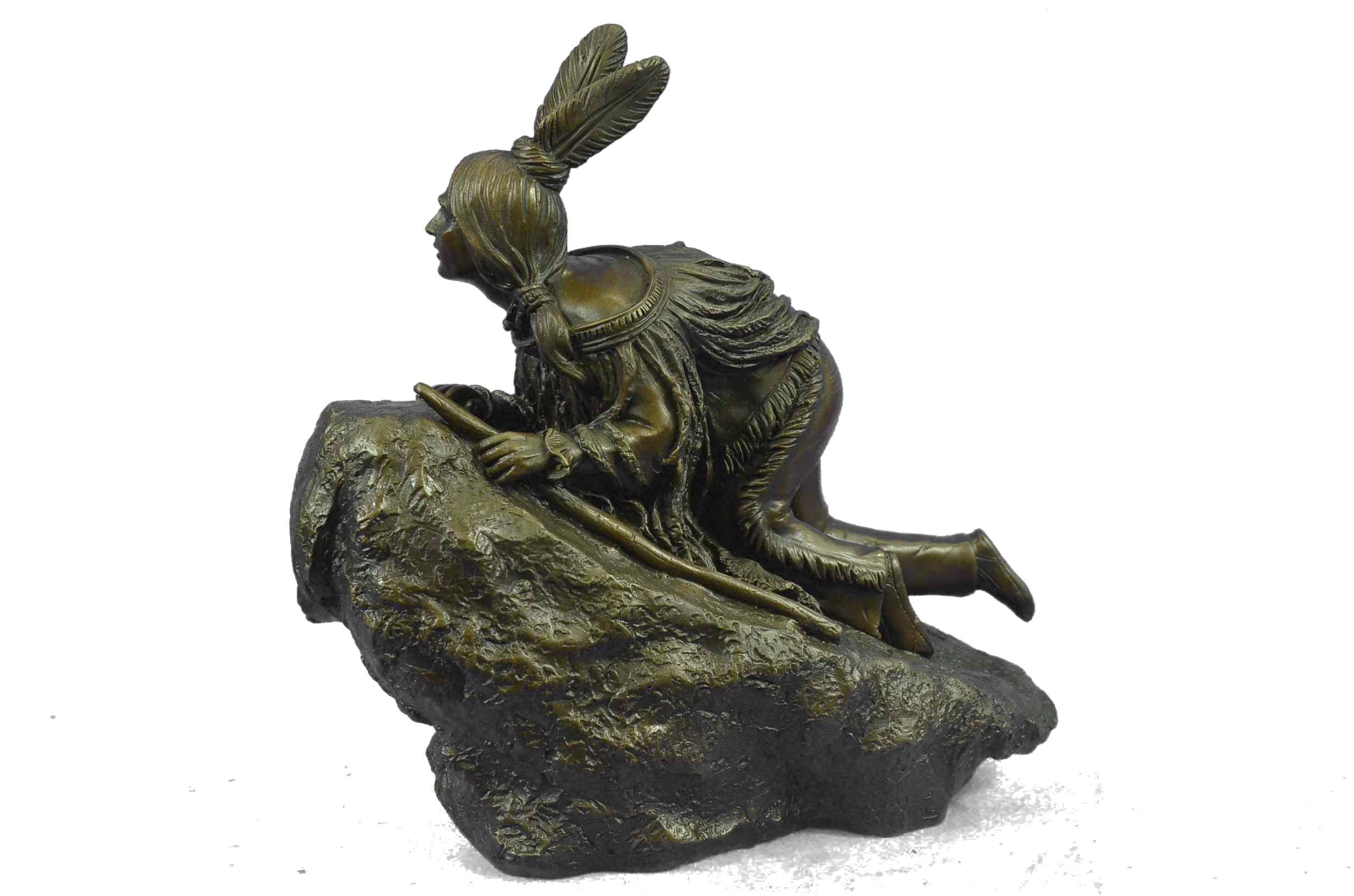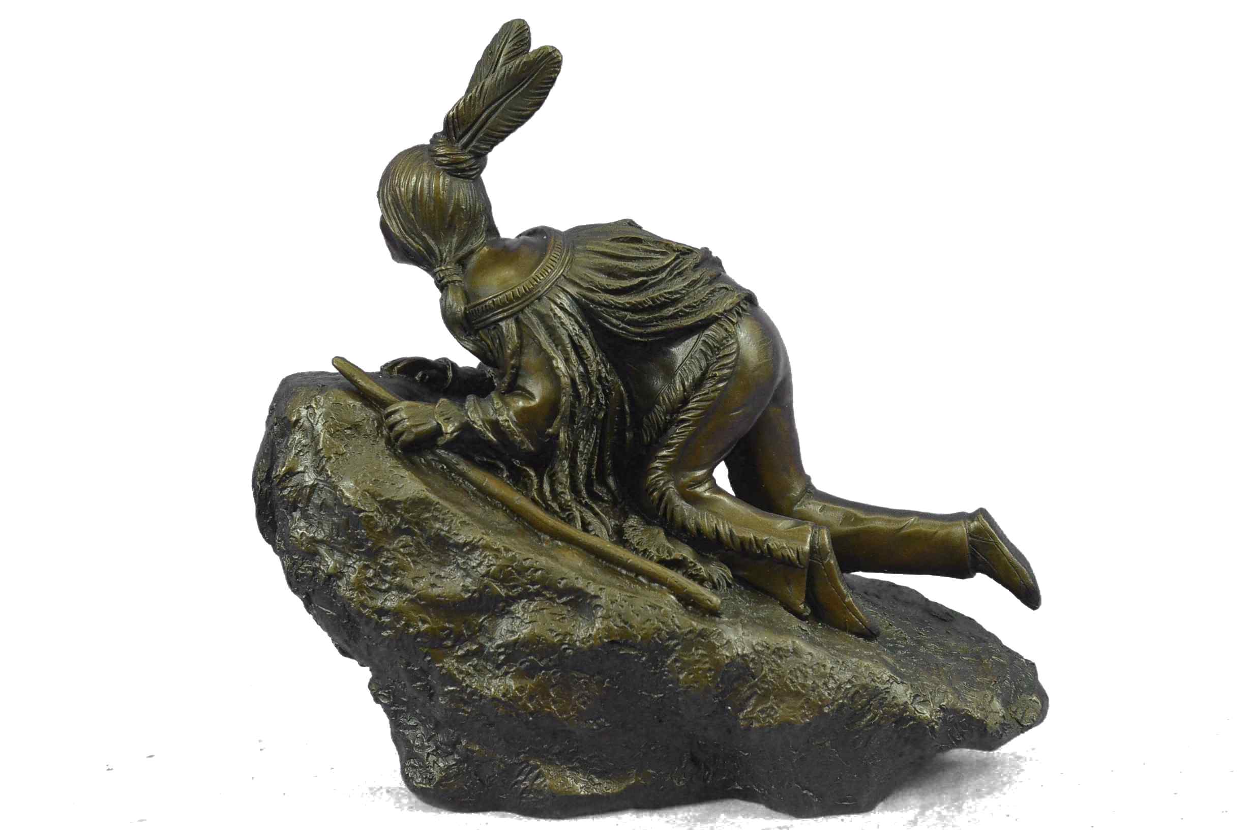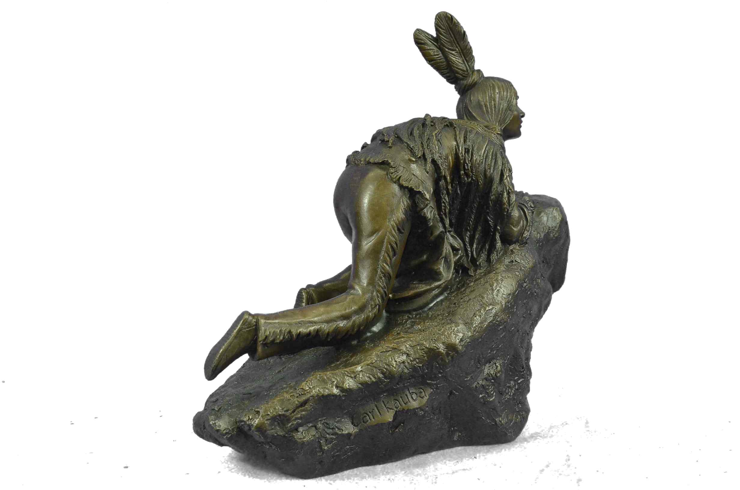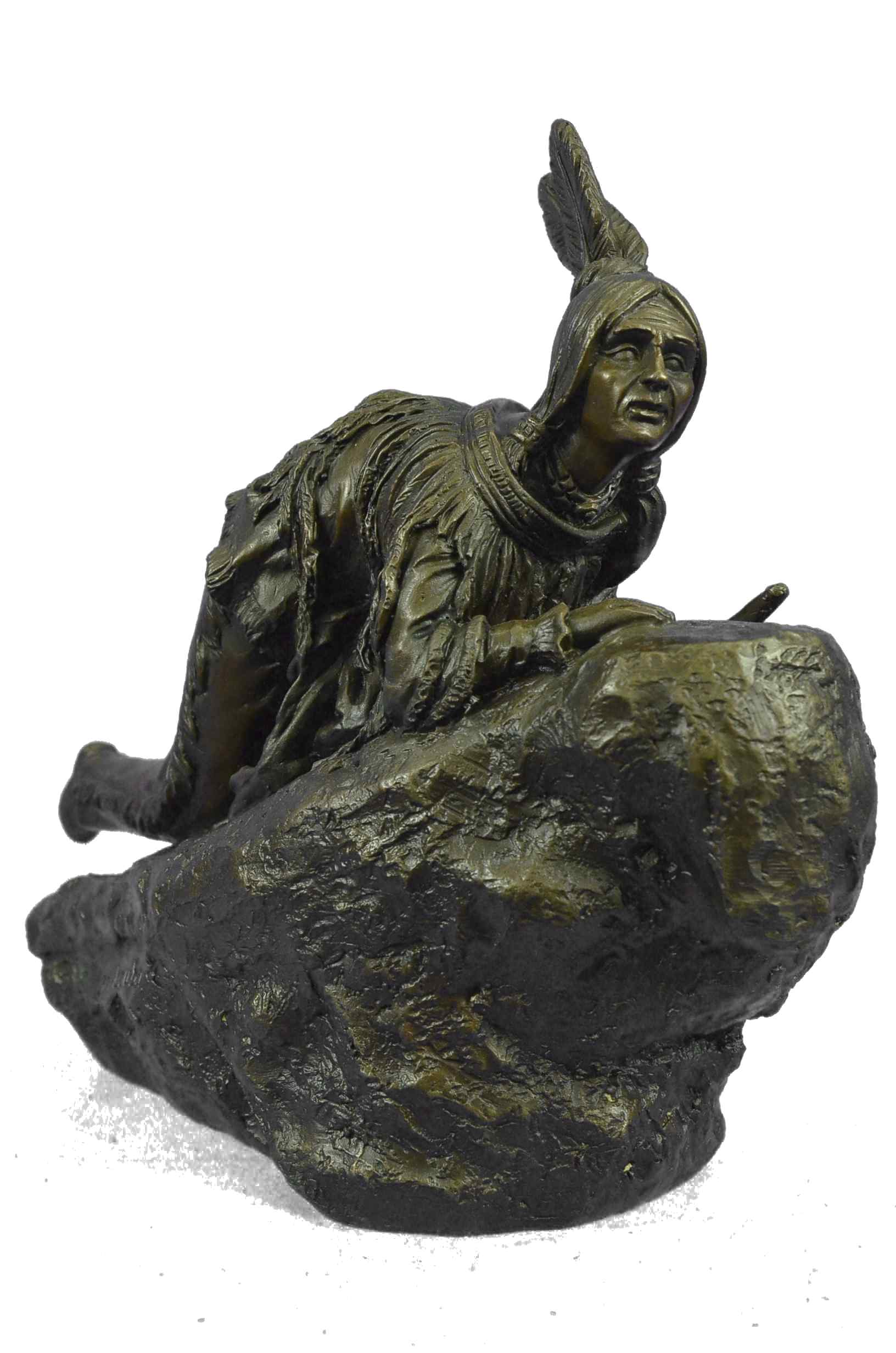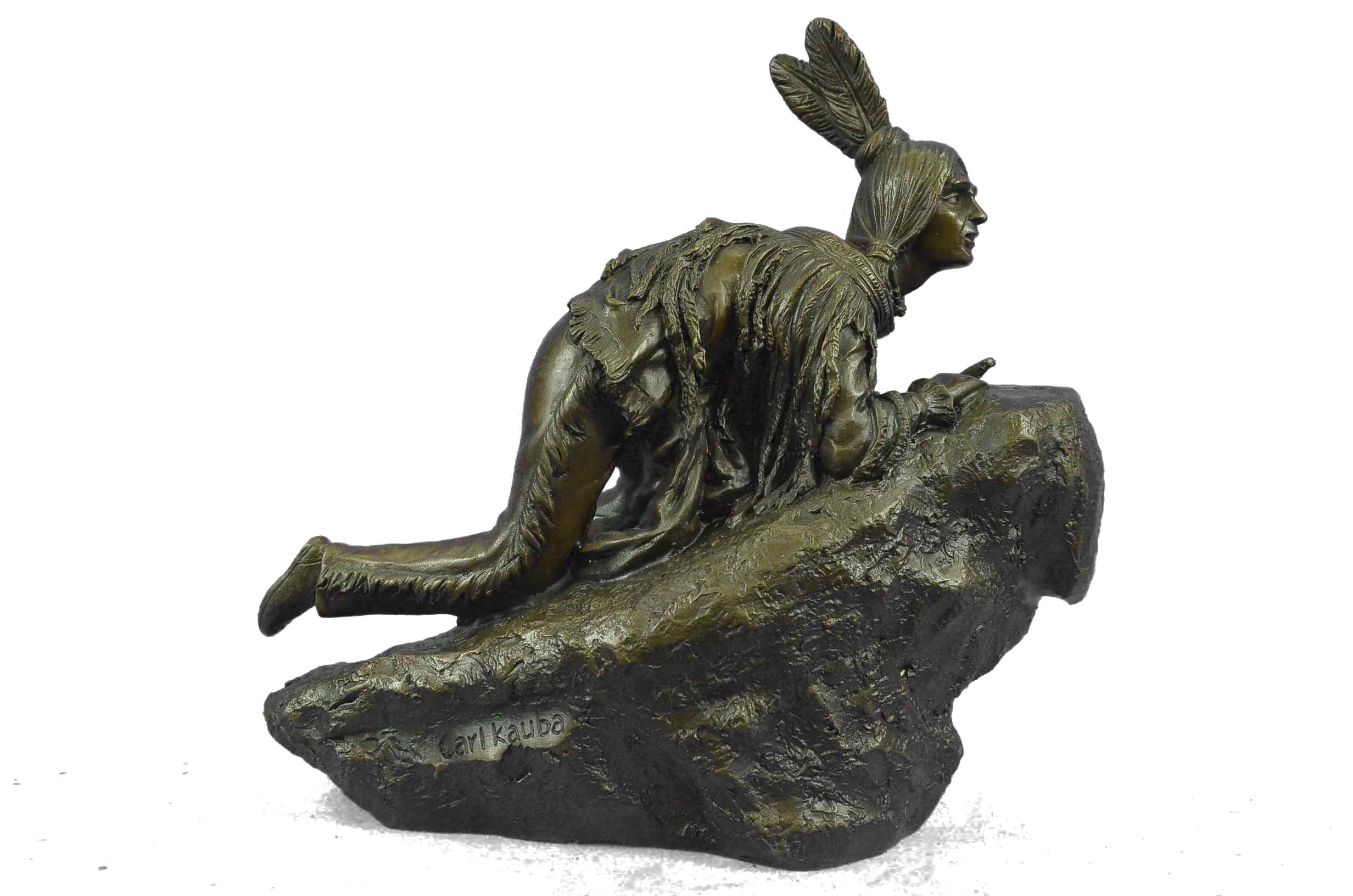 Indian Eyes Behind Rock Collectible Solid Bronze Sculpture Statue By Carl Kauba