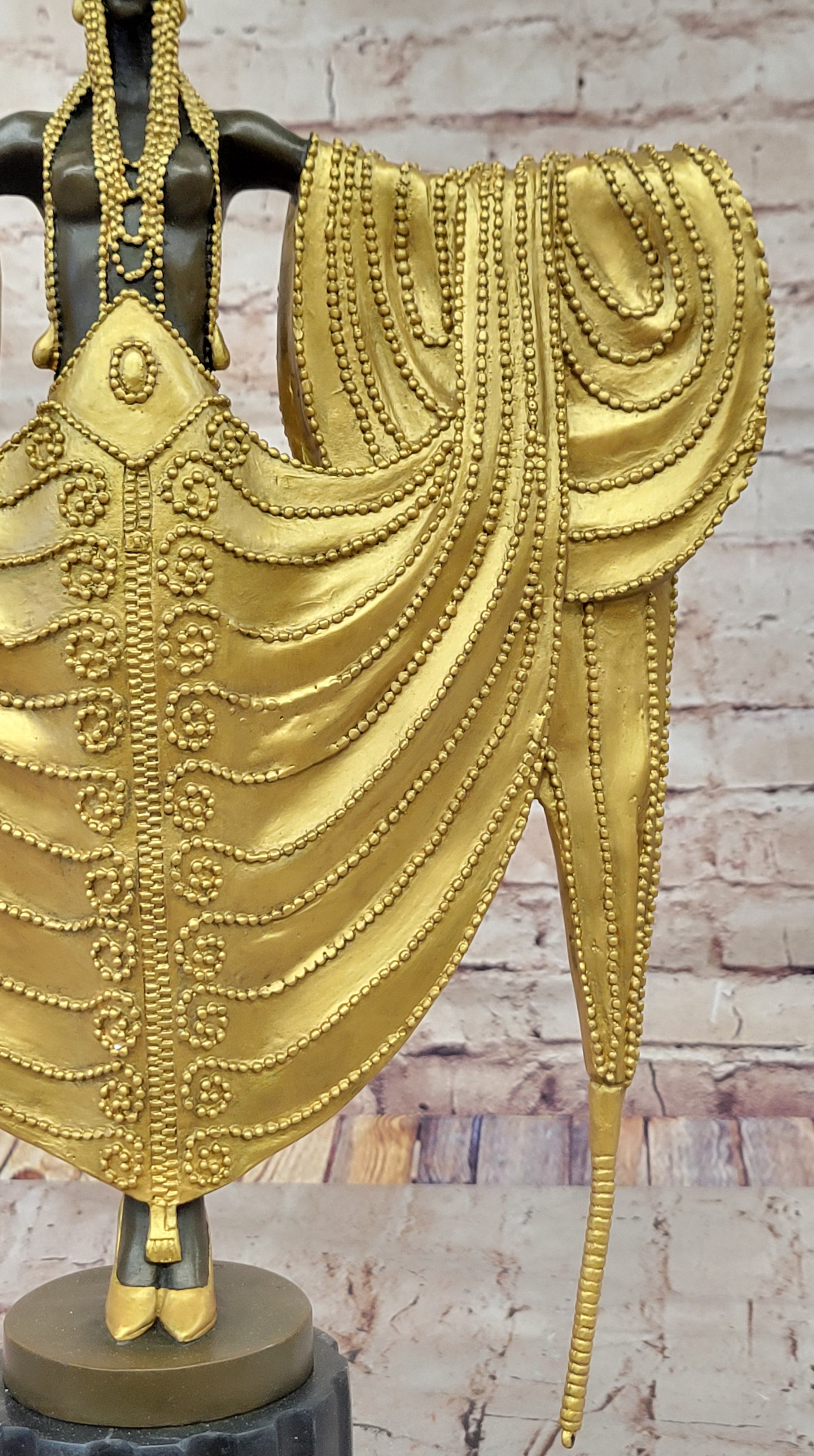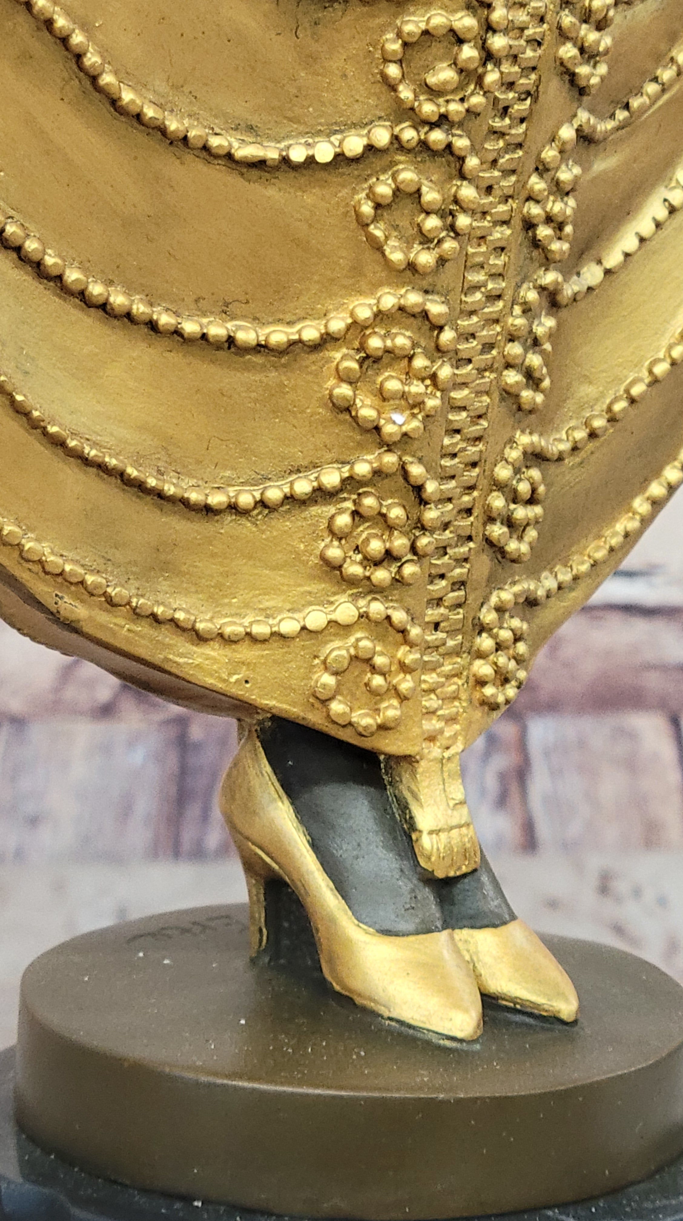 The Art Deco Bronze Sculpture “Golden Dancer” embodies the iconic elegance and timeless sophistication inspired by the legendary artist J. Erté. This exquisite piece captures the essence of Art Deco glamour, with the dancer's poised form and flowing attire exuding grace and movement. Her striking pose, accentuated by intricate detailing, reflects the luxurious and stylized aesthetic that defined the era.