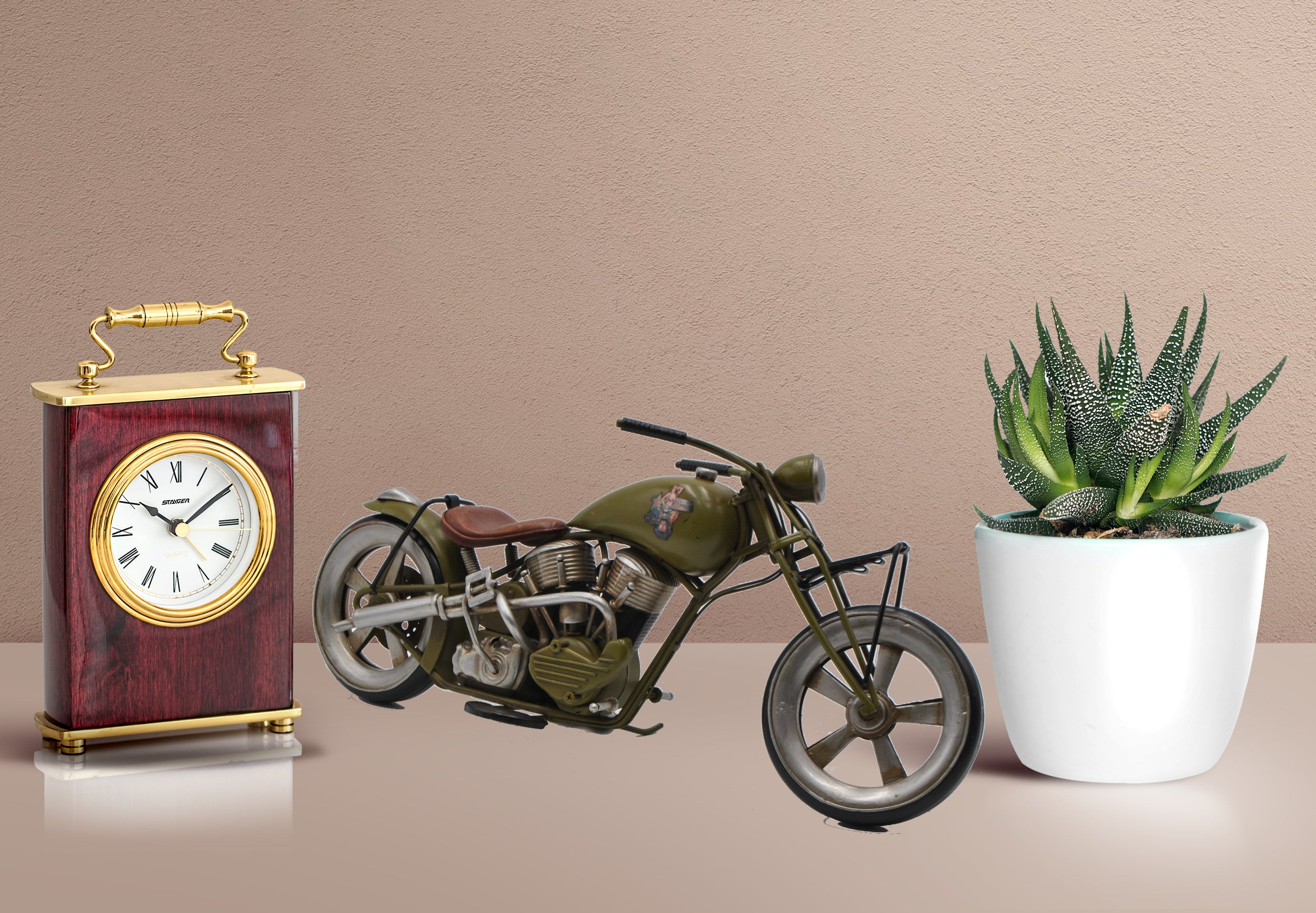 Decorate for any table, desk, or shelf in sporty fashion with Our Rustic Iron 1950'S HARLEY DAVIDSON CHOPPER METAL MOTORCYCLE Sculpture. Featuring a rustic iron frame, this charming vintage Motorcycle includes detailed craftsmanship . The Brown metal seat and handlebars are finished in natural colors. For more than 20 years, European Finery has been providing high quality sculpture, accessories, and decor for any room for its customers' homes. Based in New York area, We grown to become one of the largest importers and wholesalers of home decor and hand made sculptures in the country. Whether you're looking for accent Sculpture, wall decor, vintage Toys, or just about any outdoor lifestyle sculpture , We Became a proven and trustworthy name that has become synonymous with superiority.
