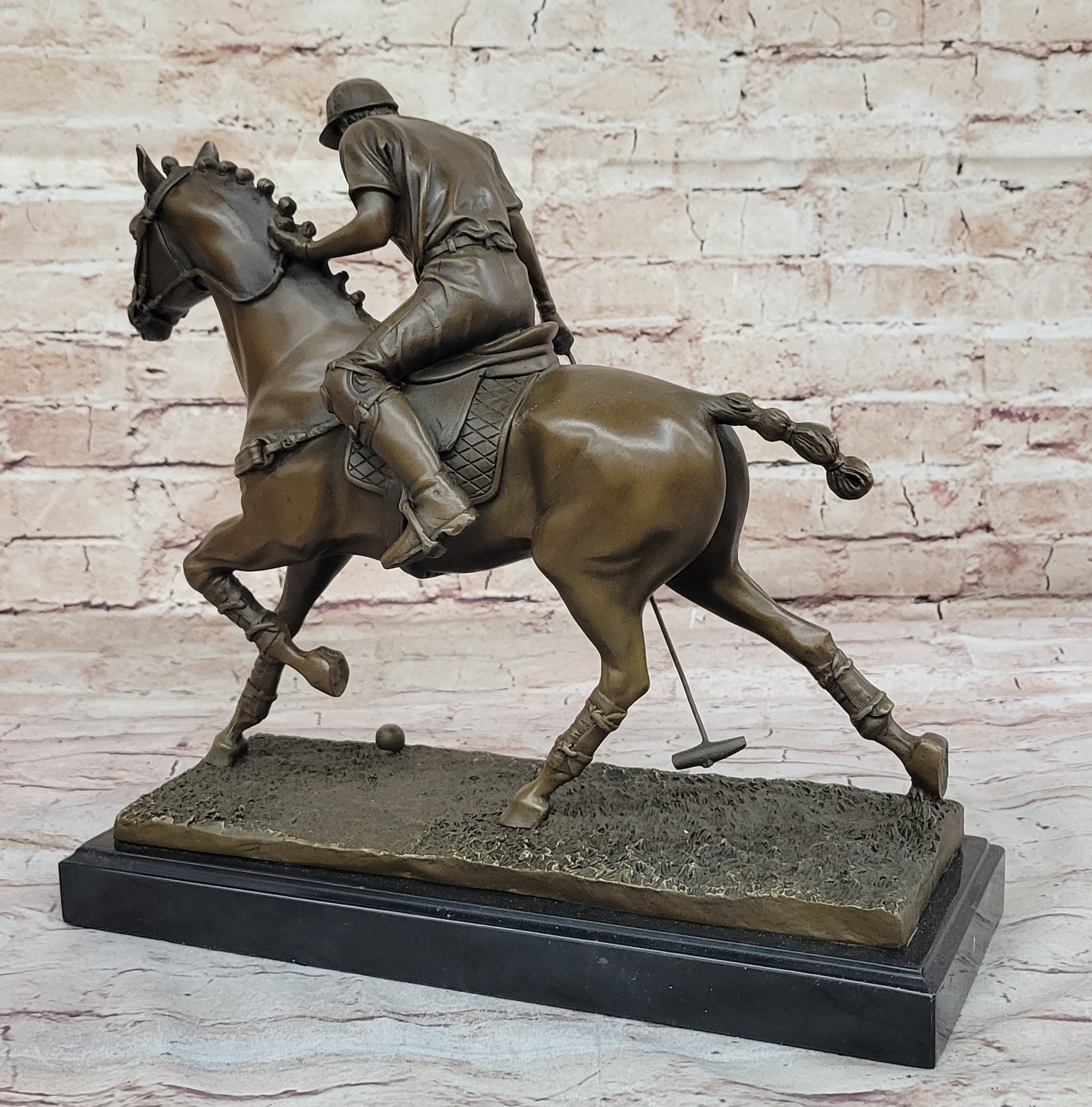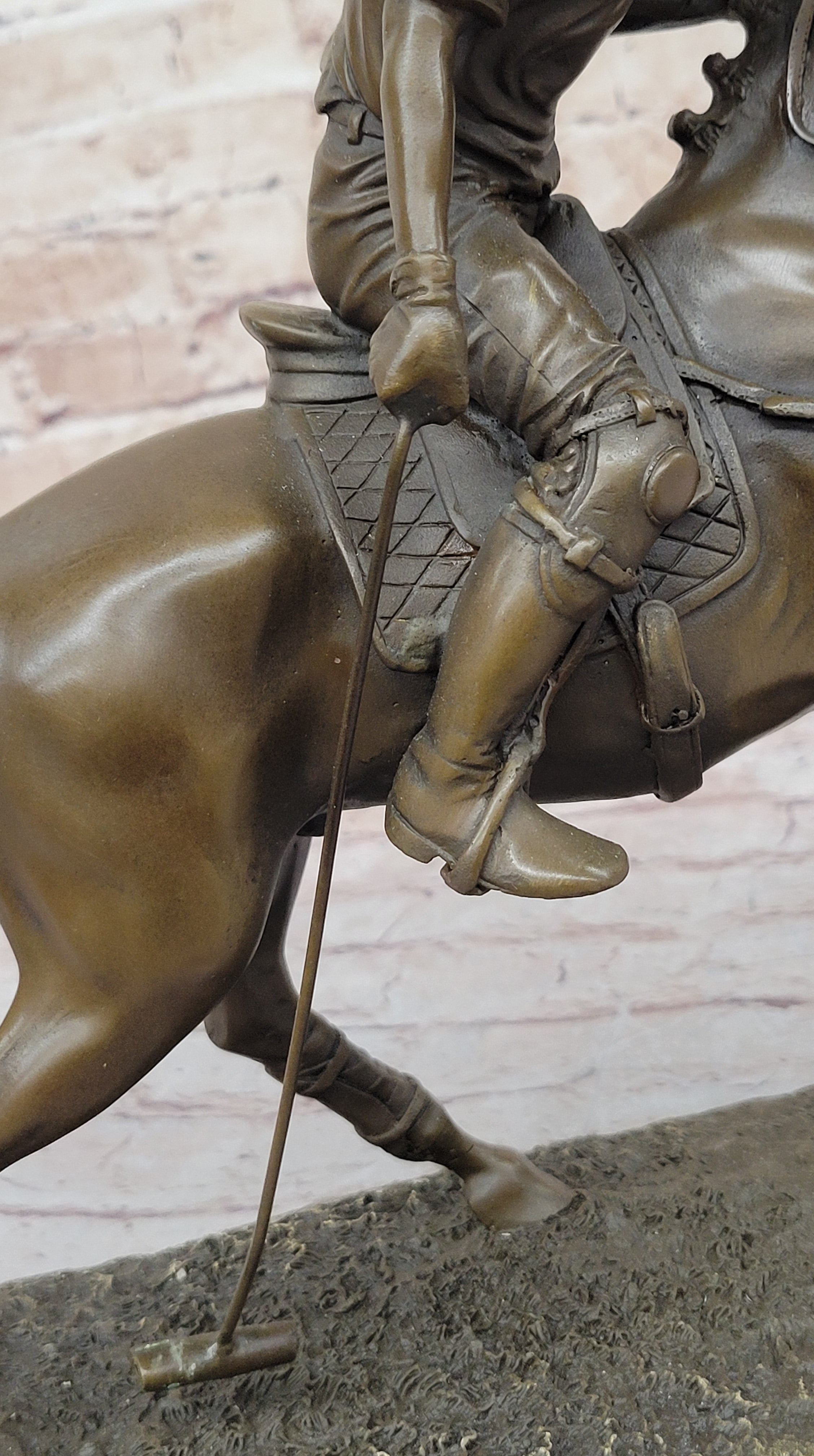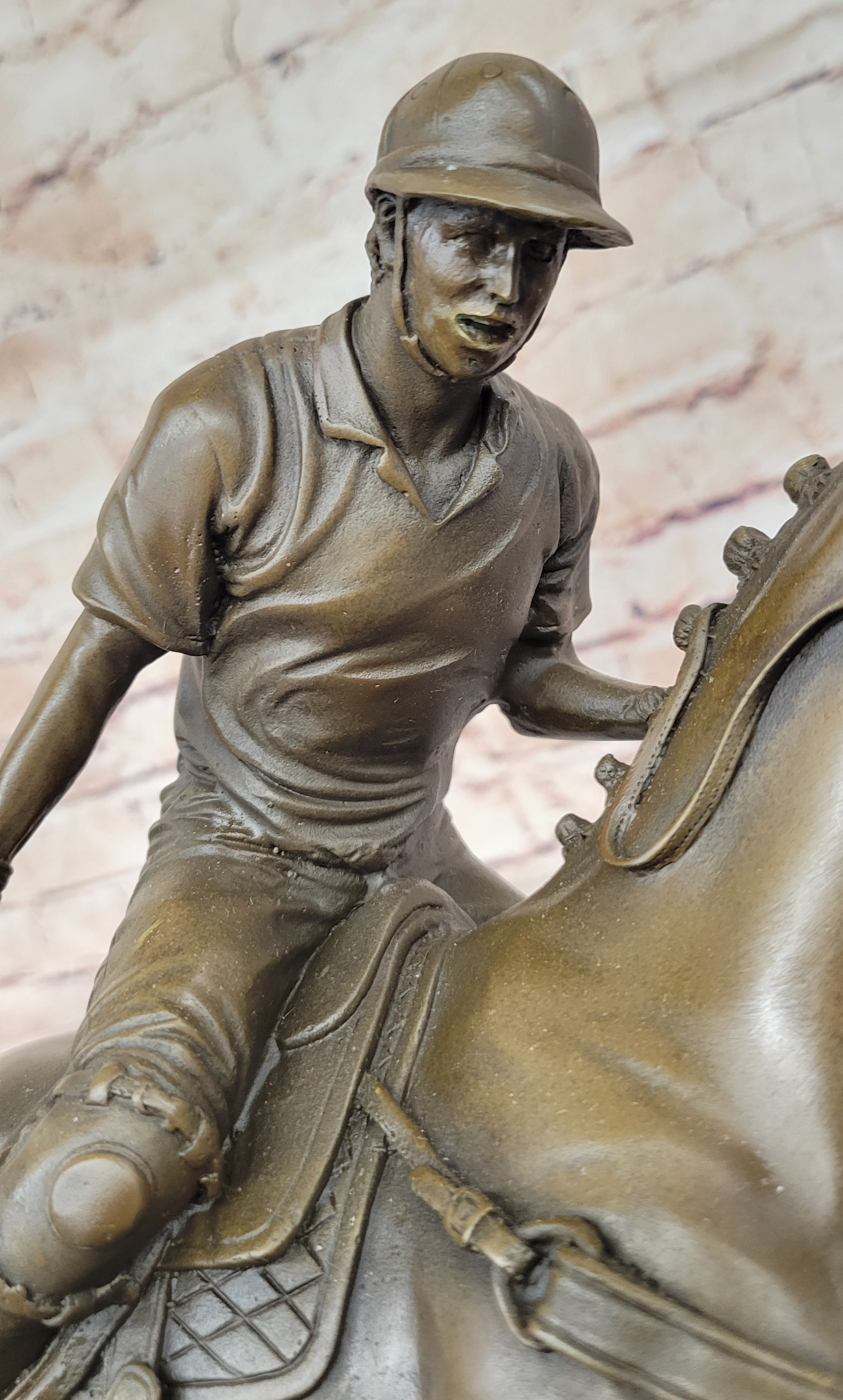 Jockey Polo Player on Horseback Bronze Sculpture Statue Equestrian Horse Lover Decor
