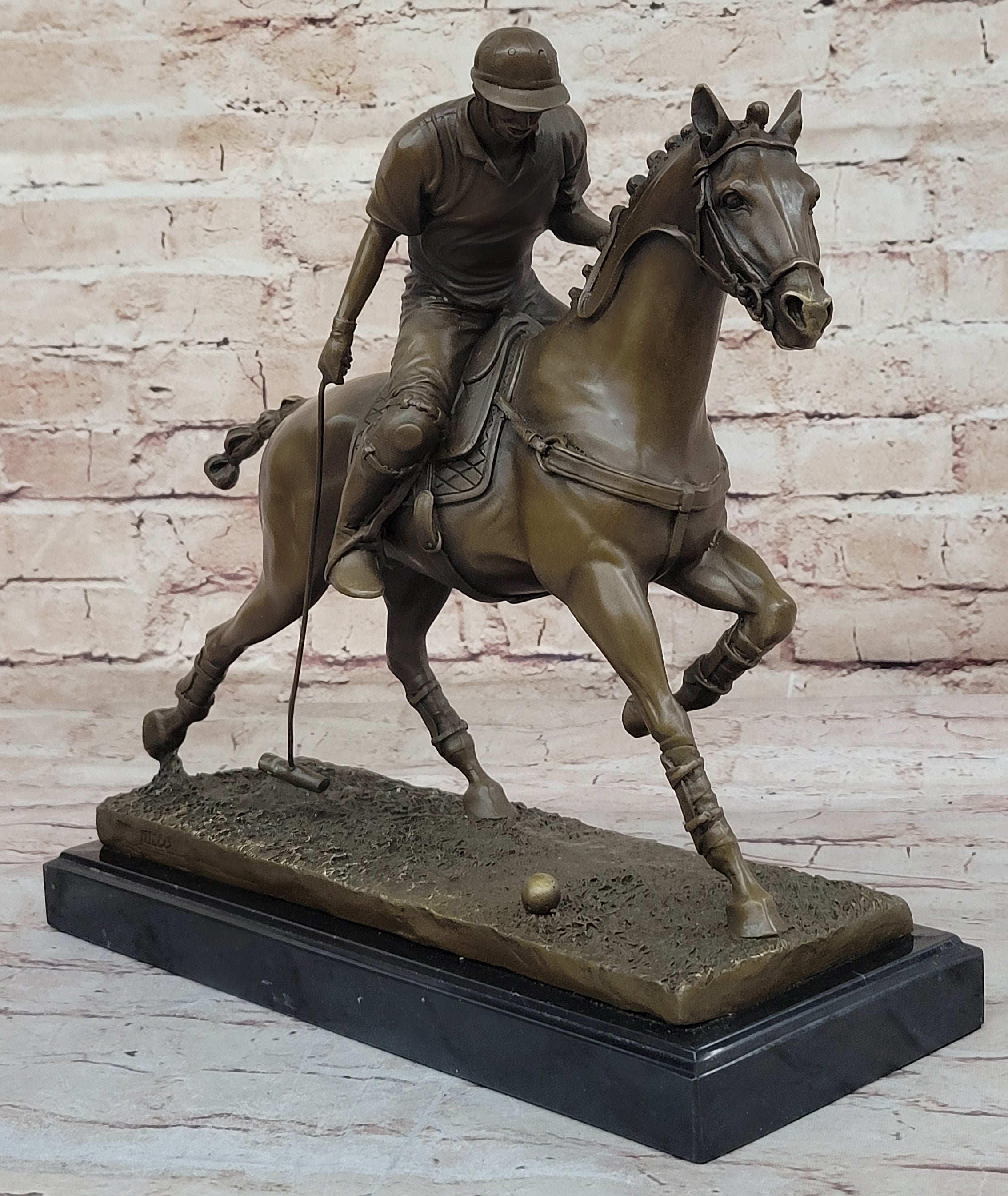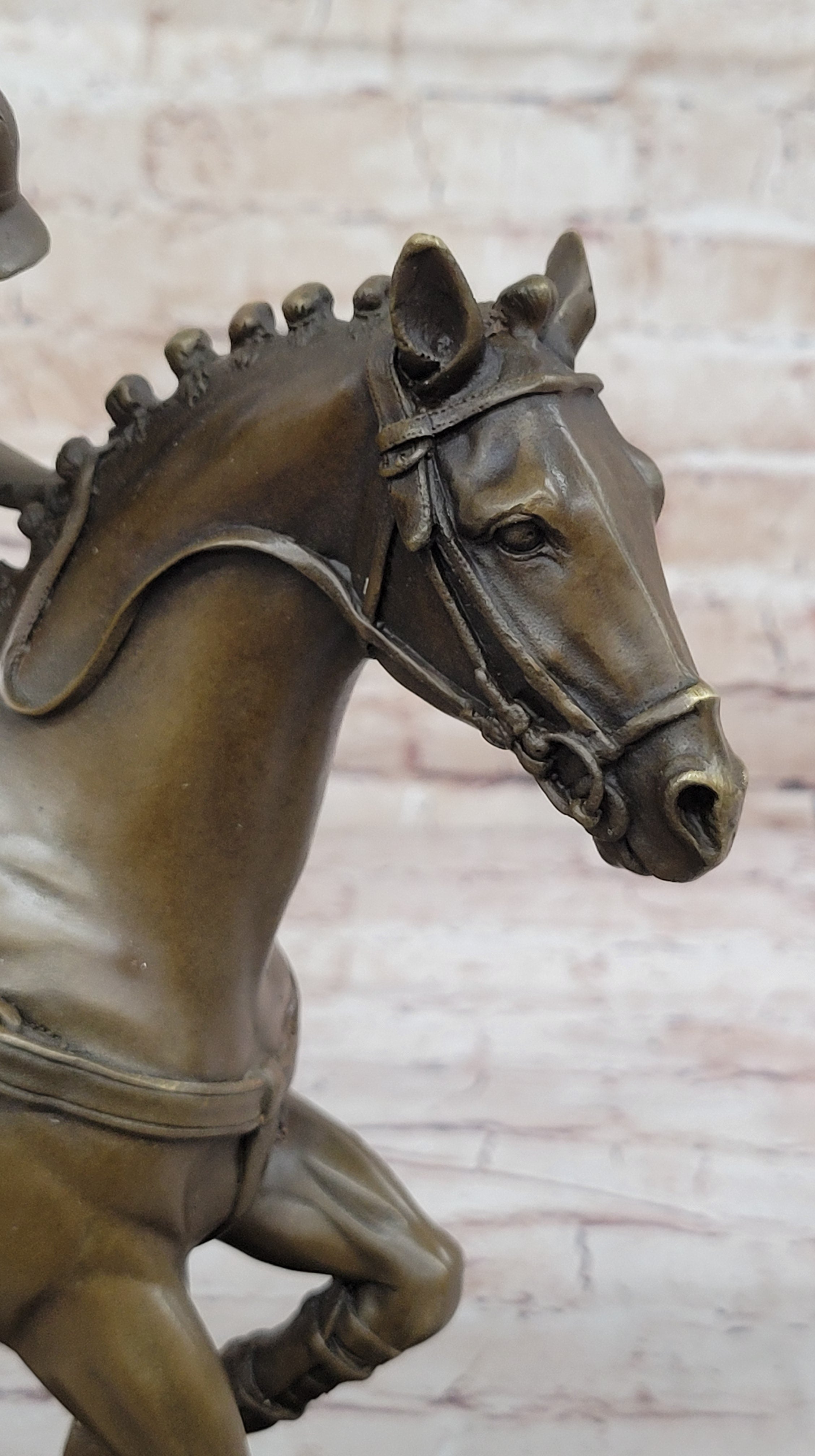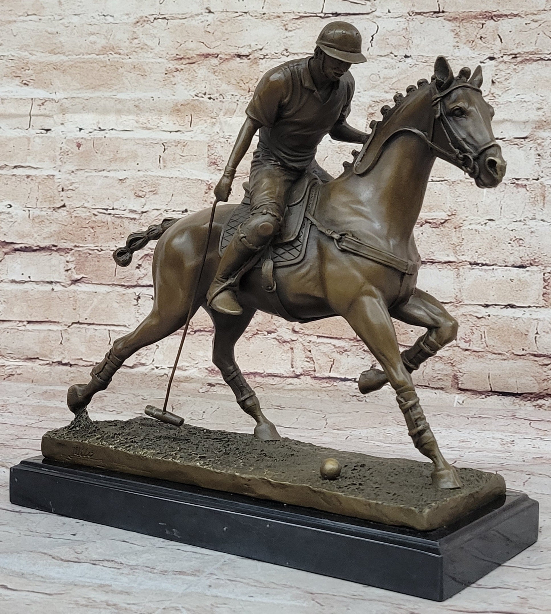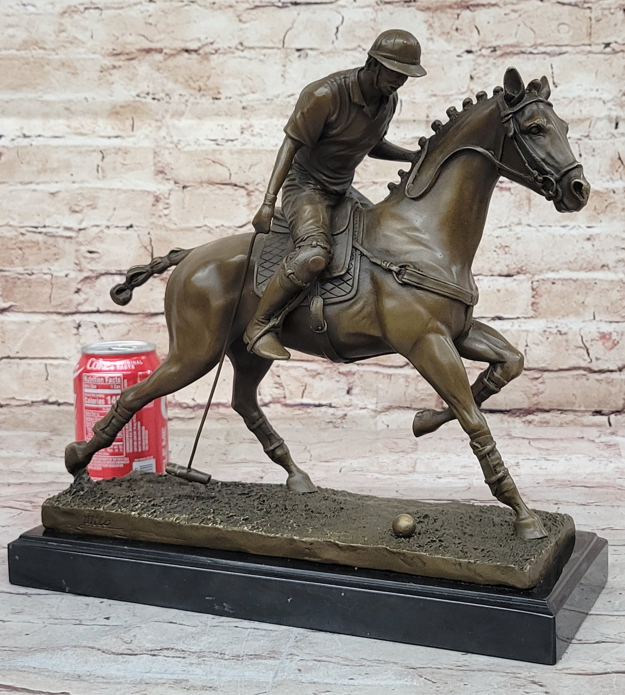 Jockey Polo Player on Horseback Bronze Sculpture Statue Equestrian Horse Lover Decor