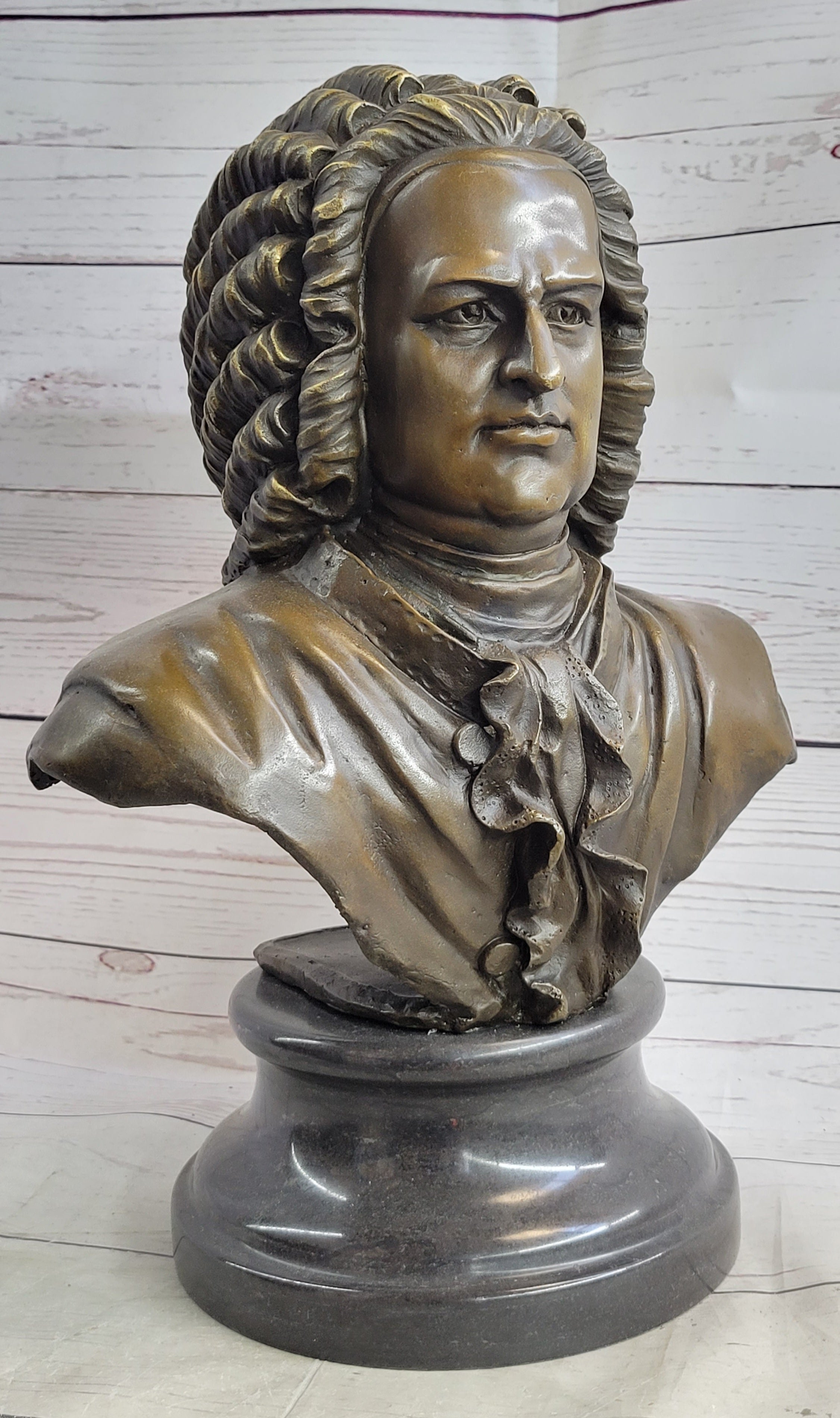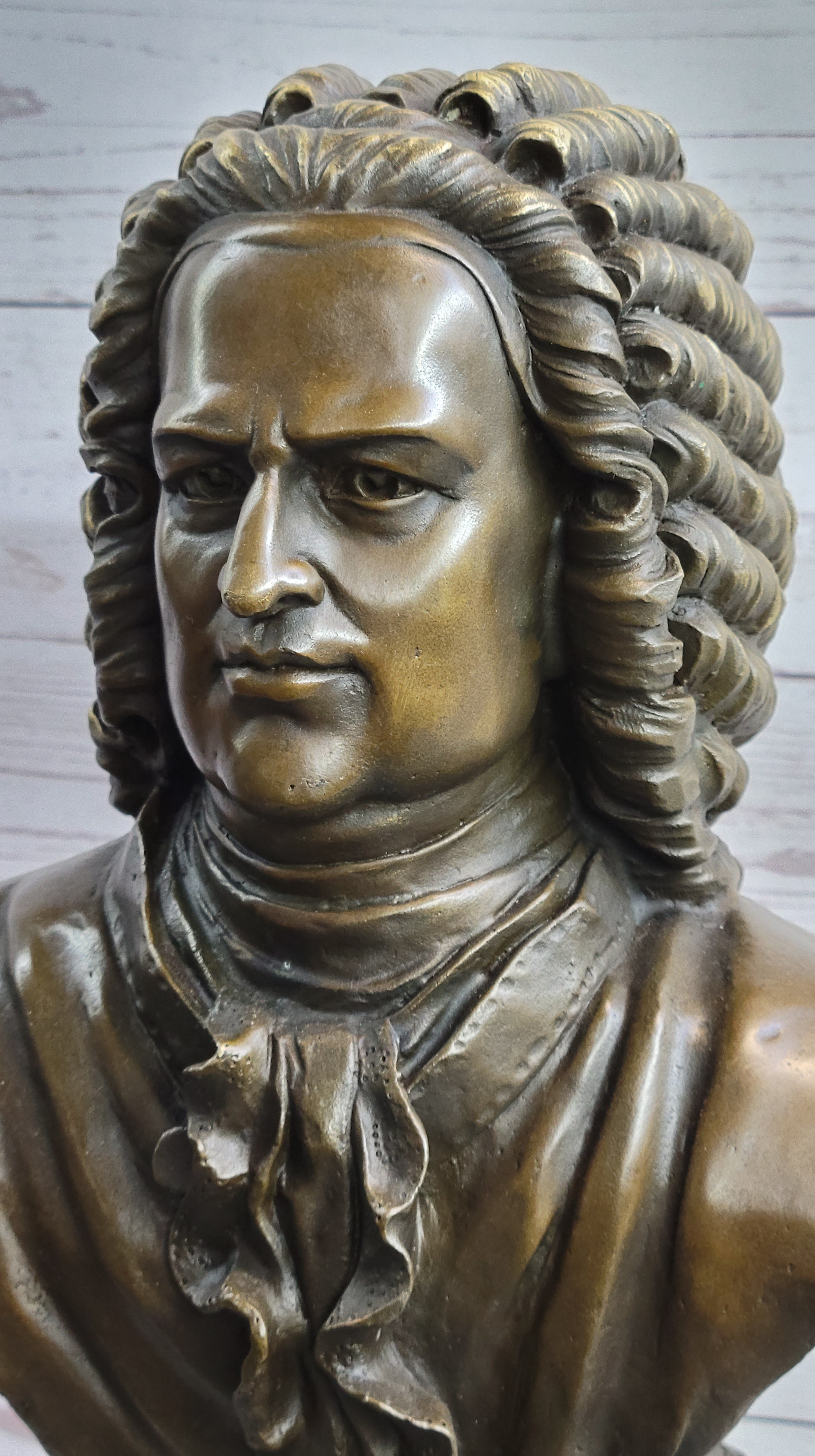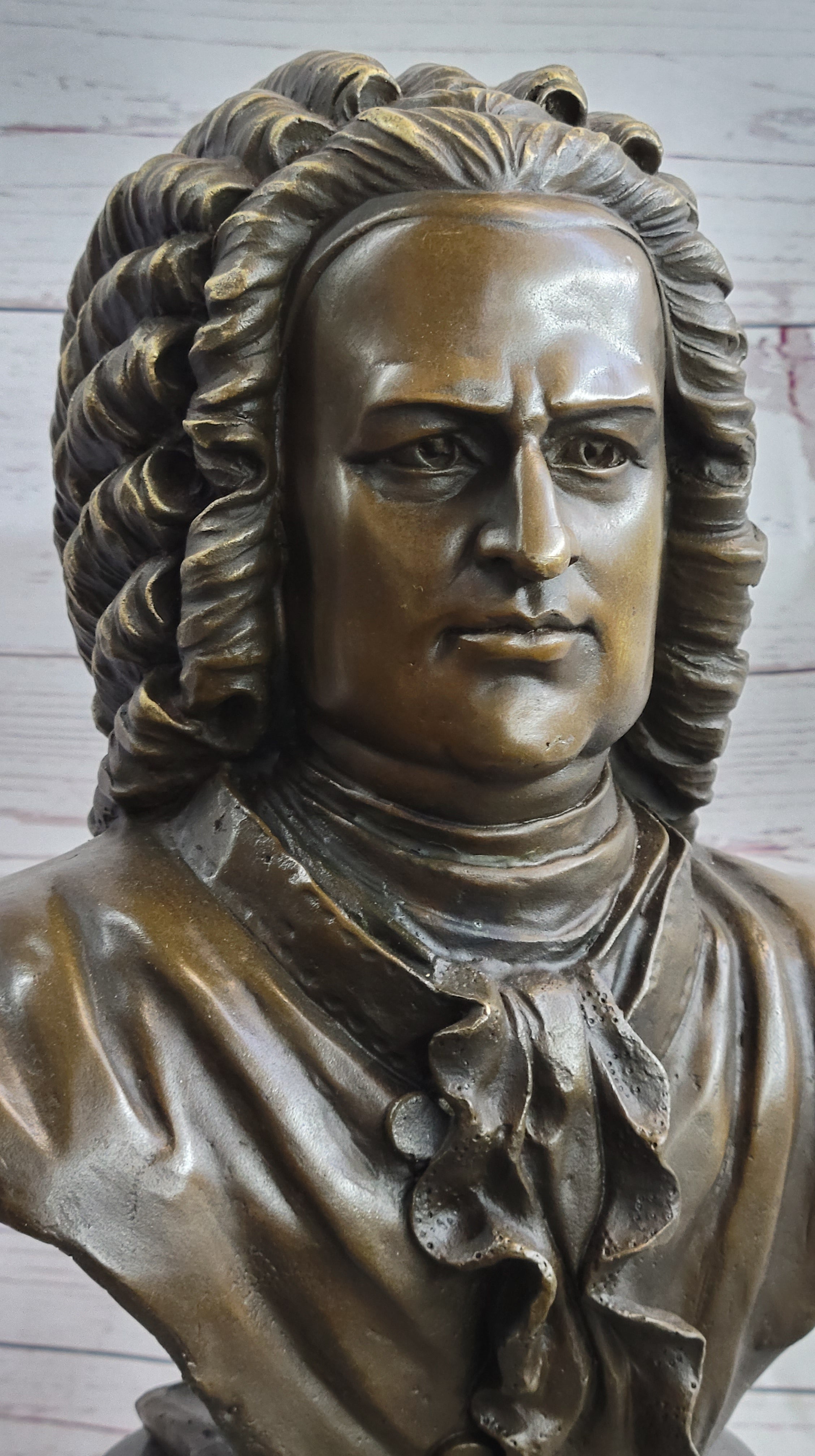 Johann Sebastian Bach Classical Composer Bronze Bust Sculpture Statue on Marble Base