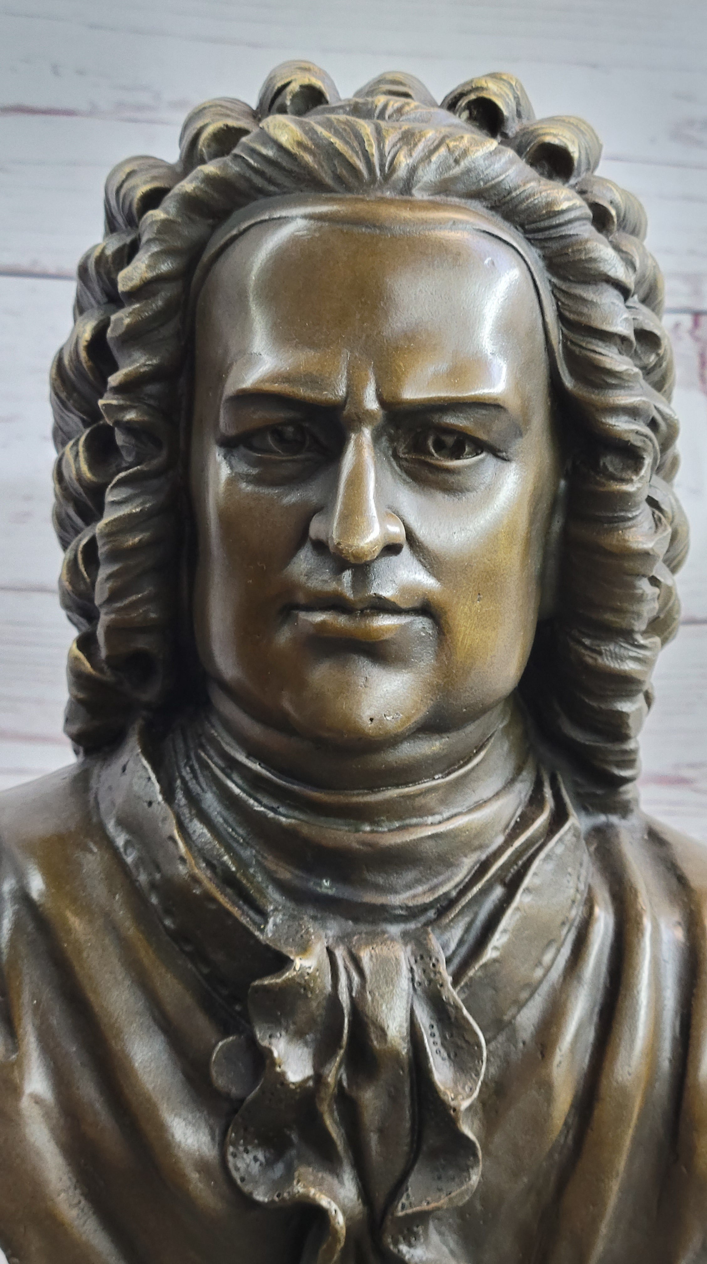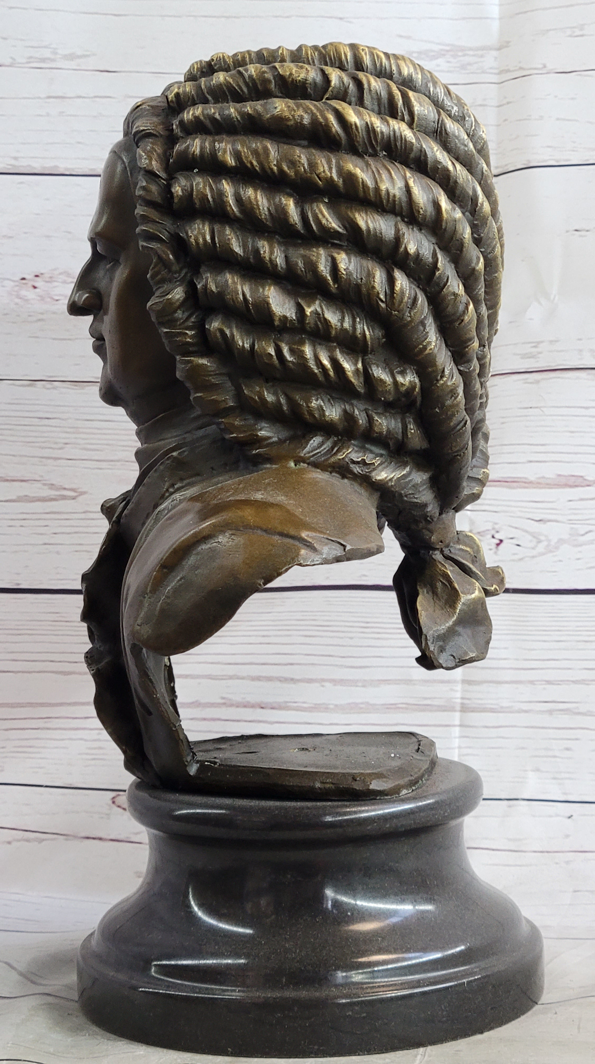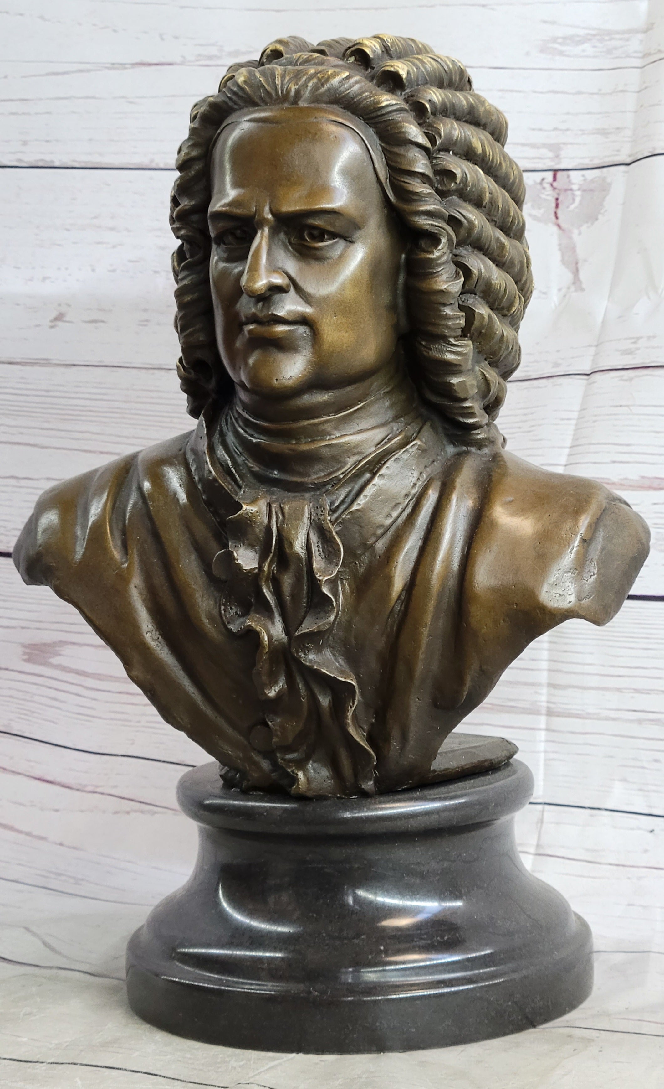 Johann Sebastian Bach Classical Composer Bronze Bust Sculpture Statue on Marble Base
