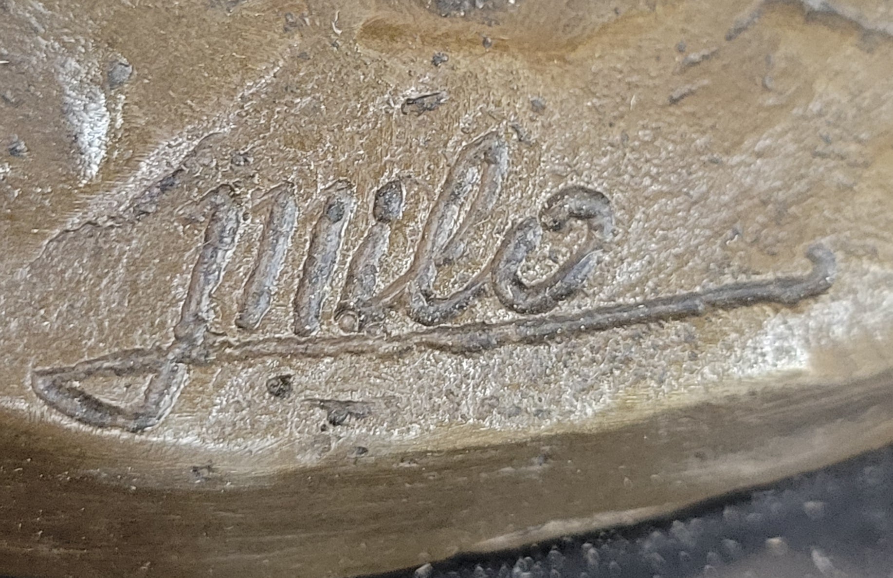 Resting proudly on a sleek black marble base, this sculpture is more than a mere representation; it is a harmonious fusion of art and nature. Milo's signature adorns this original artwork, certifying its authenticity and marking it as a unique collector's piece. The brown patina applied to the bronze enhances the natural beauty of the Kudu Antelope, adding depth and warmth to every curve and contour.