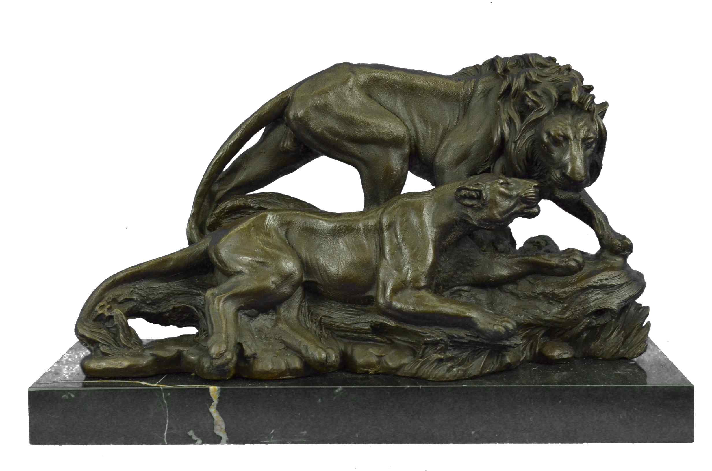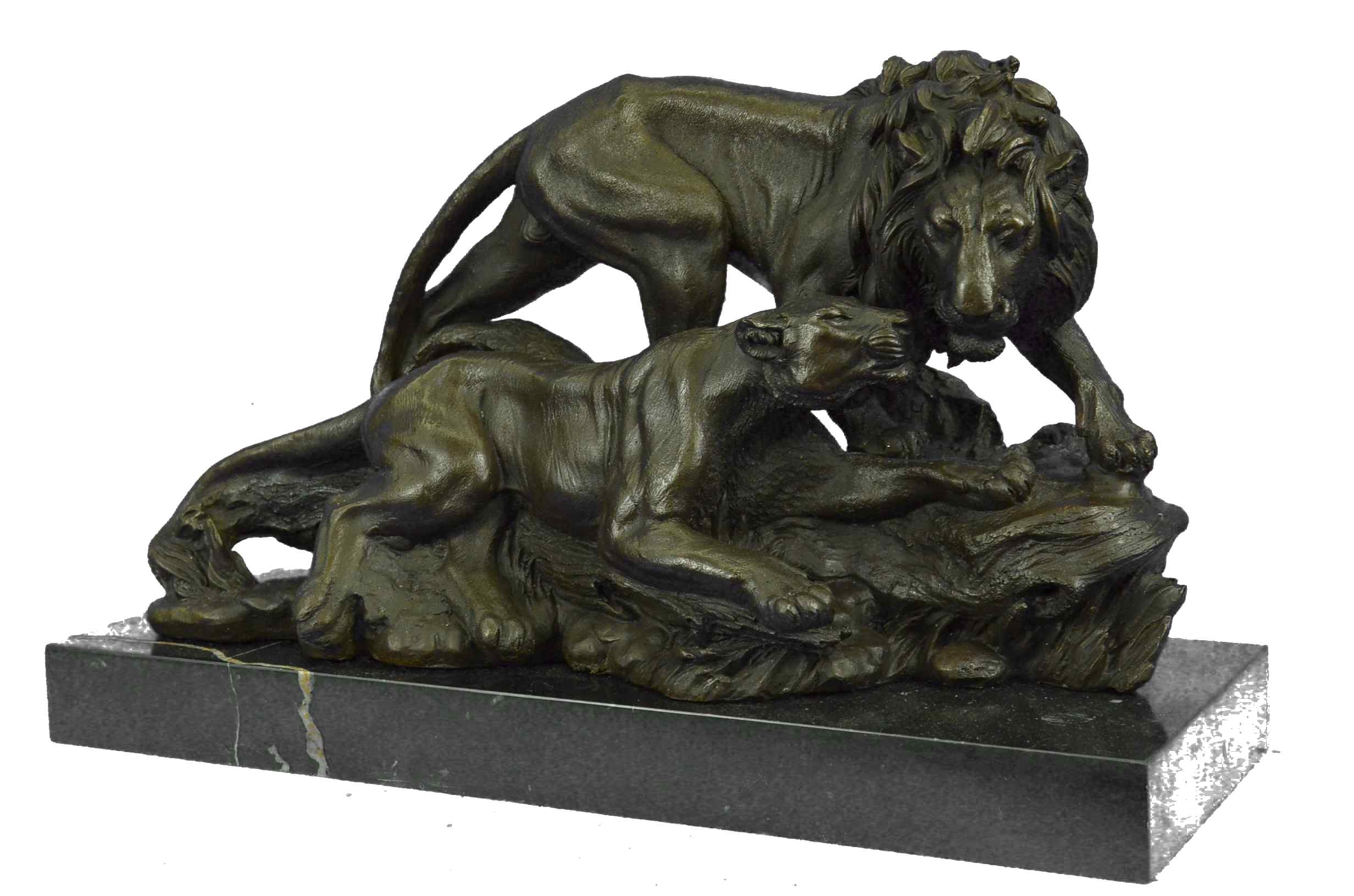 Large 30 LBS Male and Female African Lion King Jungle Bronze Sculpture Statue