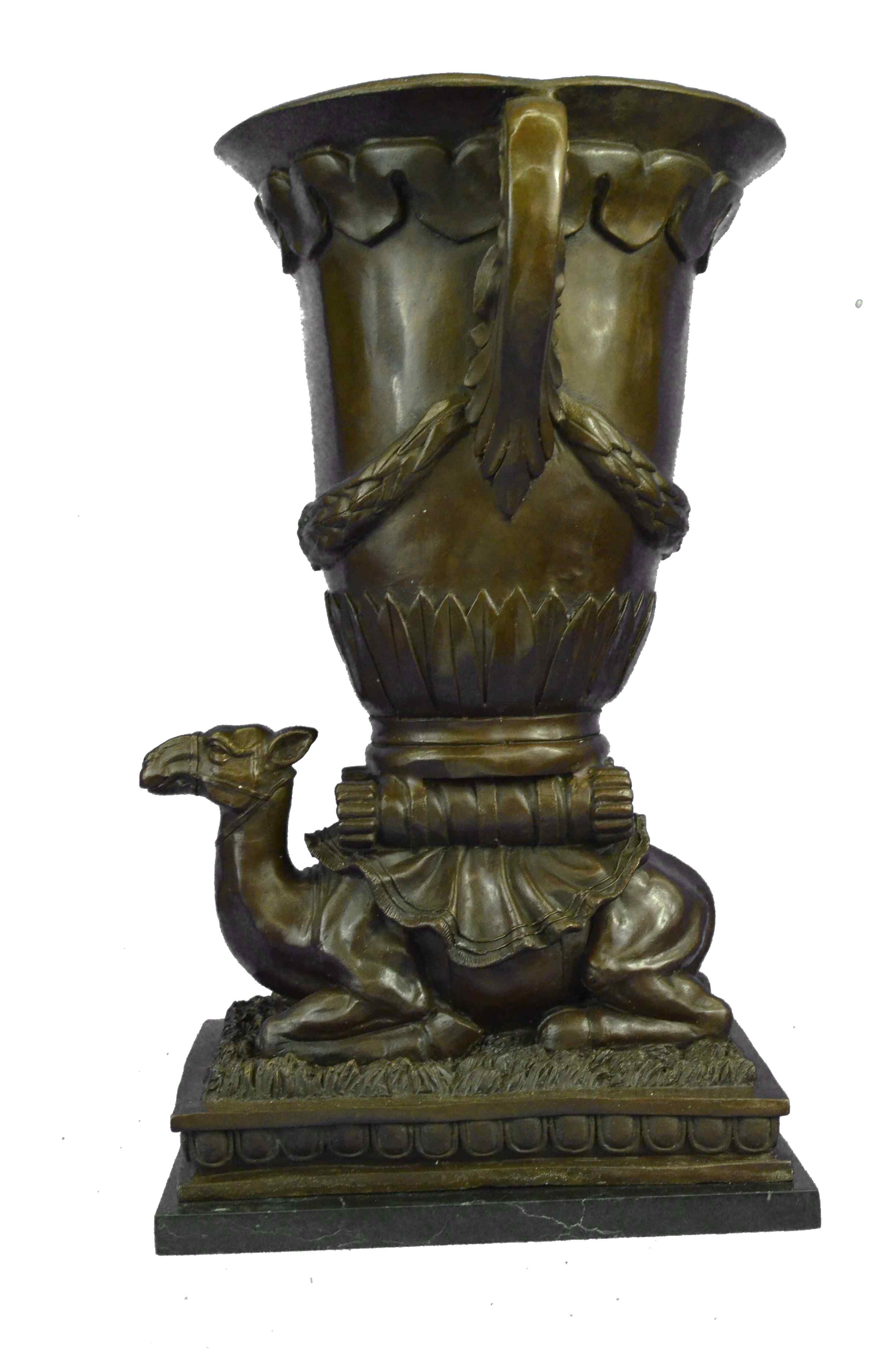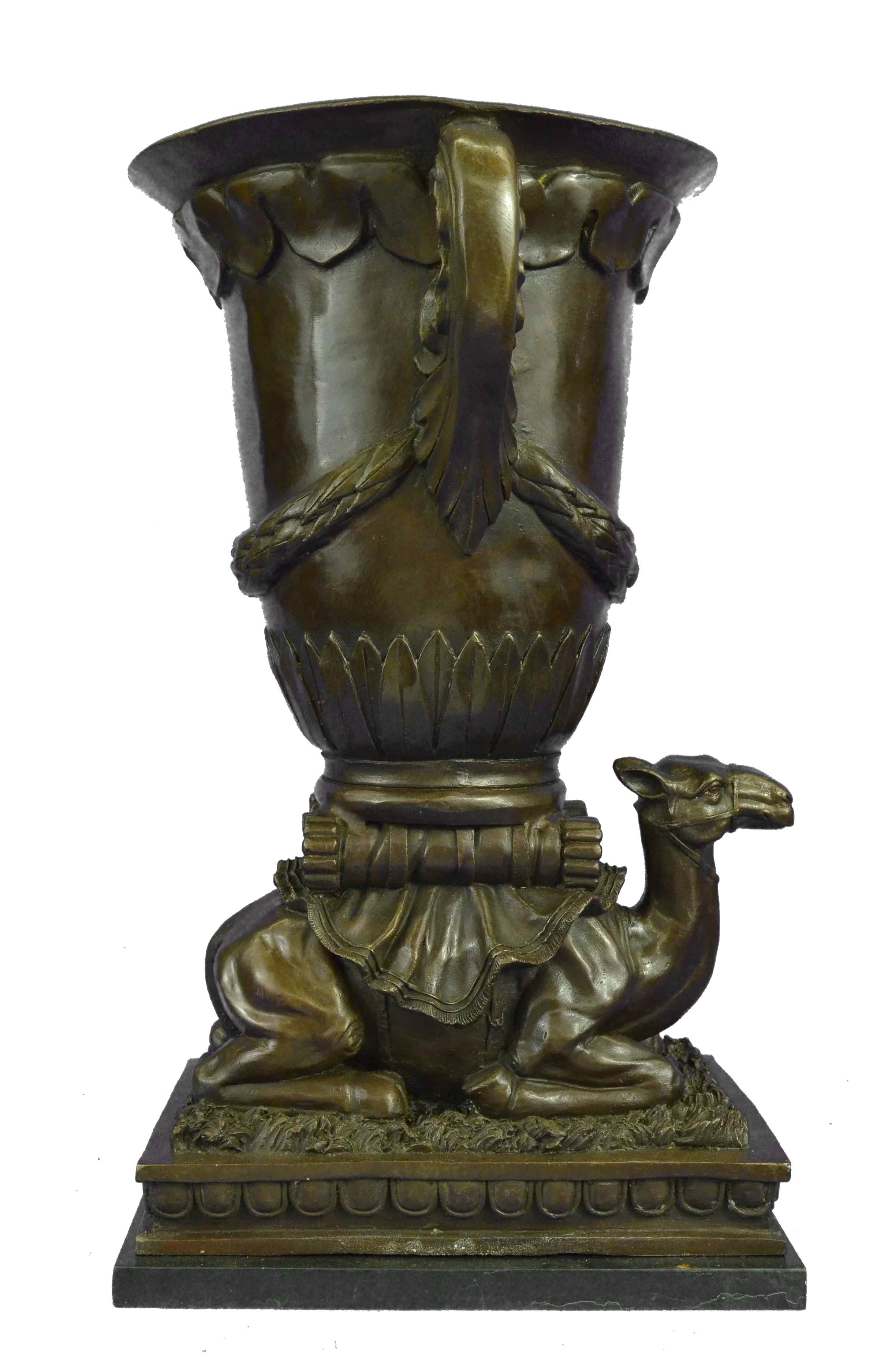 Large Egyptian Style Camel Planter Vase Bronze Sculpture Marble Base Figurine