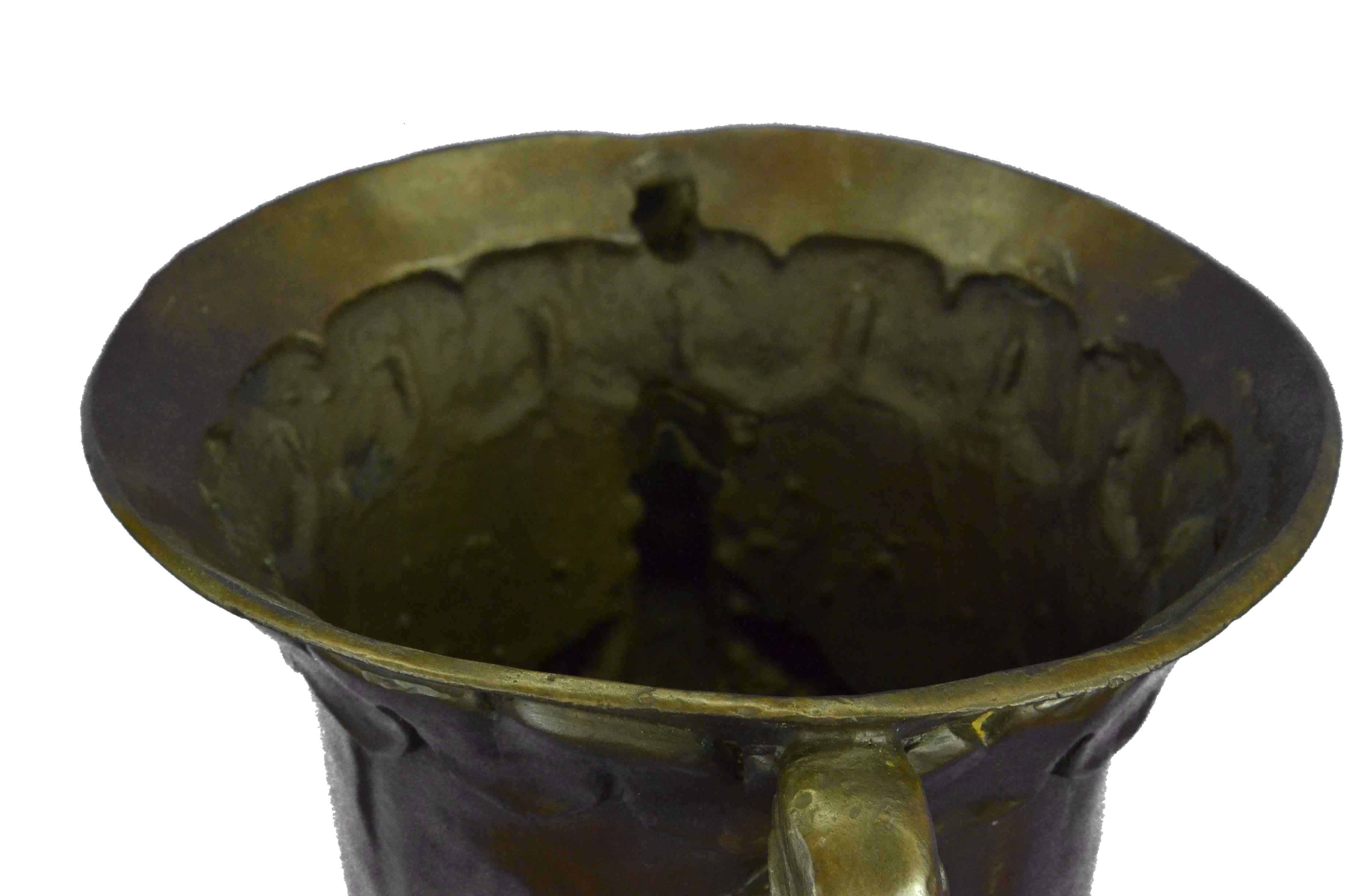 This is an interesting vase that seems to incorporate the essence of ancient beauty and wilderness. The body of the vase is fashioned into a mosaic as if pieces of tiles were placed. The body is supported by a decorated elephant. This work of art is both practical and an aesthetic addition to the house as a bouquet of blooming flowers can be seen beautifying the environment. The bronze piece was cast using the archaic methods of lost-wax casting and stained with a brown patina finish. It is positioned upon a black marble base with the European Bronze Finery stamp of quality and the artist Carl Kauba`s signature.Bronze Dimensions with Marble Base:Height 20" x Width 13"