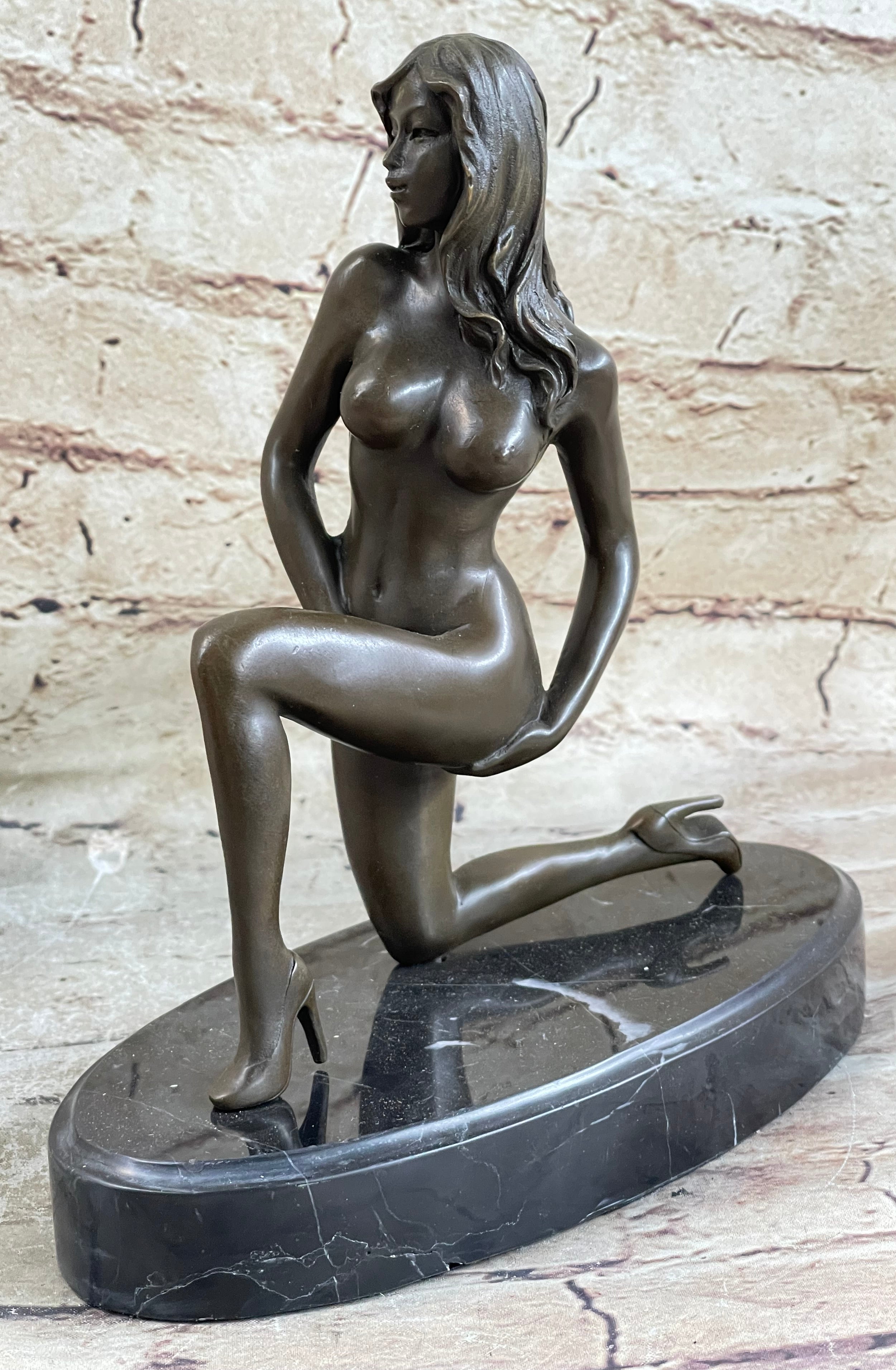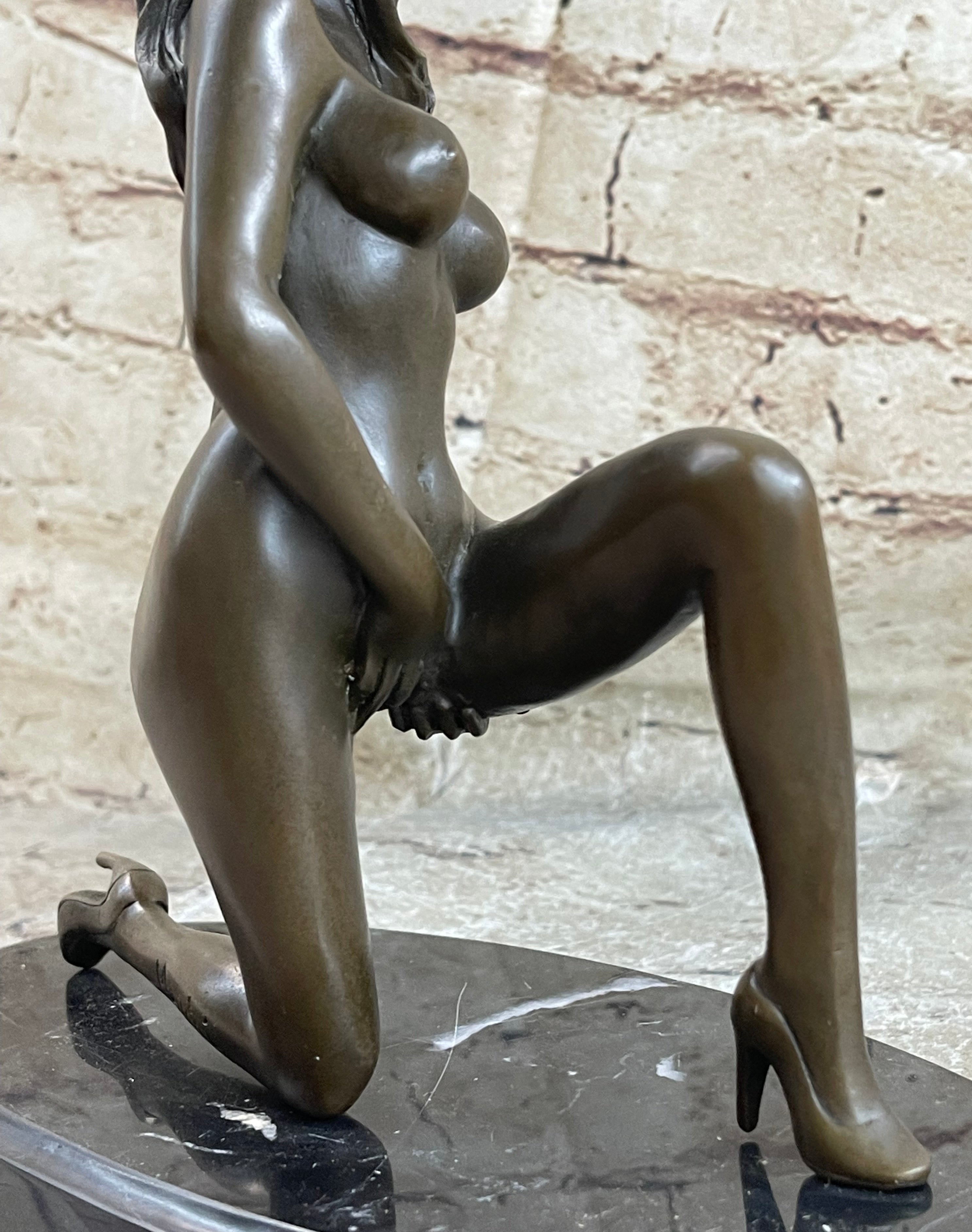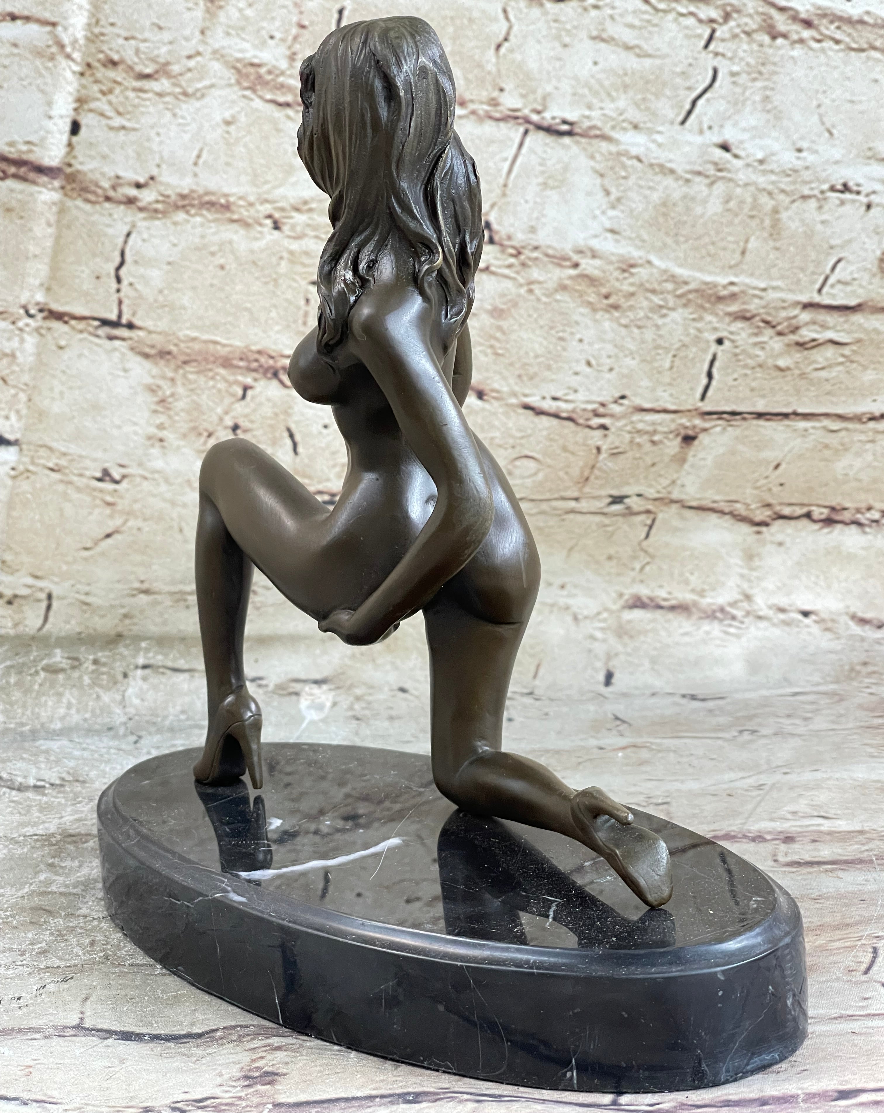 Sexy Girl Female High Heels Erotic Bronze Sculpture Statue Marble Base Mavchi 9"x 9"