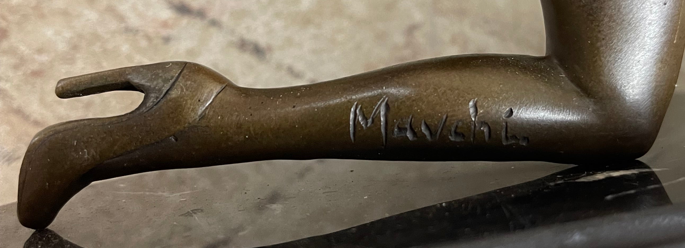 Mounted on a polished black marble base, the sculpture is signed by the artist Mavchi. This piece embodies "The Art of Lost Wax" at its finest—where craftsmanship meets emotion in a seamless union. Ideal for collectors, art enthusiasts, or anyone drawn to expressive bronze figures, this artwork serves as a striking focal point in any refined space.Bronze Dimensions with Marble Base: Height 9" X Width 9"