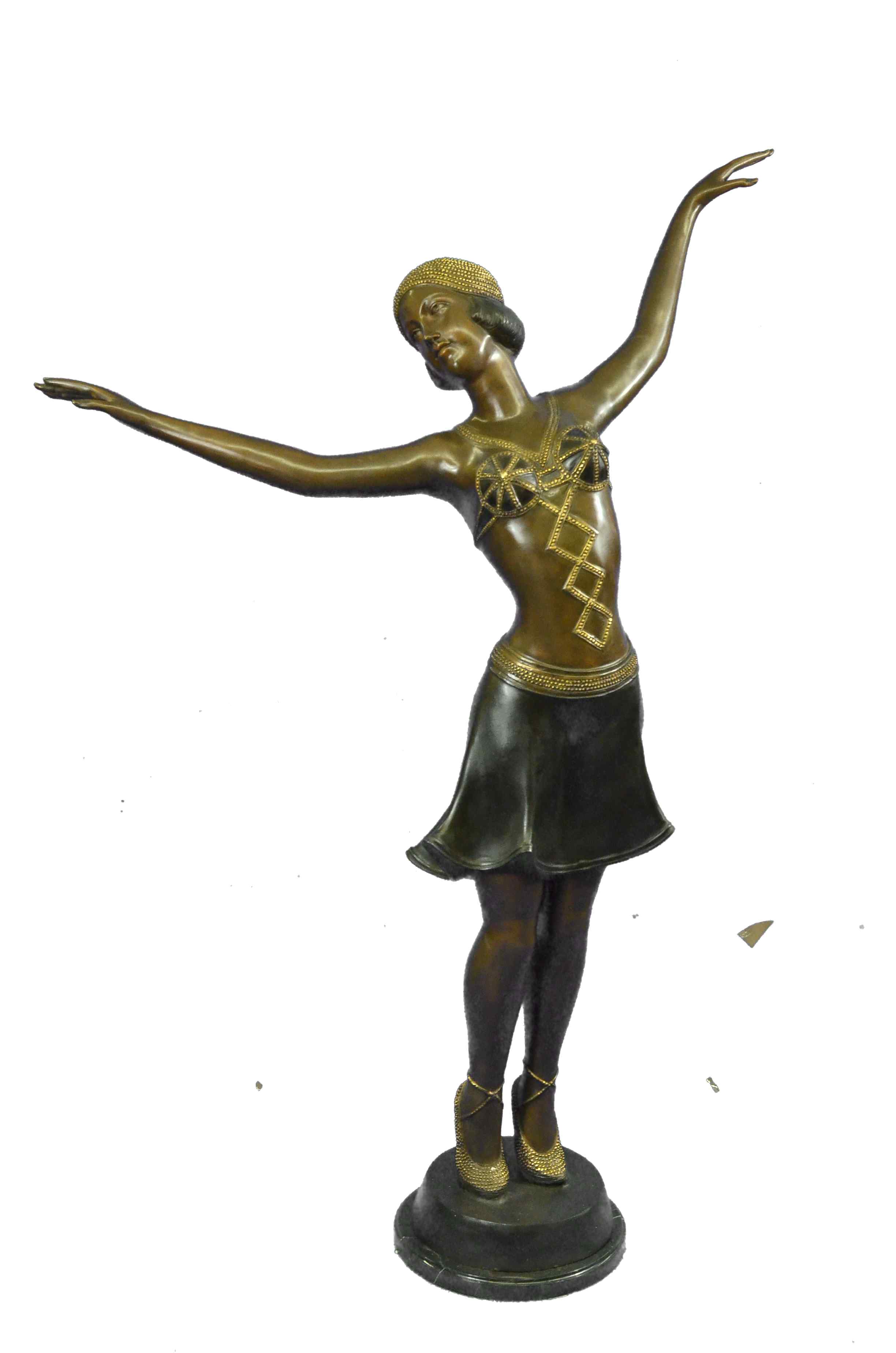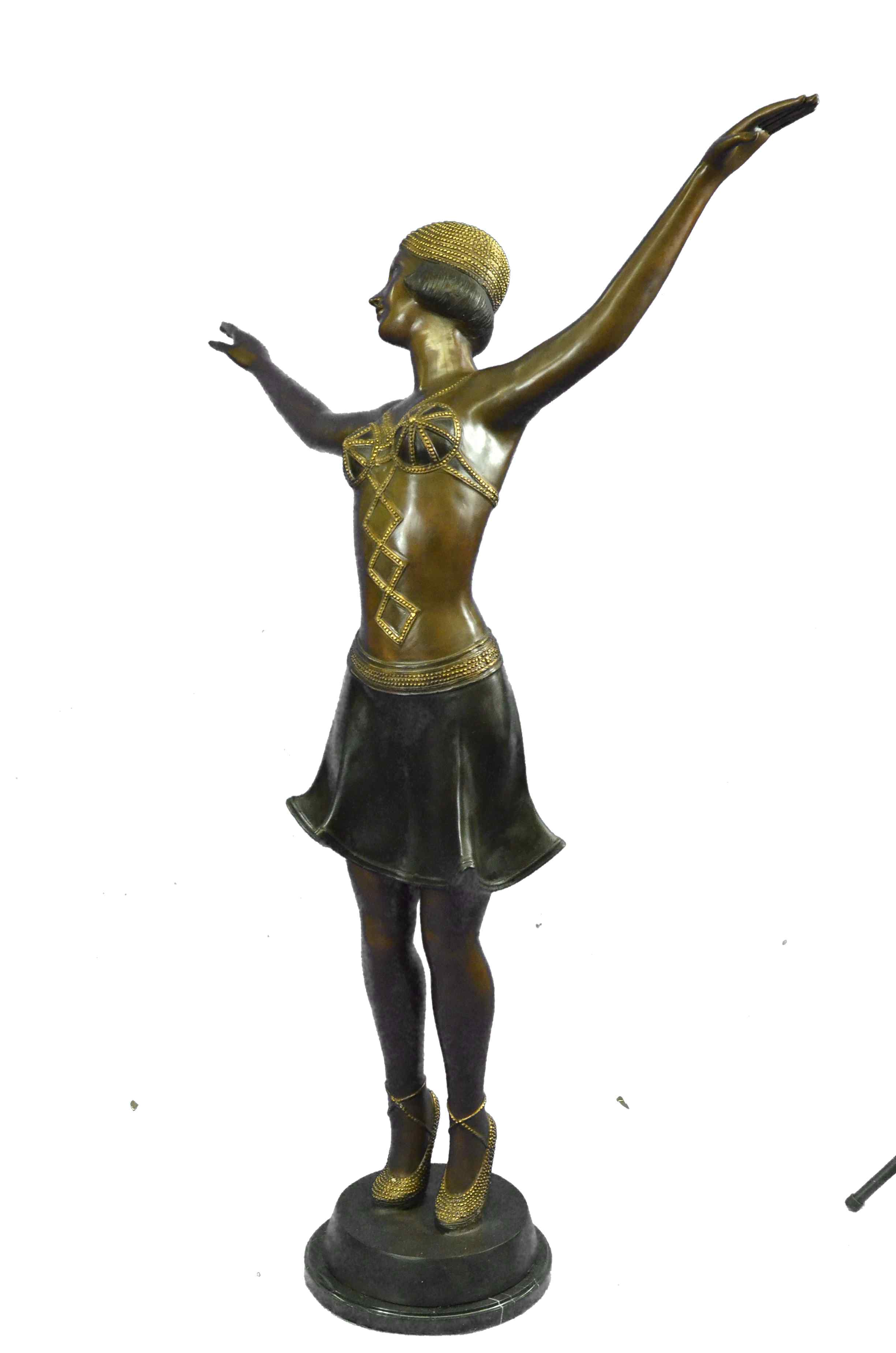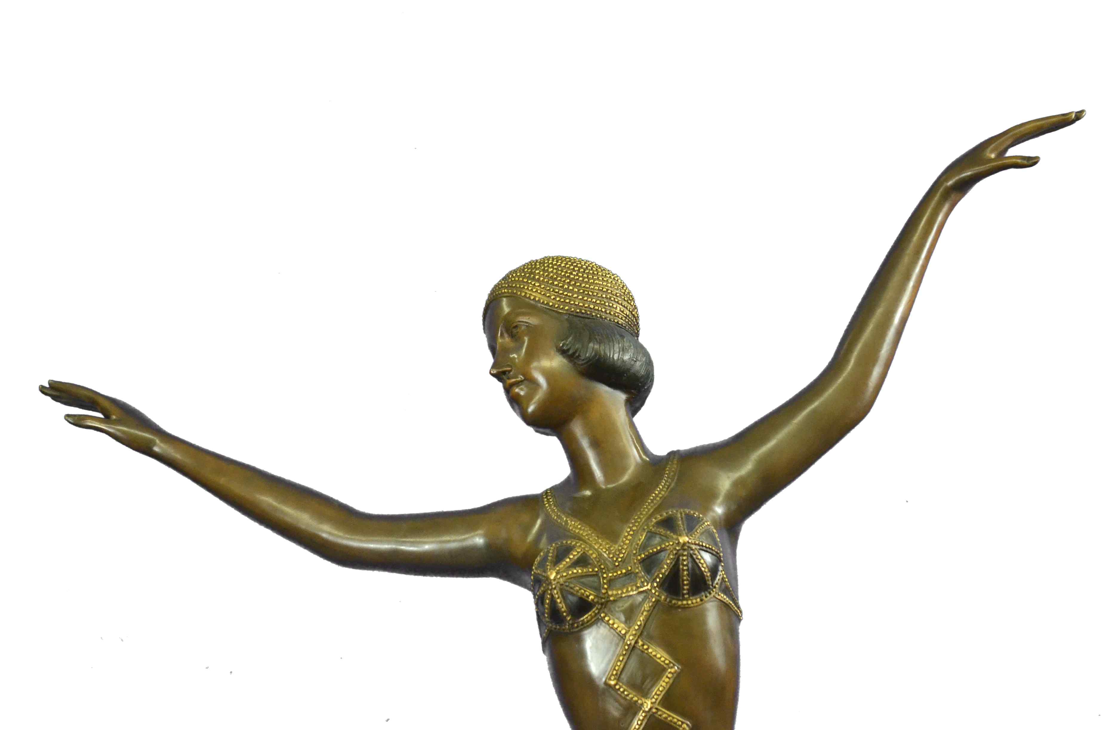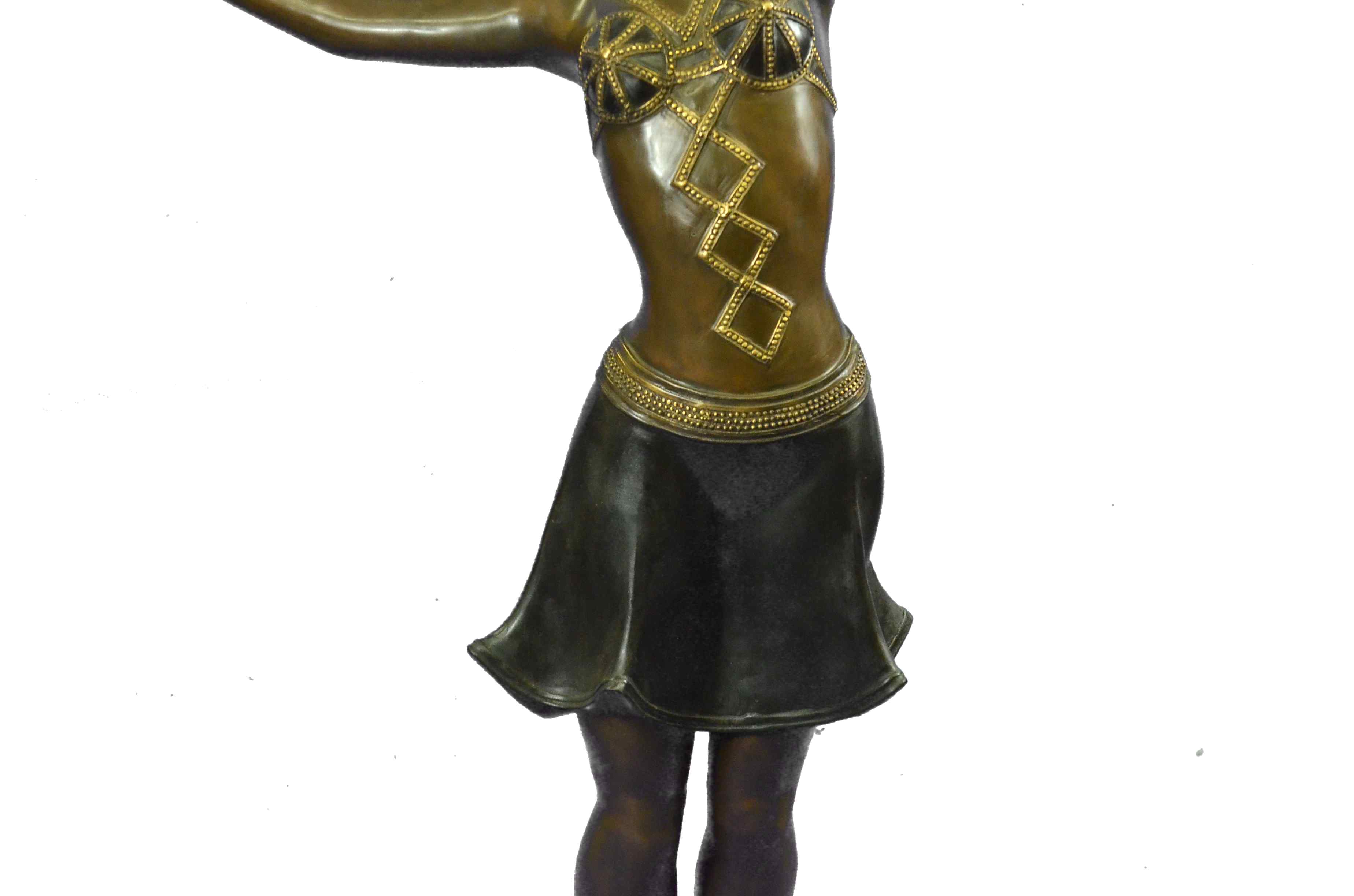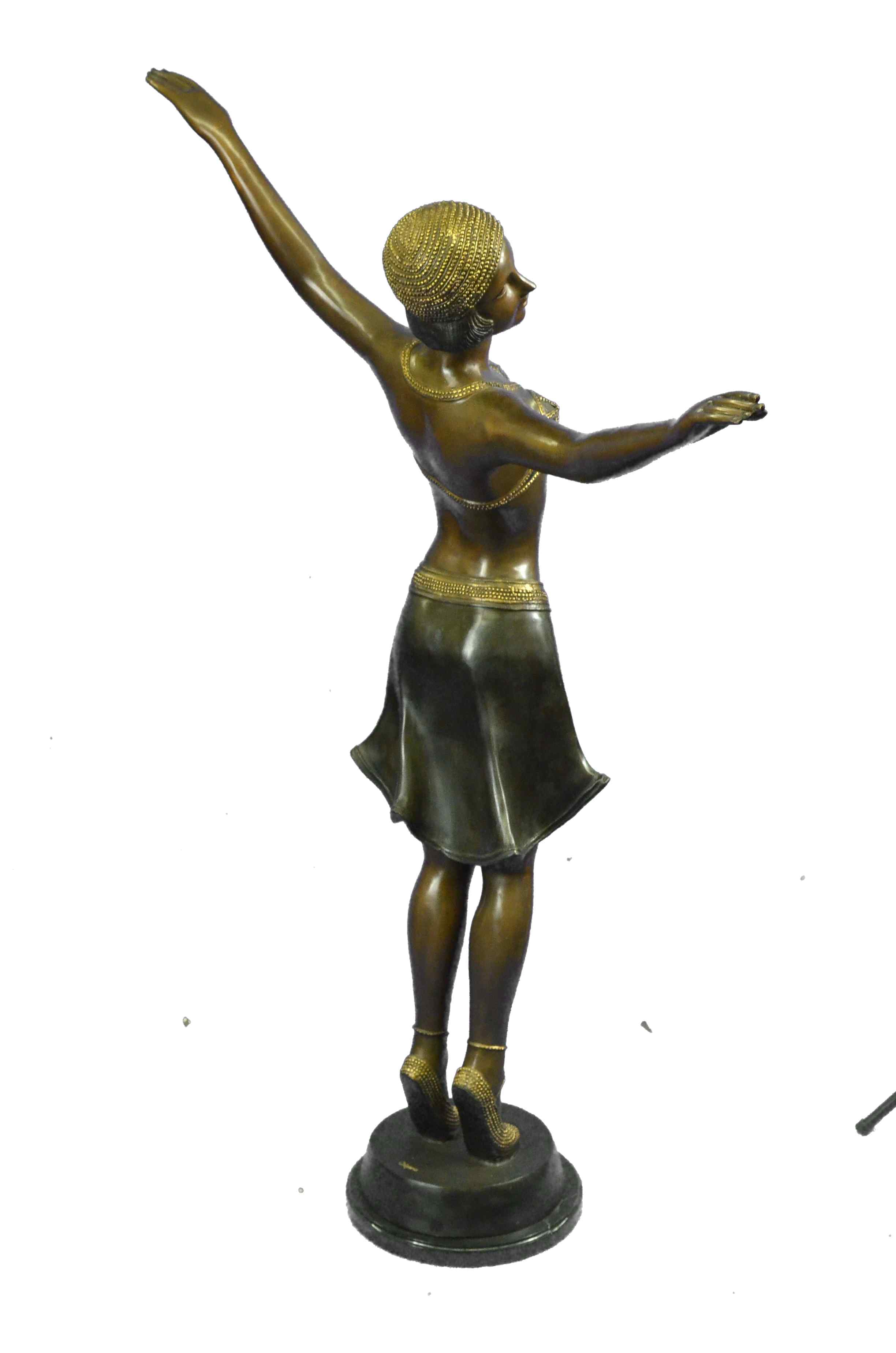 From art Nouveau to art deco, wildlife nature to equestrian, classical to contemporary, religious to renascence or nude, you will find a remarkable assortment of diverse Art forms and sizes, coupled with undeniable values makes Think Bronze a fantasy playground for art collector and lover in you. This Sculpture Was Cast Using The Ancient Old "Lost Wax Method" Stained In A Two Tone Brown and gold Patina Finish For Preservation. 100% Handmade And 100% Bronze, This Is Signed By Artist Chiparus.Original or Reproduction: Reproduction