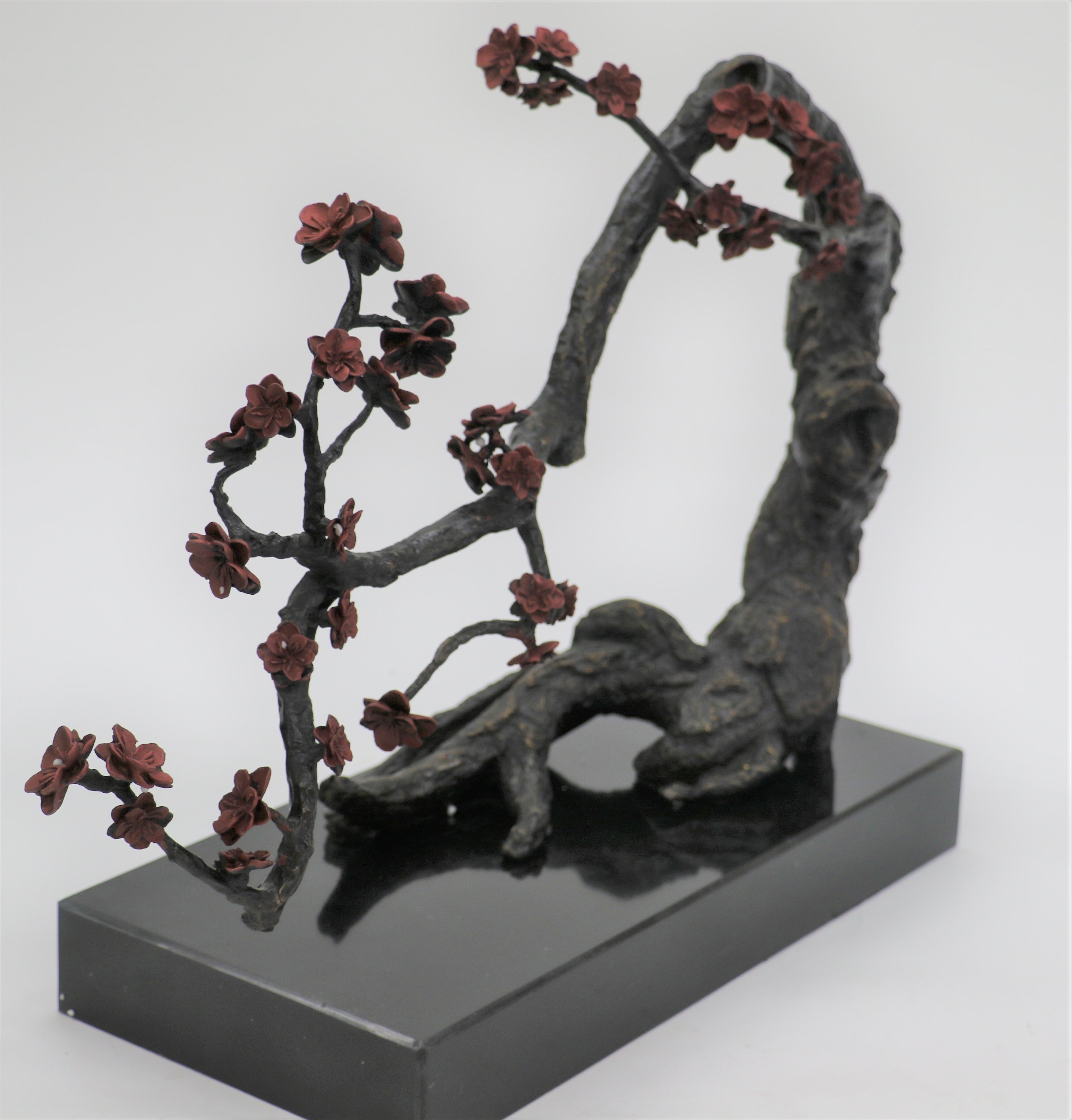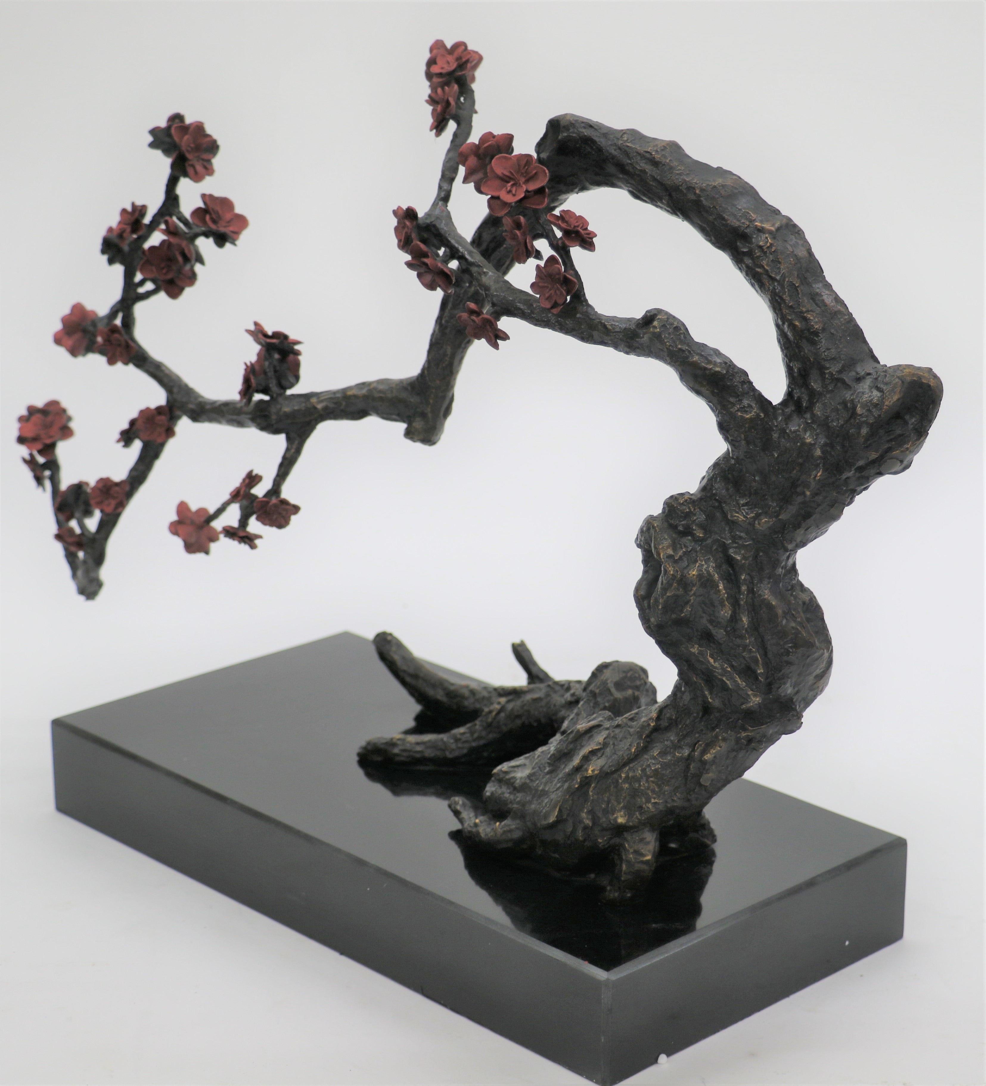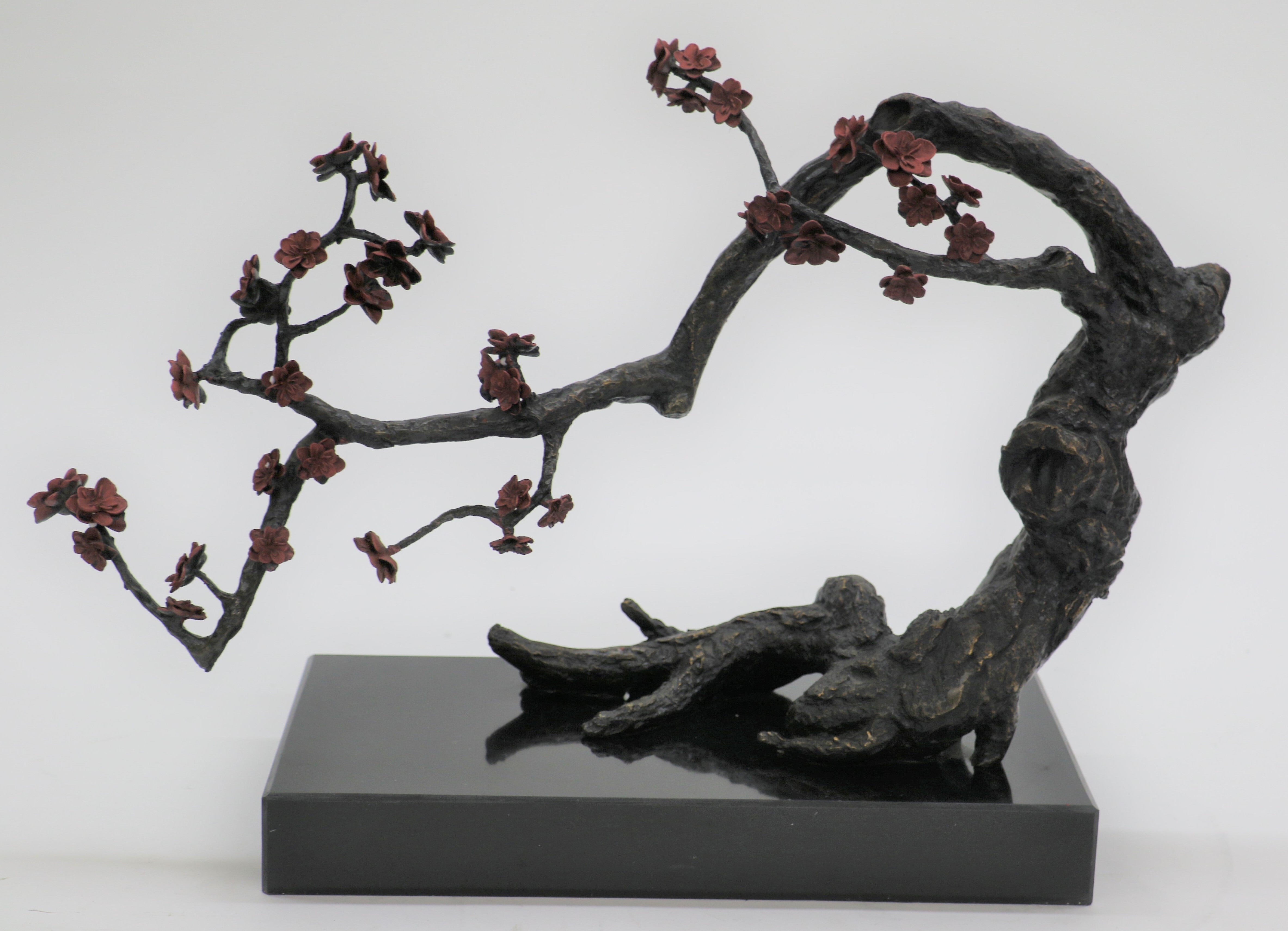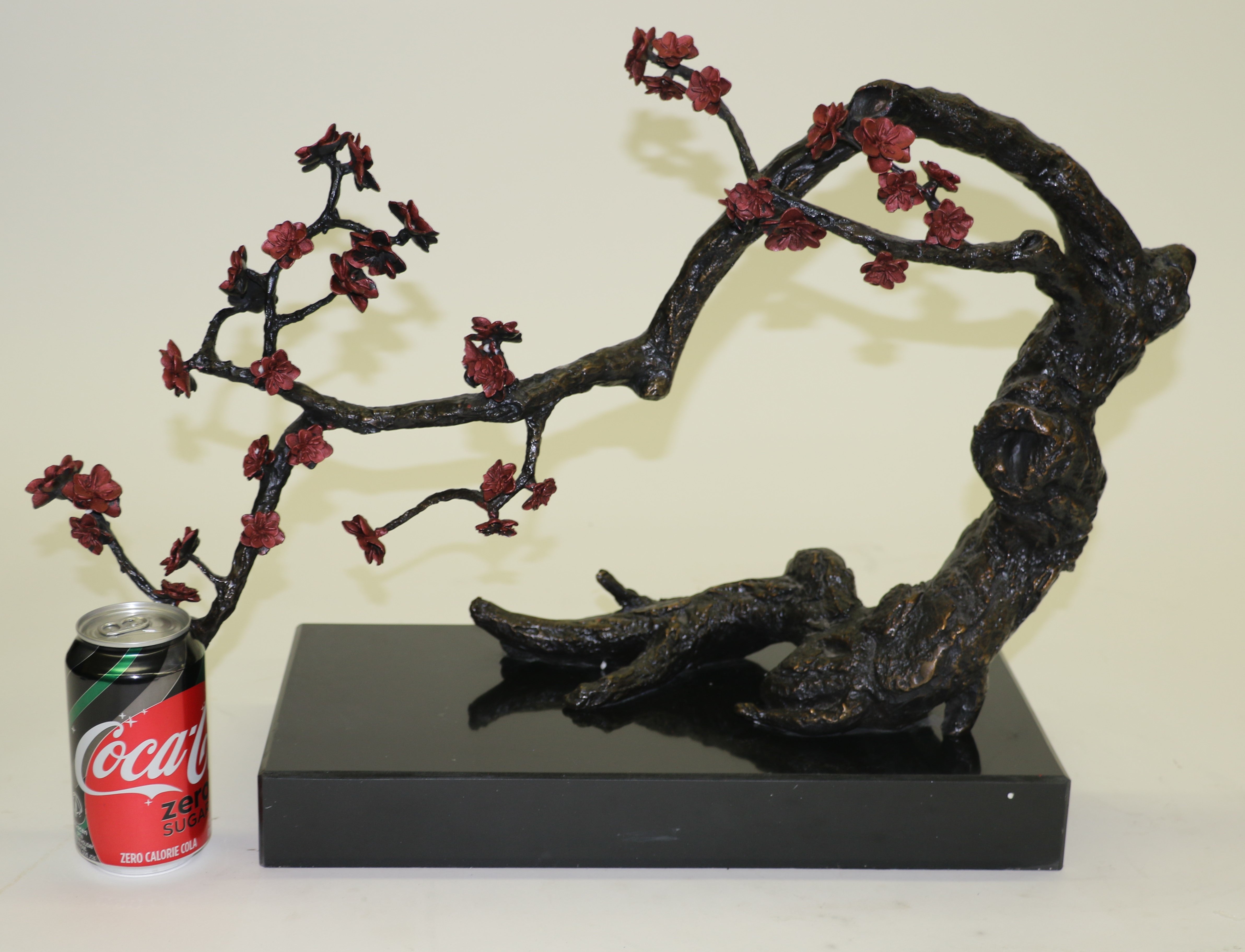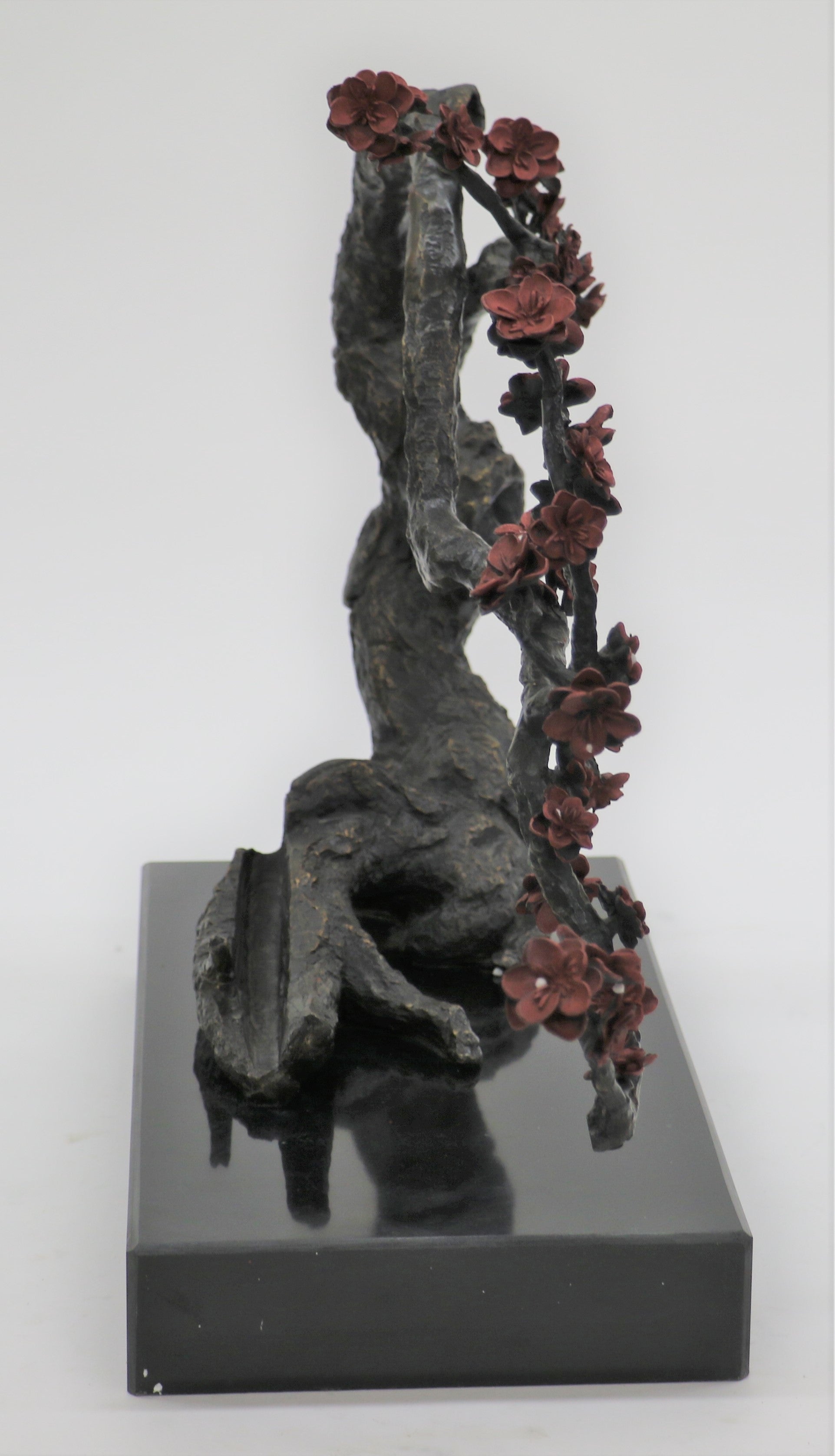 This Limited Edition immortal Wisdom Tree, deeply rooted into the springs of eternity, has flourished for centuries. In our sculptural interpretation, Bronze branches reach towards the sky while vines extend deep into the soil below. Uniting heaven and earth, the Wisdom Tree represents an individual's journey to infinity. The handmade bronze sculpture was cast using the archaic method of lost-wax casting and stained with a brown and Red patina finish for perpetuation. He is mounted upon a black marble base and is signed and numbered by artist Aldo Vitaleh.Bronze Dimensions with Marble Base:Height 16.5" x Width 24"