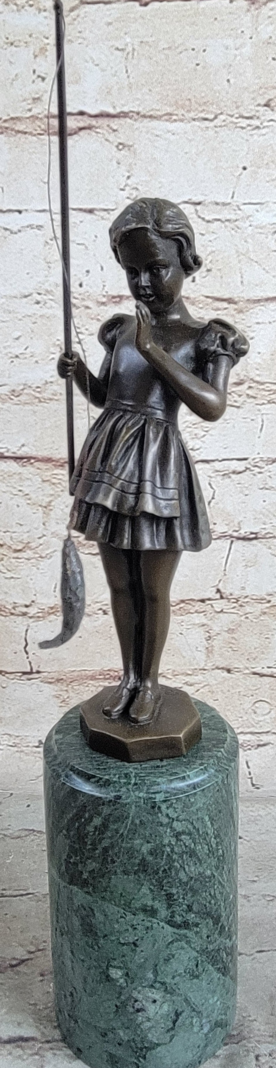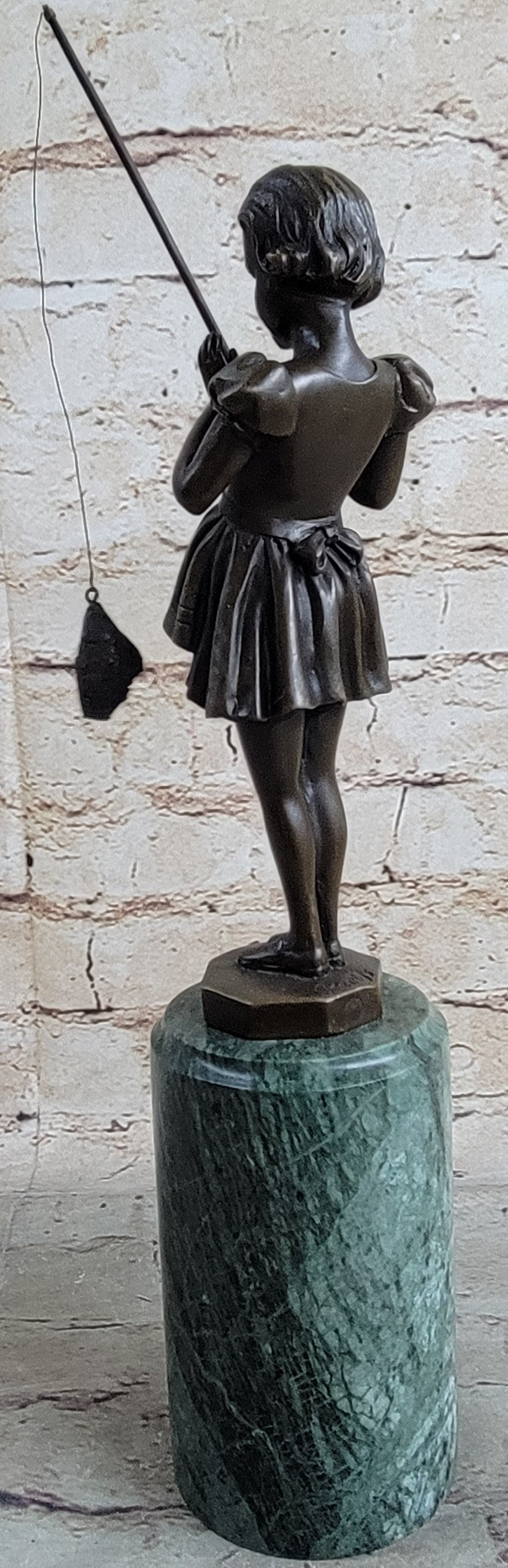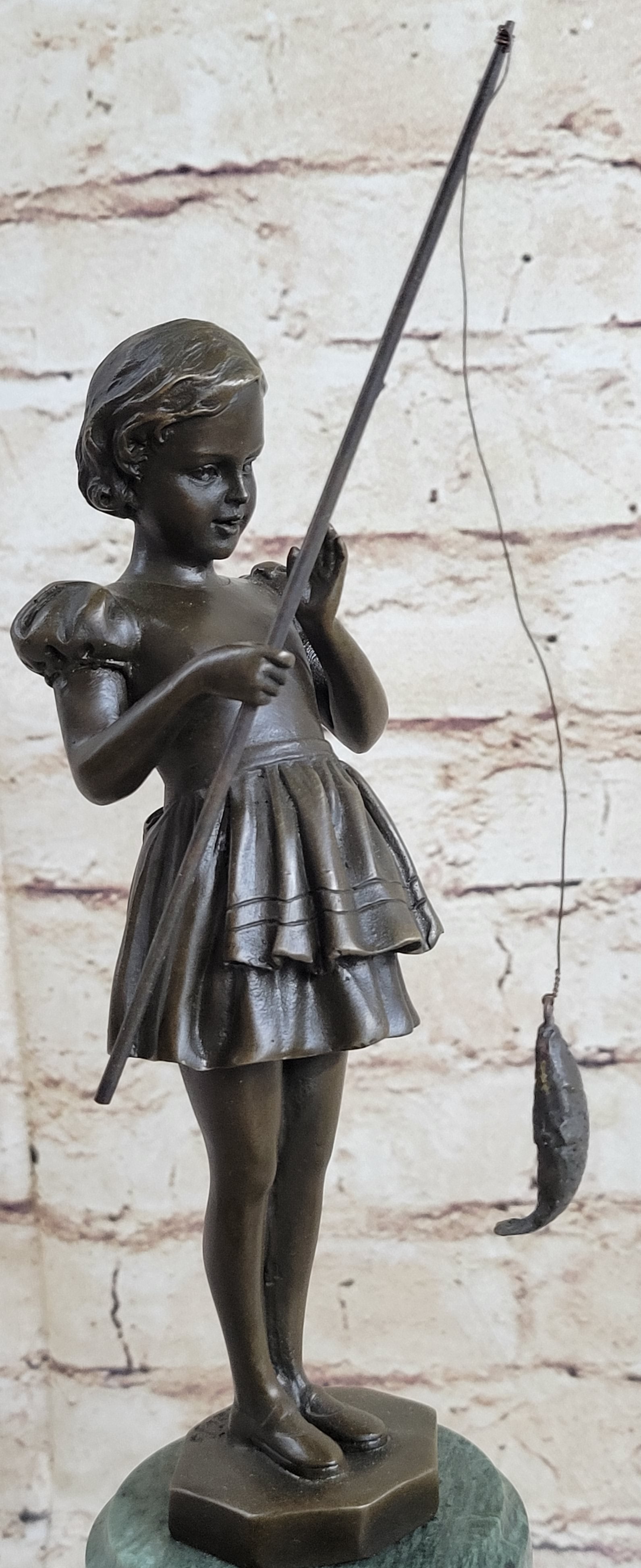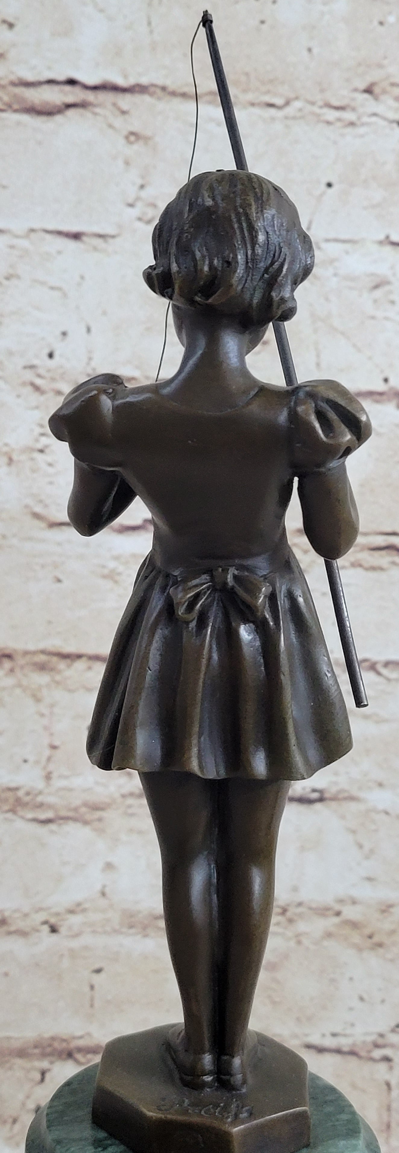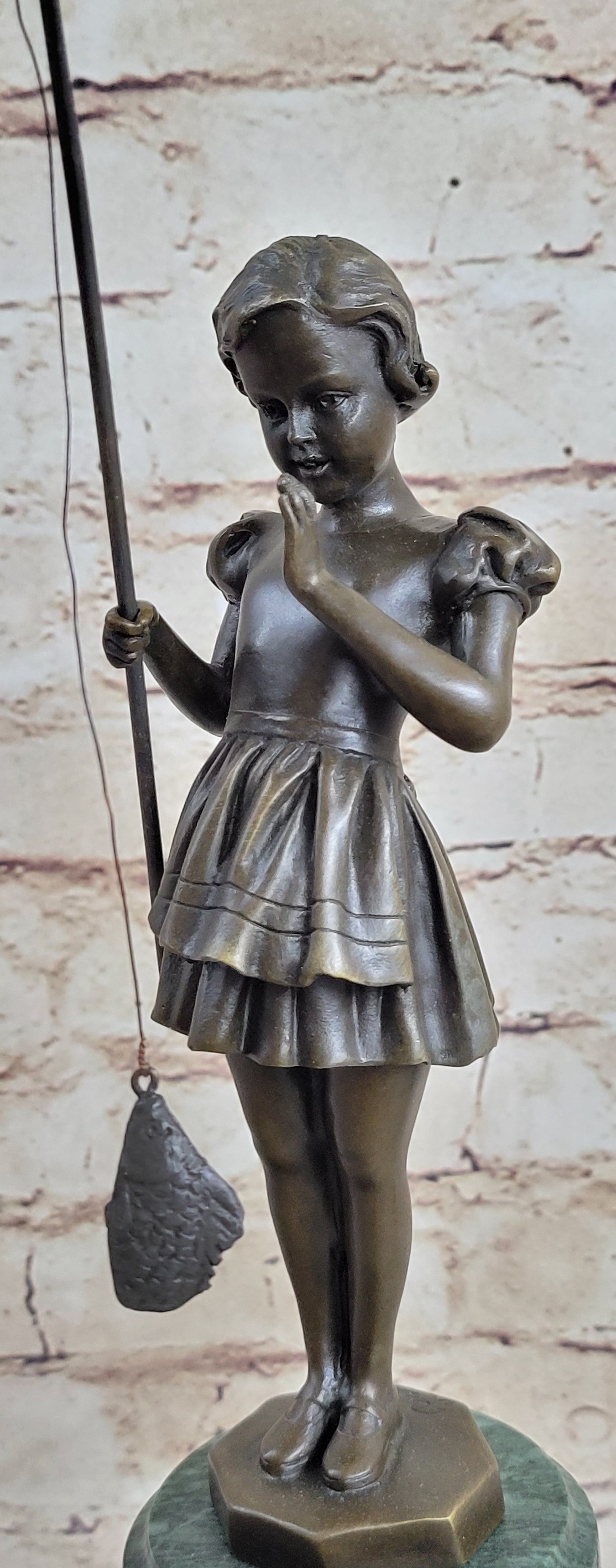 Little Girl Fishing - Bronze Metal Figurine Sculpture Art Deco by Preiss