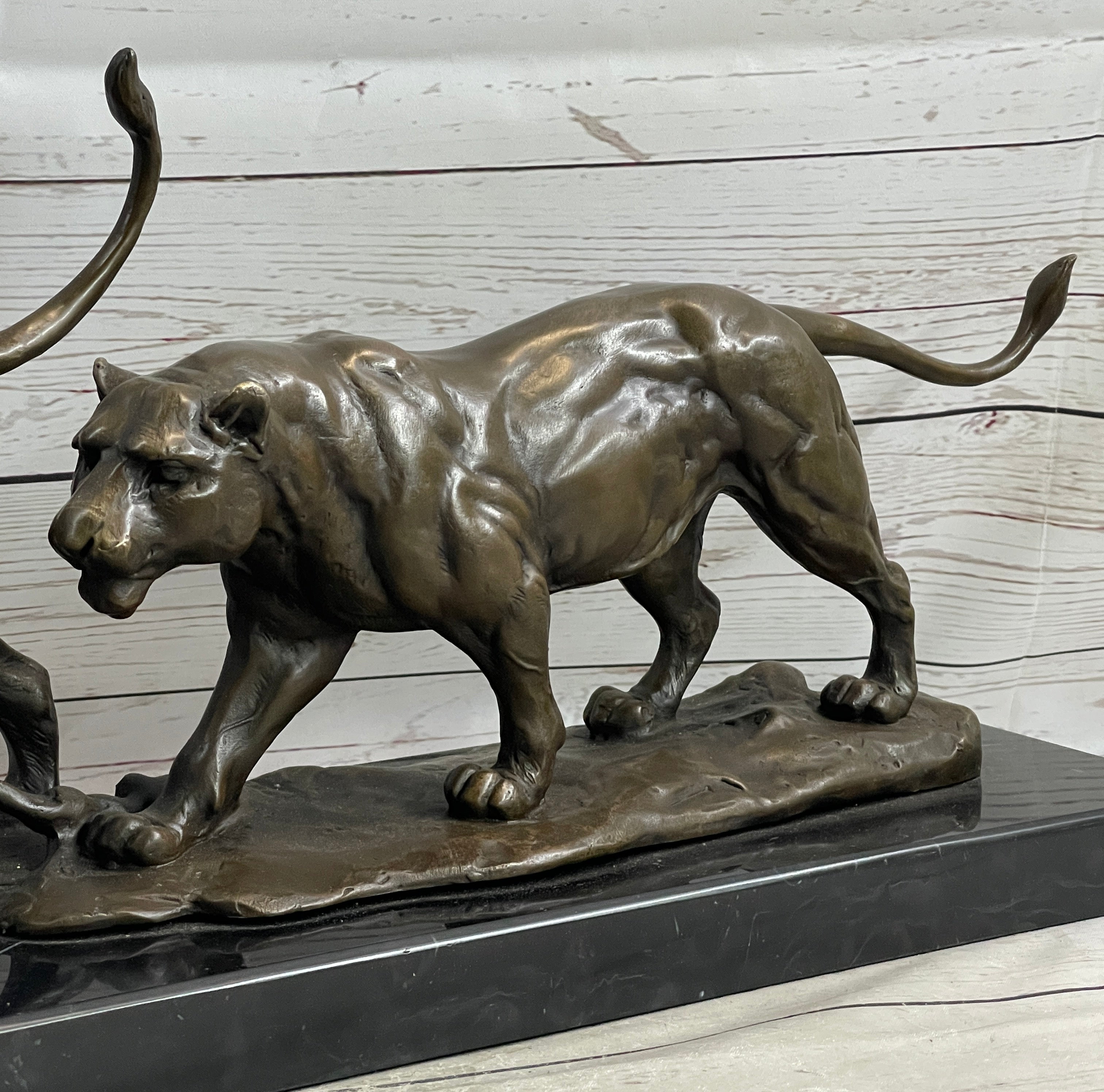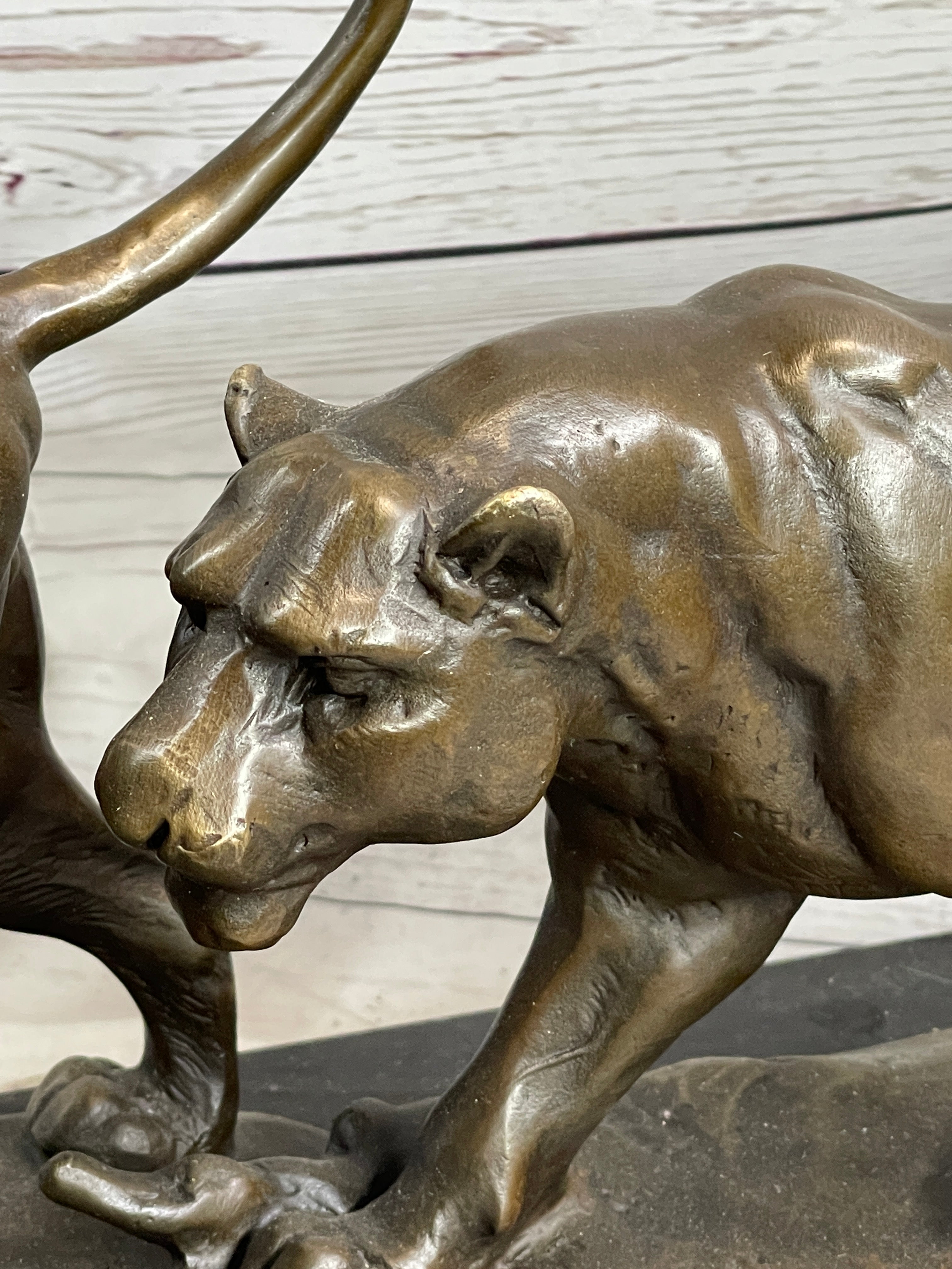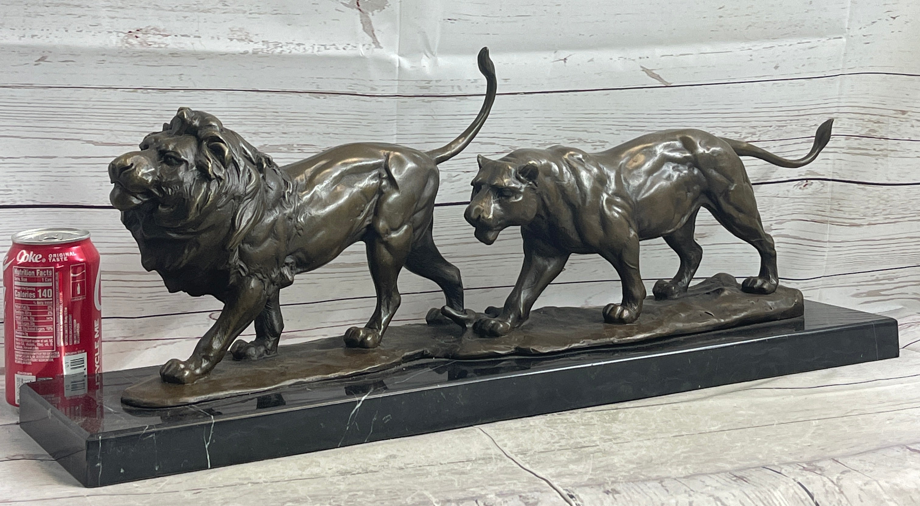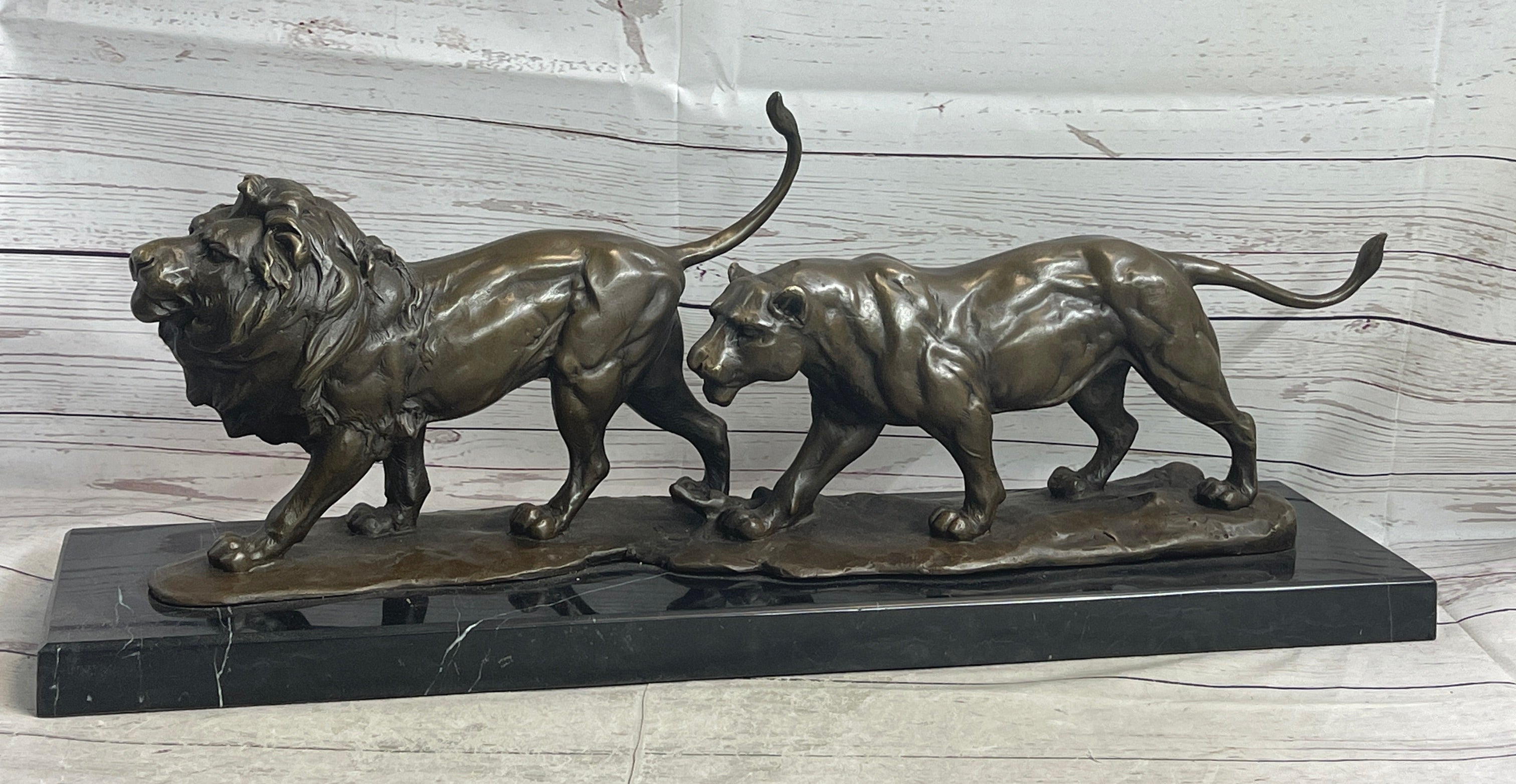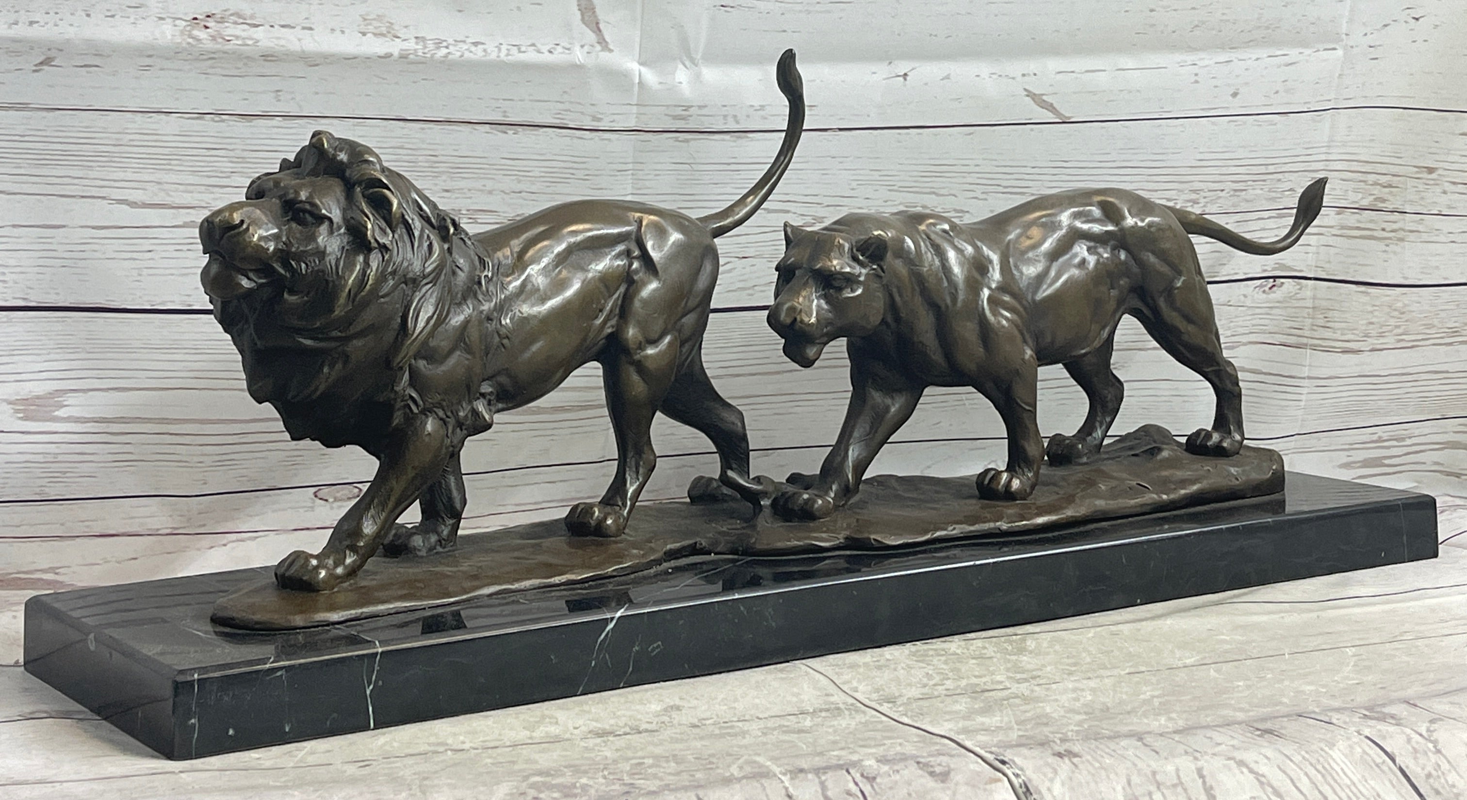 Male & Female Lion Lions on the Prowl Bronze Sculpture Statue Signed Original Art